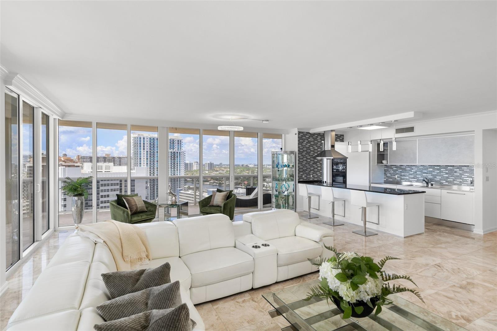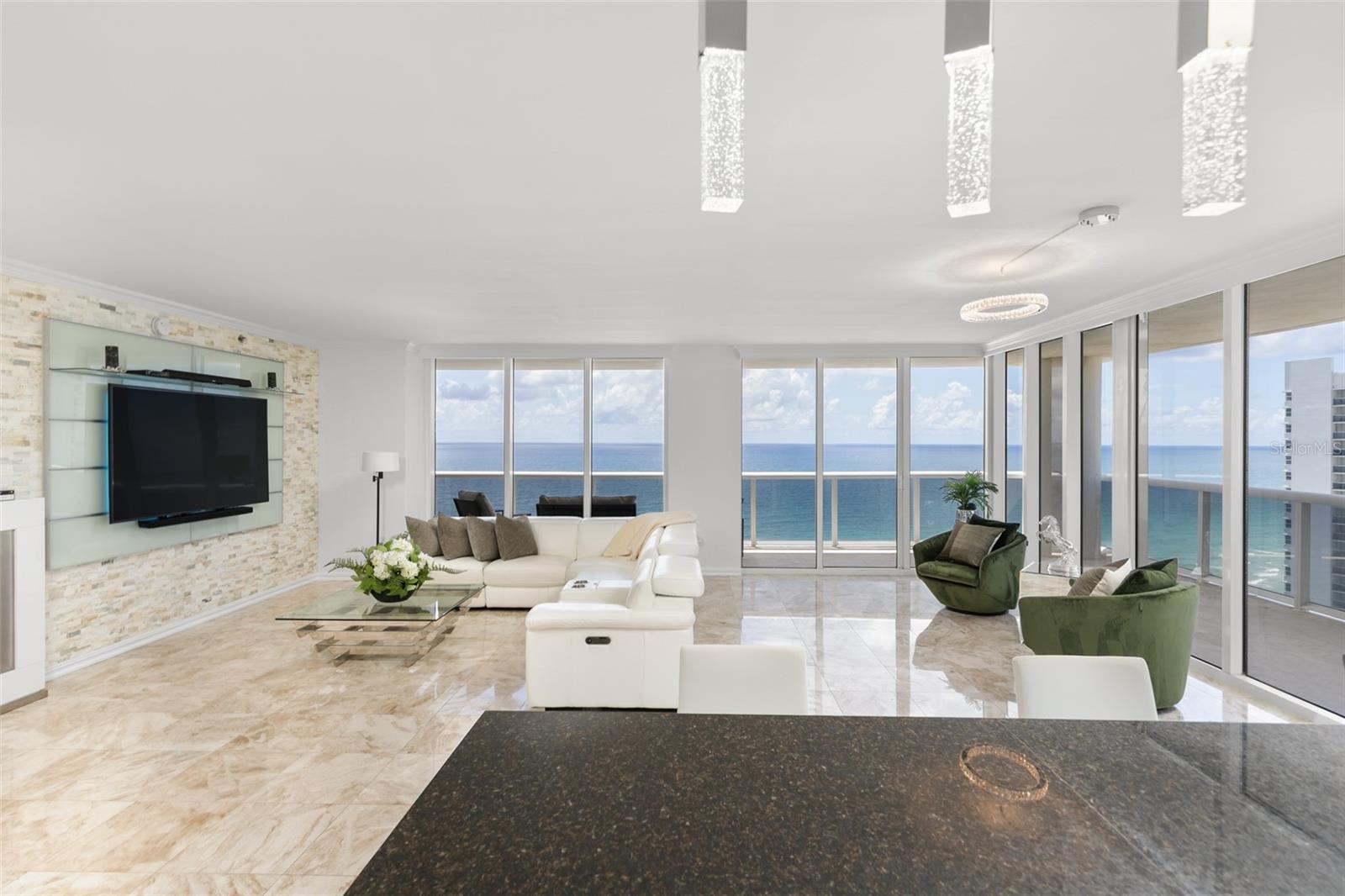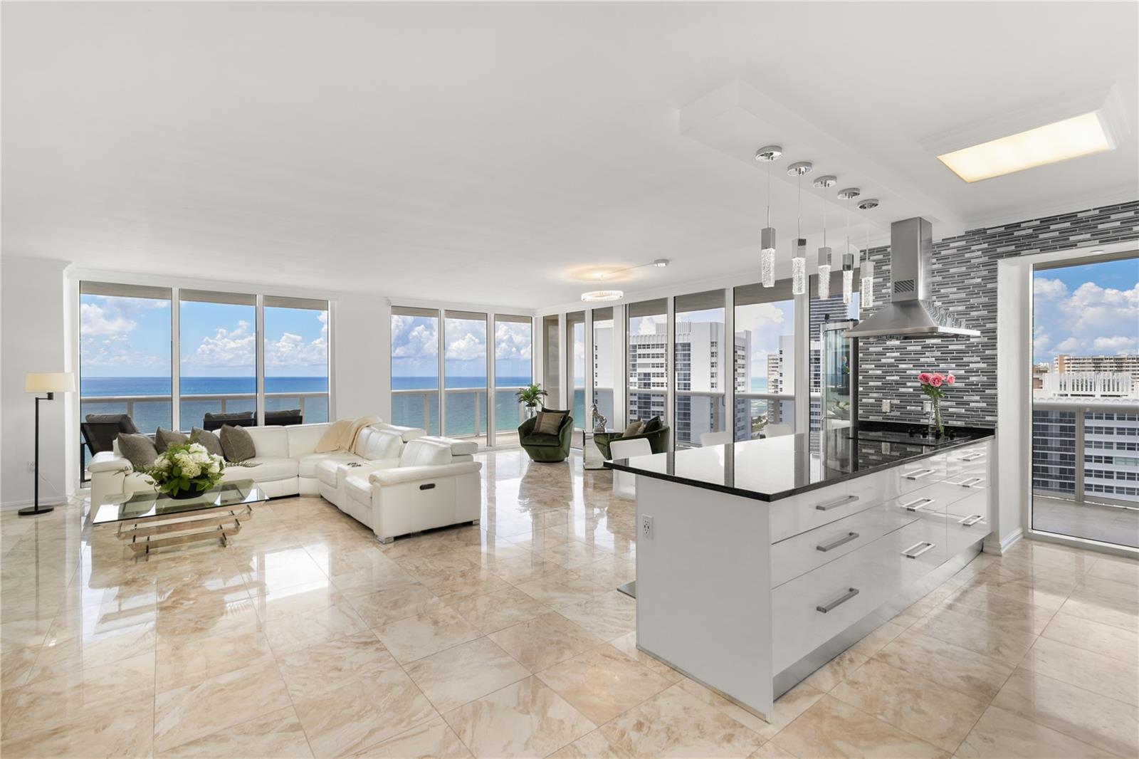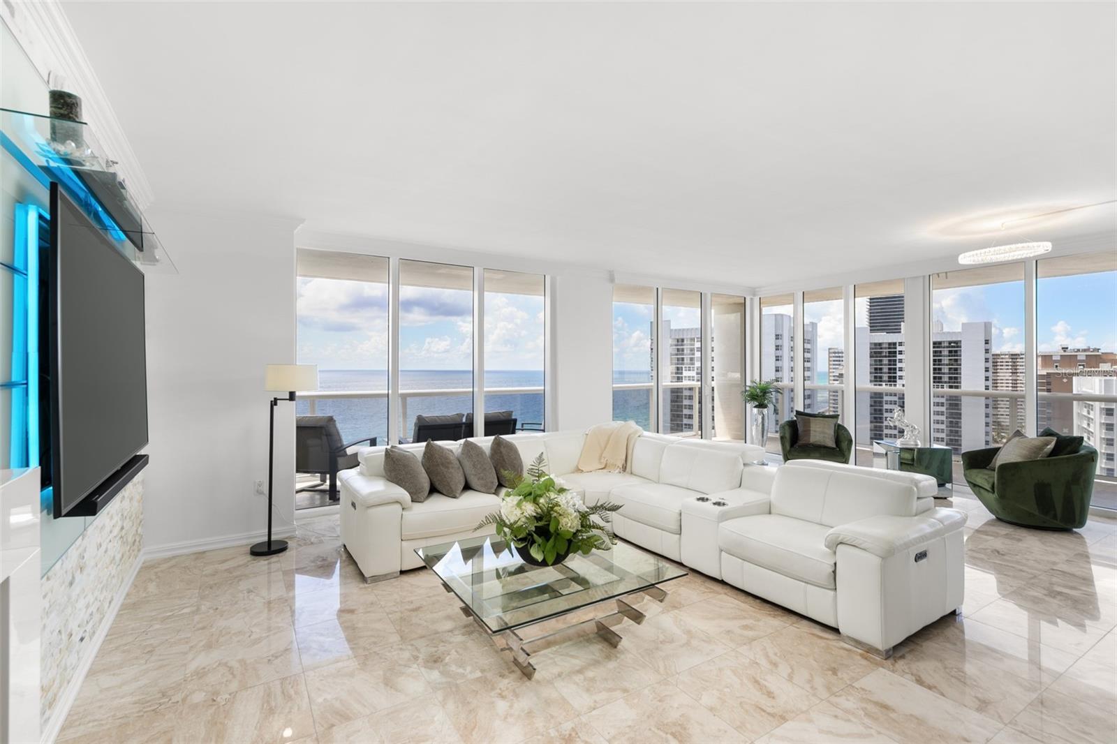 Stunning 3BR/3.5BA fully furnished condo ready for immediate move-in! SE-facing panoramic views of Atlantic Ocean, pool & unobstructed views of protected city park green space—guaranteed to remain unobstructed in perpetuity. Thoughtfully designed split floor plan ensures privacy and elegance. Formal foyer leads into a bright, open-concept LR w/ high-impact glass sliders providing home w/ natural light. Remote-operated Somfy blackout shades + custom Govee lighting throughout for ambiance. Finishes include elegant marble tile floors, built-in appliances, NEST HVAC, Eufy security, wall-mounted TV in LR + TVs in each BR. Euro-style kitchen features premium appliances, wall oven, electric range, microwave, refrigerator, and dishwasher—perfect for cooking and entertaining. Primary suite boasts sitting area, dual walk-in closets, spa-like en-suite w/ dual vanities, soaking tub, large shower & bidet. All secondary bedrooms include, TV, en-suite bathrooms and ample storage. Enjoy ocean breezes from your wraparound balcony w/ 4 sliding glass doors from the LR, DR, primary, & guest BRs. Outdoor furnishings include loungers, chairs, and tables. Resort-style amenities incl: doorman, 24/7 valet, garage security, full-time concierge, 50,000 SF spa/fitness ctr w/ steam rms, saunas, private trainers, & top-tier equip. The property features heated pools, hot tubs, splash pools, poolside service, and an on-site restaurant. Additional unit features: in-unit W/D, electric WH, electric fireplace, covered parking, secured garage. Maintenance fee includes: cable, insurance, landscaping, security, sewer, water, trash, pest control & more—stress-free living! Prime Broward County location near fine dining, boutiques at Gulfstream Village (1.3 mi), Midtown Miami (9 mi),and FLL Airport (9 mi). Whether primary resident or investment property, this condo delivers luxury, privacy, and coastal elegance.