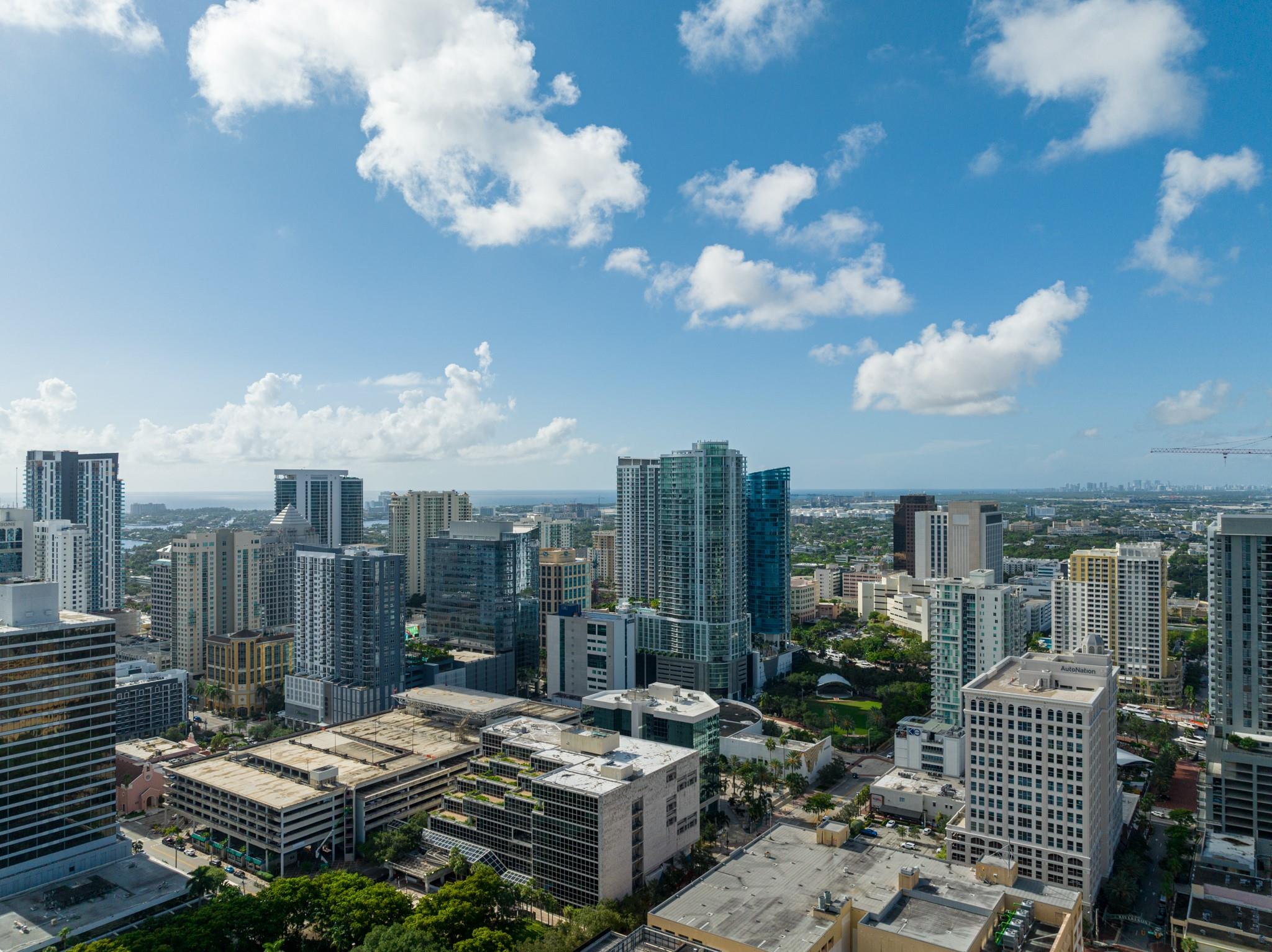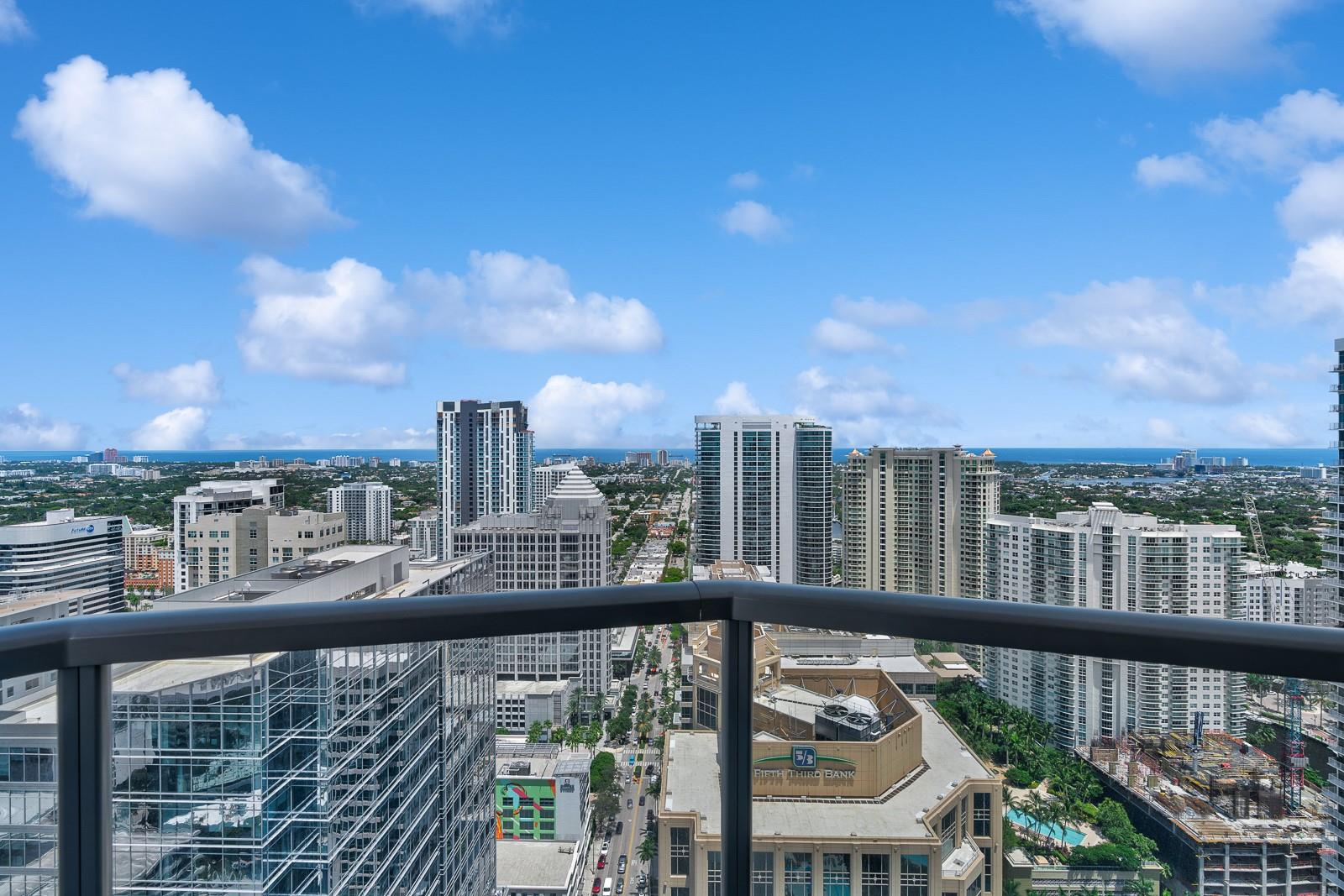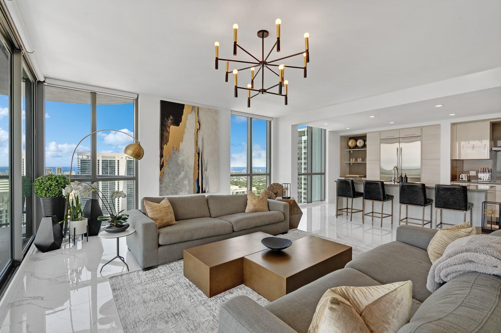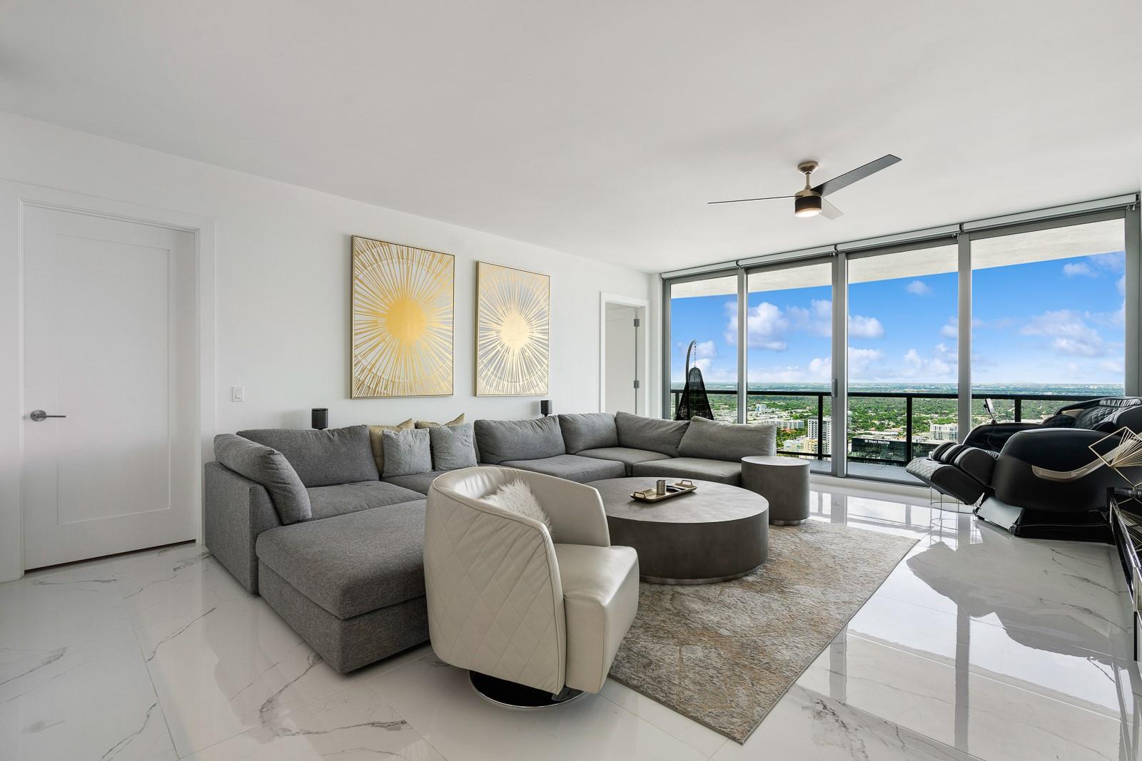Soaring 40 stories above the city center, this exclusive residence is one of only six in the estate collection—offering unmatched privacy, sophistication, and breathtaking views of Fort Lauderdale's skyline. Floor-to-ceiling windows frame the cityscape, while a private elevator entrance and access-controlled entry points provide discreet, secure access. This expansive 4-bedroom, 4.5-bath layout includes a formal dining room, family room, and a theatre room. Designed for both comfort and elegance, the home features premium flooring, European kitchen cabinetry, quartz countertops, high-end fixtures, and private terraces with glass railings—perfectly positioned for uninterrupted views and seamless indoor-outdoor living and entertainment.