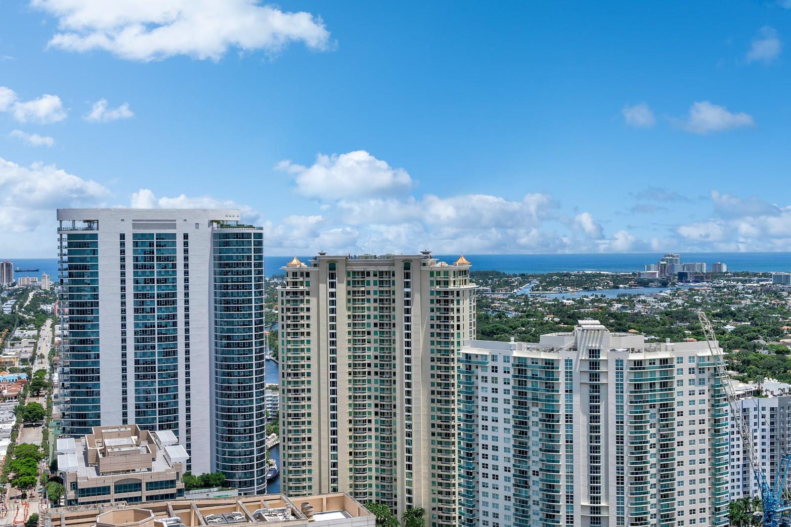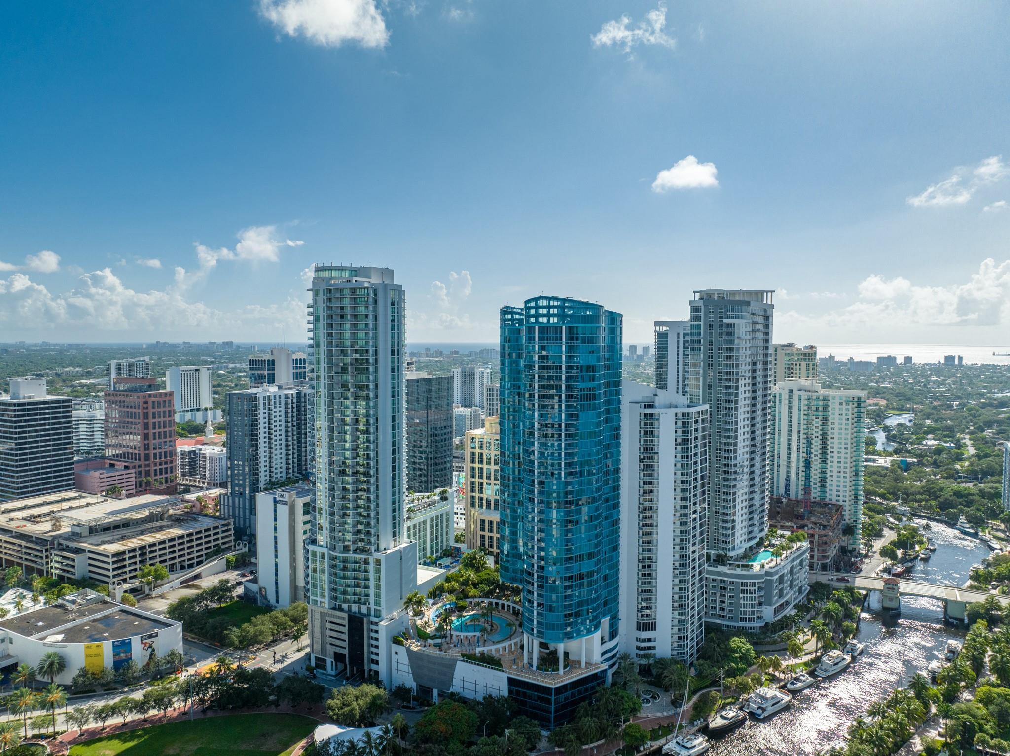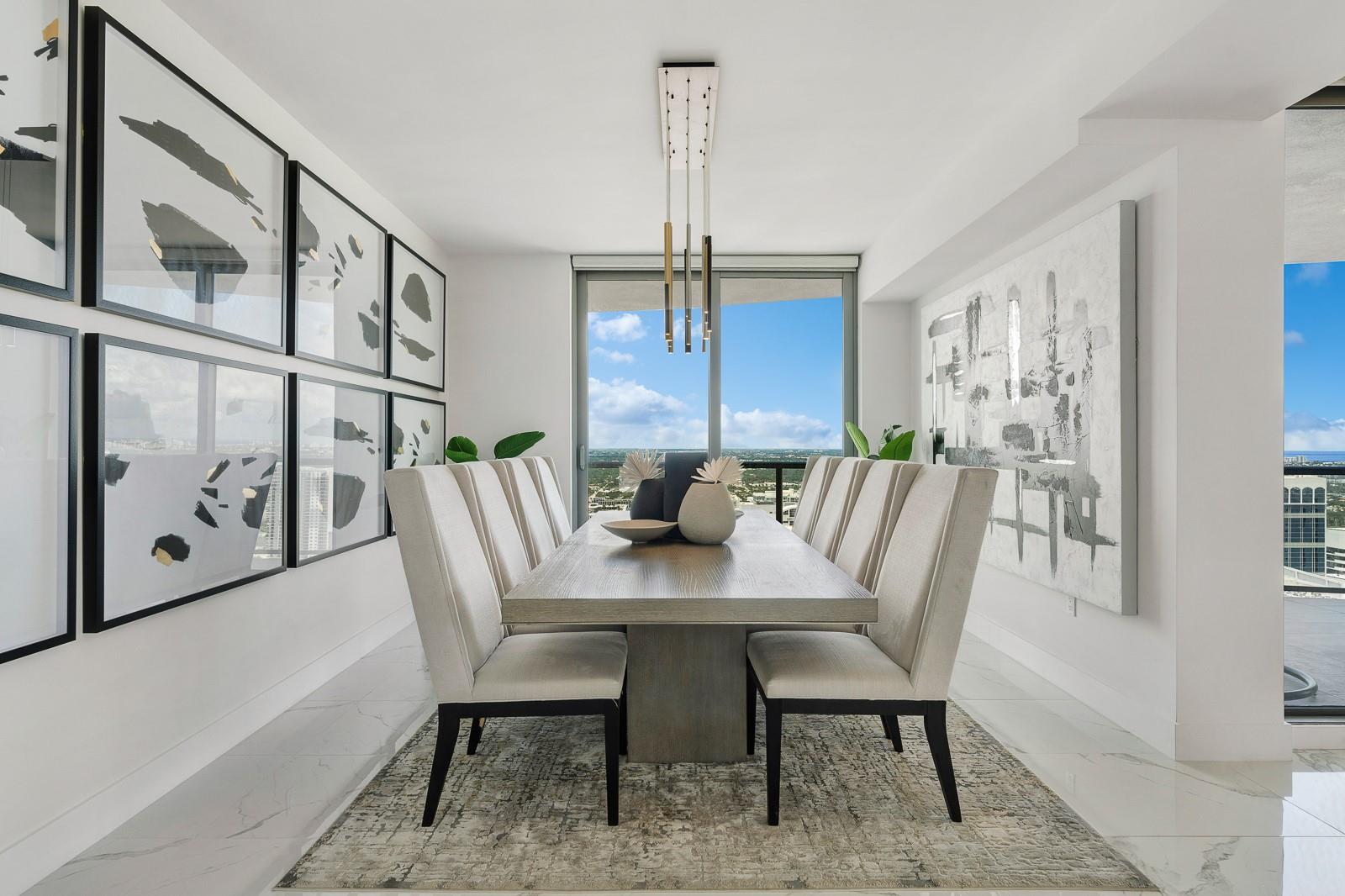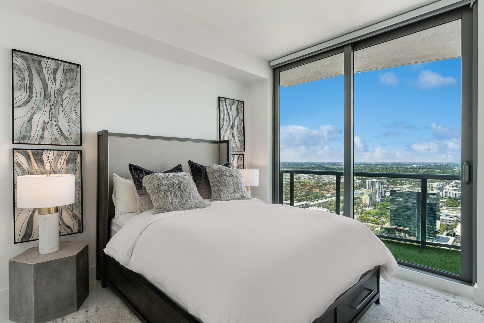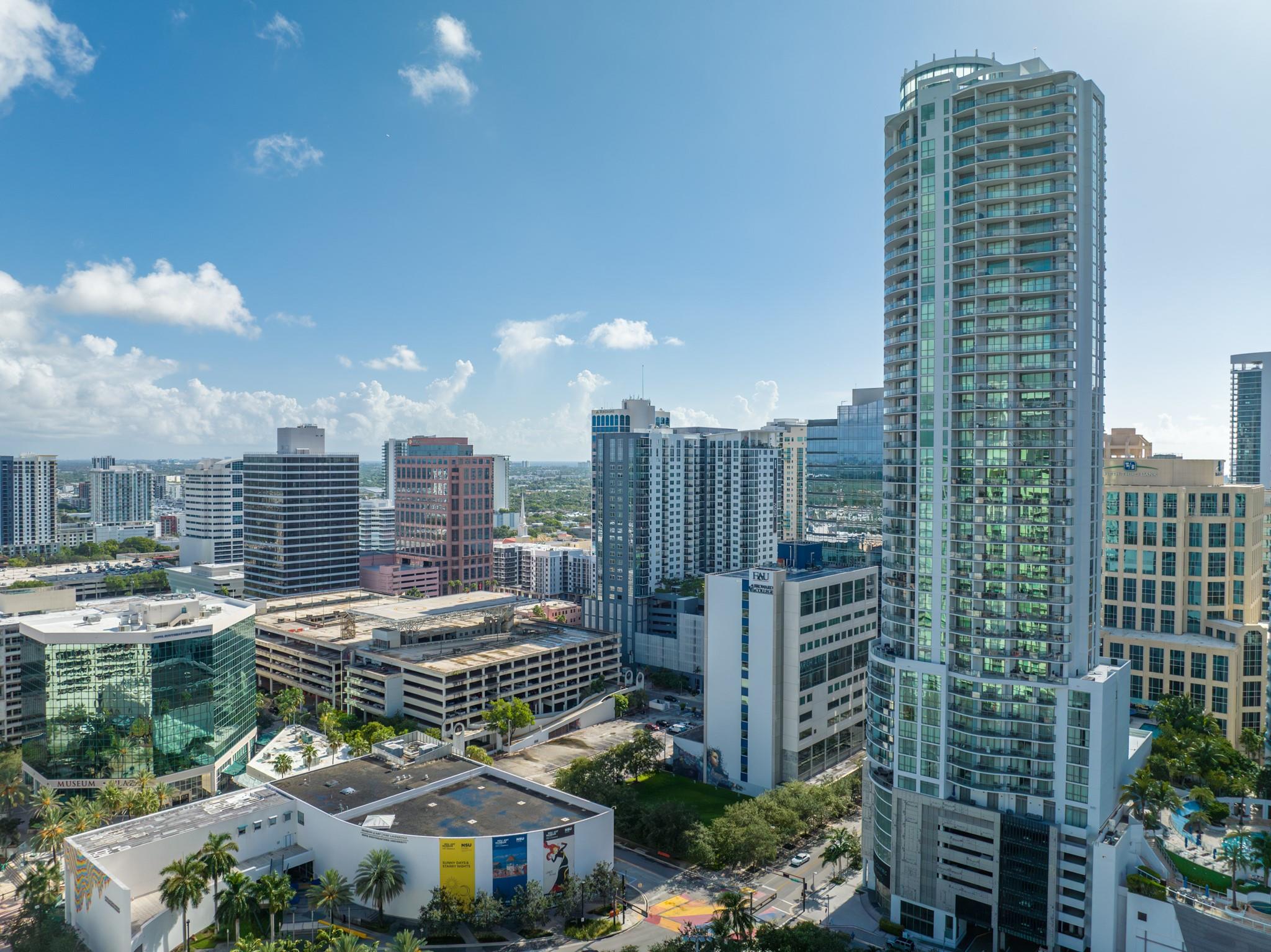 Soaring 40 stories above the city center, this exclusive residence is one of only six in the estate collection—offering unmatched privacy, sophistication, and breathtaking views of Fort Lauderdale's skyline. Floor-to-ceiling windows frame the cityscape, while a private elevator entrance and access-controlled entry points provide discreet, secure access. This expansive 4-bedroom, 4.5-bath layout includes a formal dining room, family room, and a theatre room. Designed for both comfort and elegance, the home features premium flooring, European kitchen cabinetry, quartz countertops, high-end fixtures, and private terraces with glass railings—perfectly positioned for uninterrupted views and seamless indoor-outdoor living and entertainment.