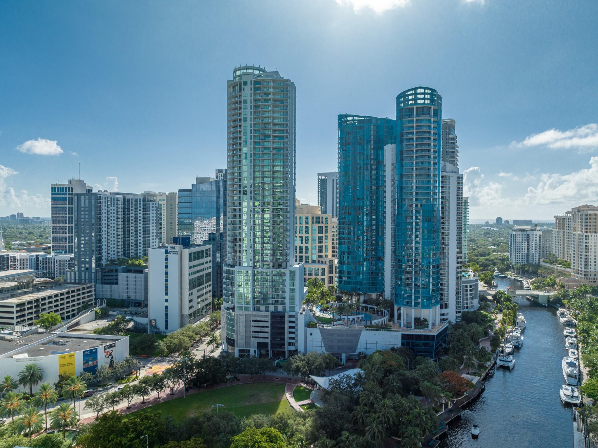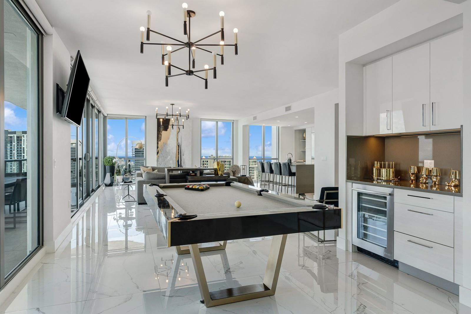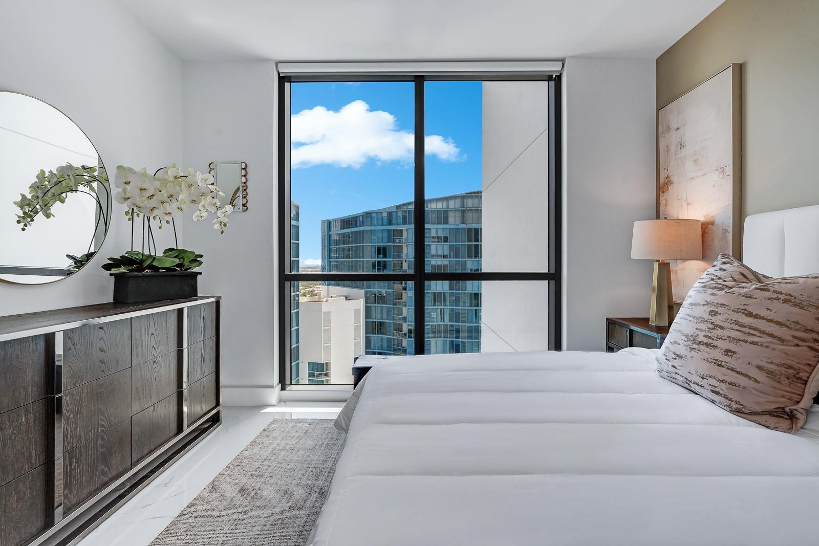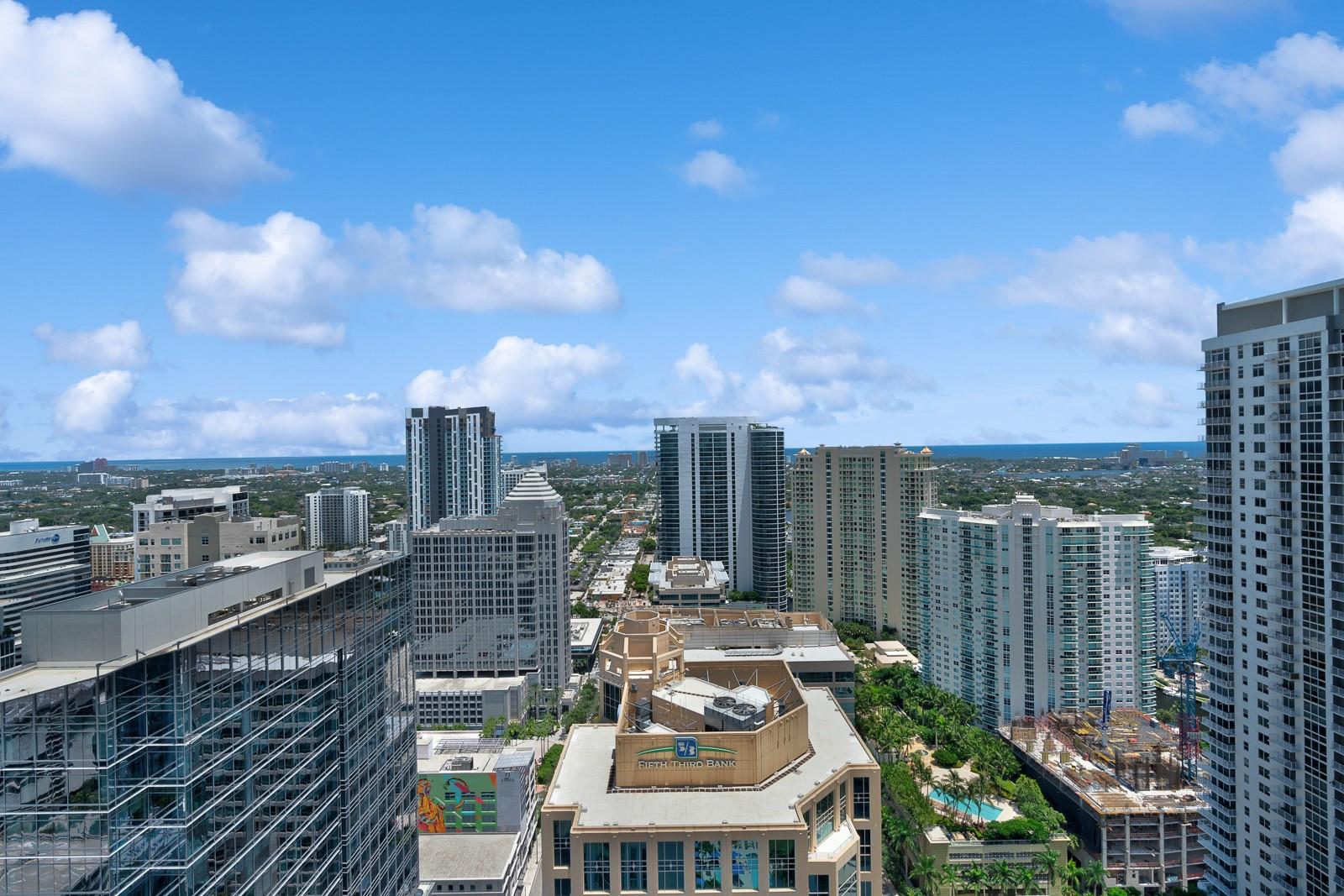Soaring 40 stories above the city center, this exclusive residence is one of only six in the estate collection—offering unmatched privacy, sophistication, and breathtaking views of Fort Lauderdale's skyline. Floor-to-ceiling windows frame the cityscape, while a private elevator entrance and access-controlled entry points provide discreet, secure access. This expansive 4-bedroom, 4.5-bath layout includes a formal dining room, family room, and a theatre room. Designed for both comfort and elegance, the home features premium flooring, European kitchen cabinetry, quartz countertops, high-end fixtures, and private terraces with glass railings—perfectly positioned for uninterrupted views and seamless indoor-outdoor living and entertainment.