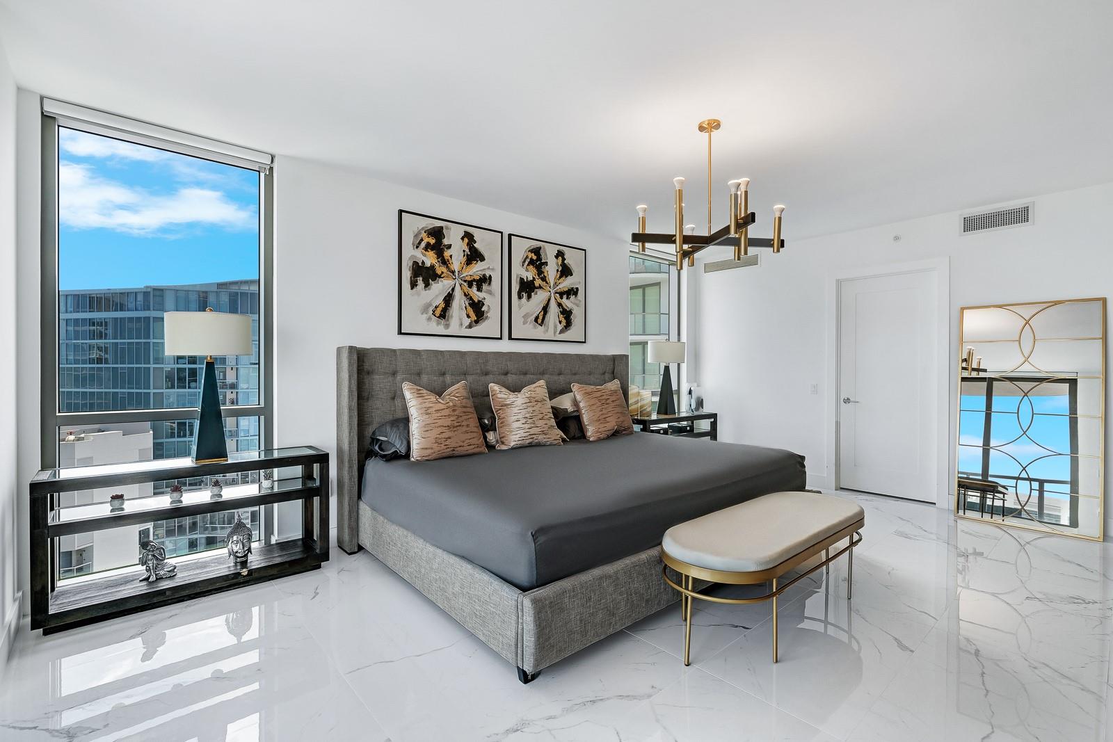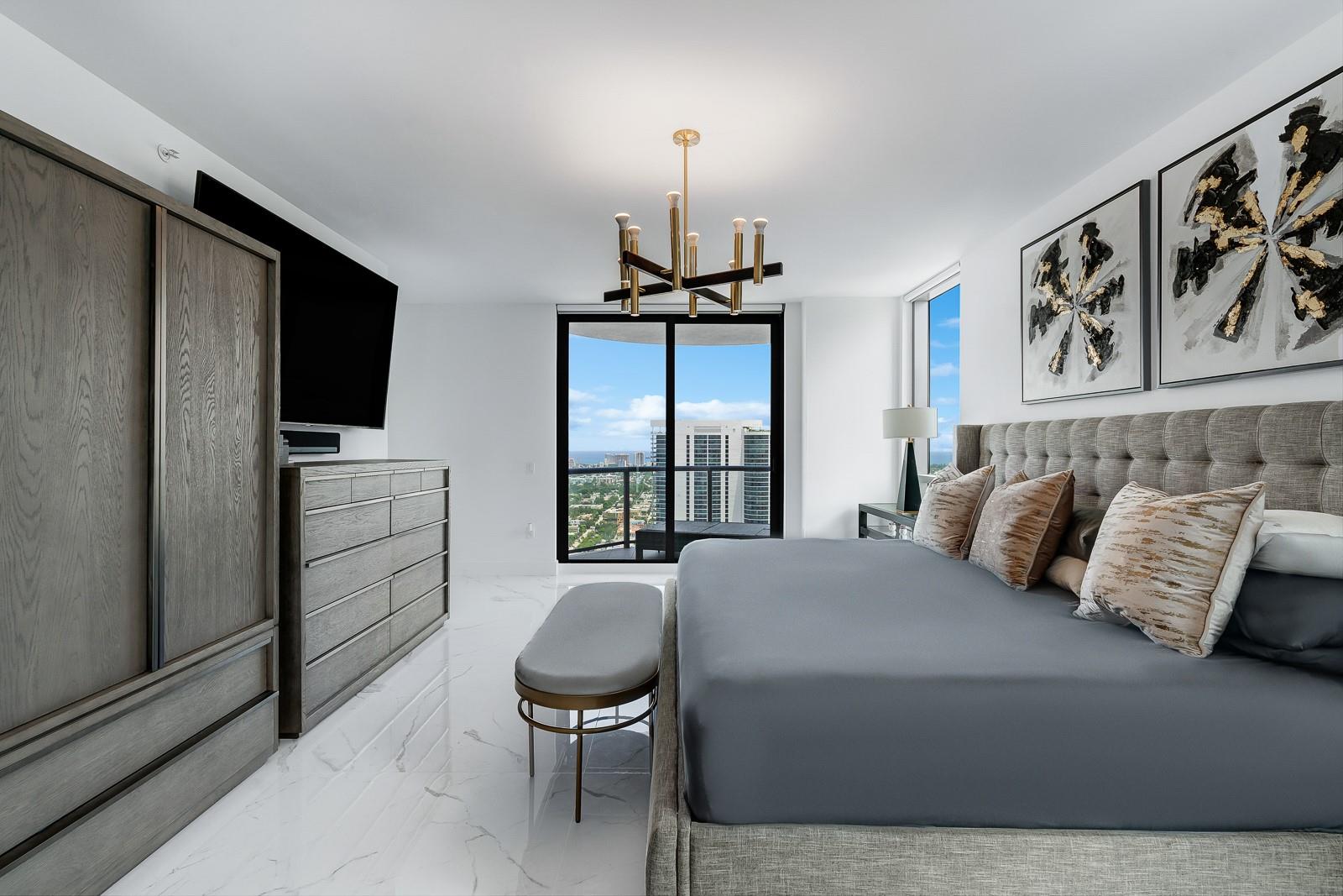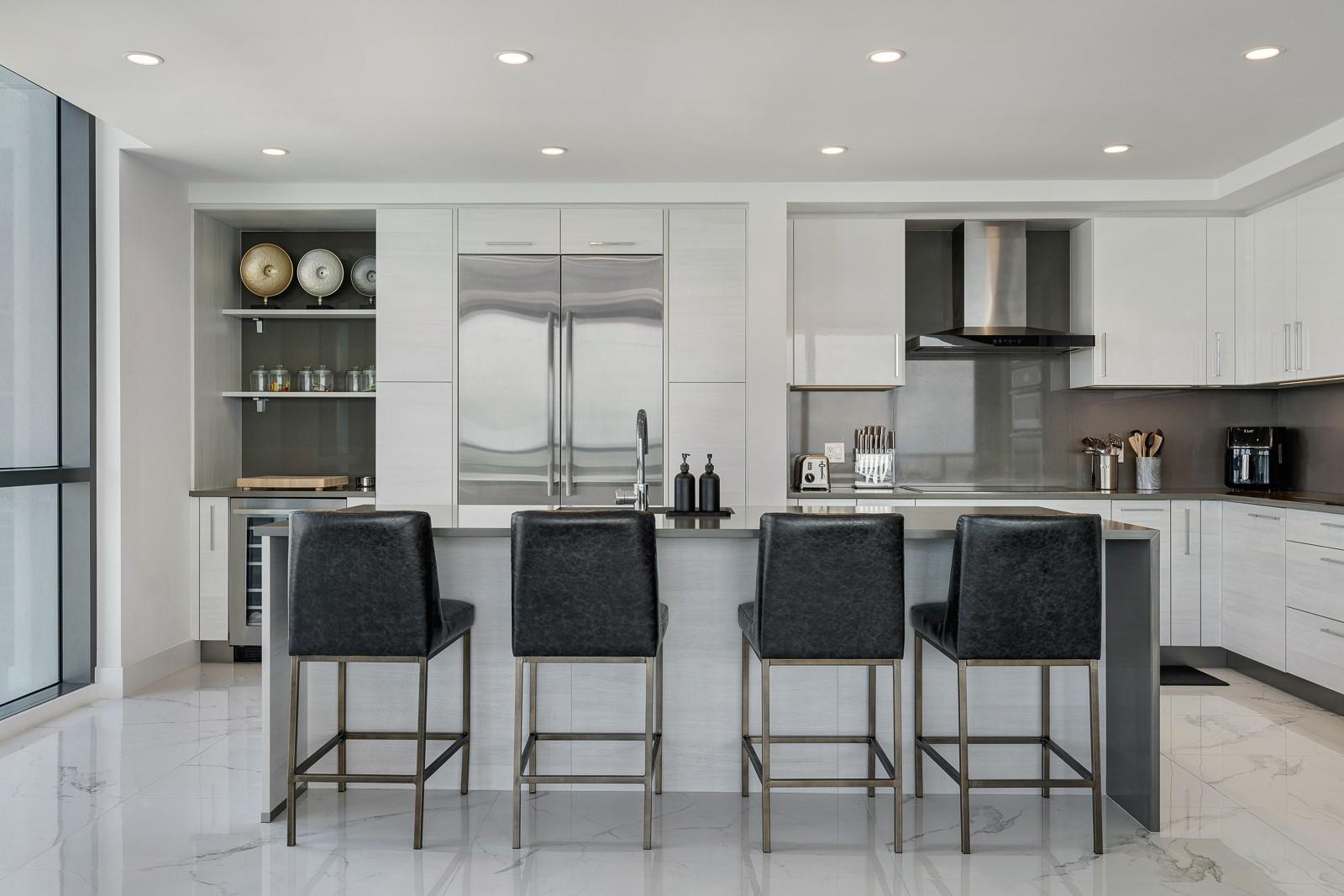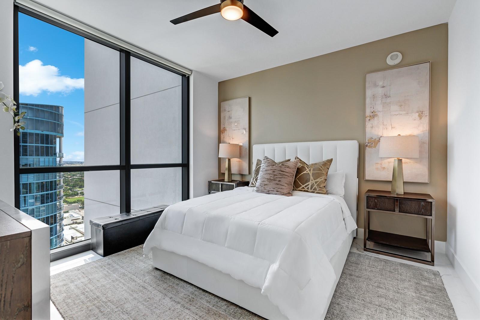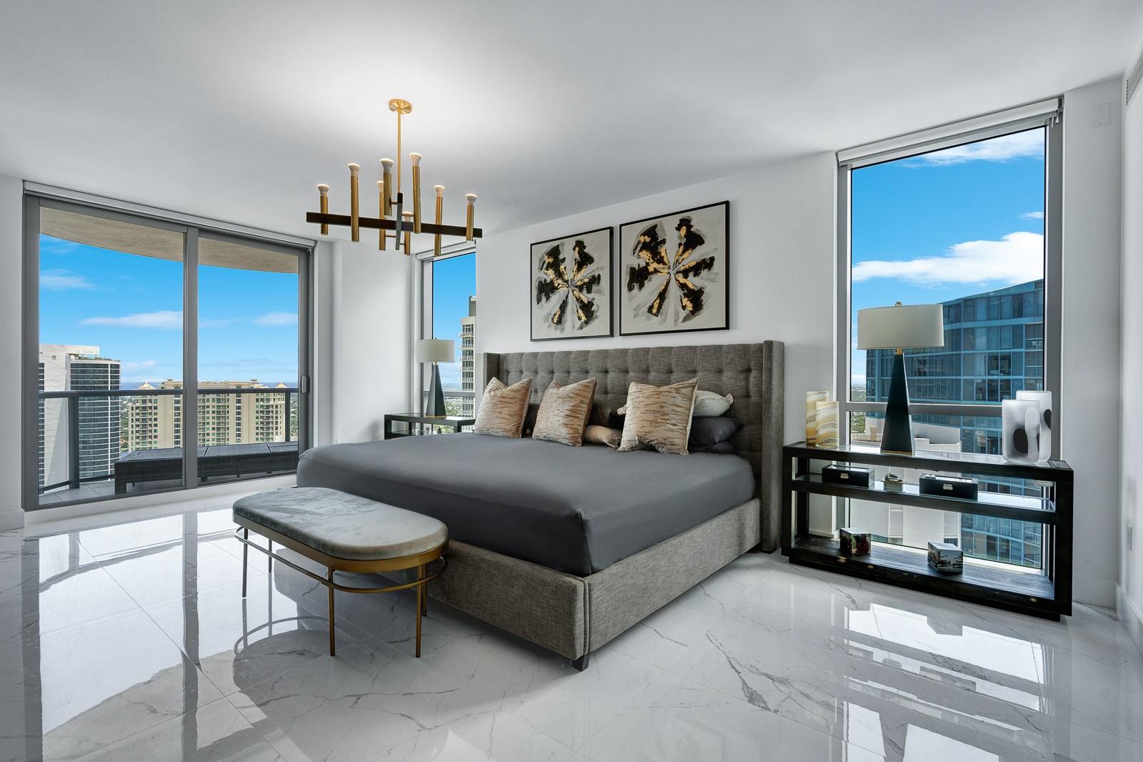 Soaring 40 stories above the city center, this exclusive residence is one of only six in the estate collection—offering unmatched privacy, sophistication, and breathtaking views of Fort Lauderdale's skyline. Floor-to-ceiling windows frame the cityscape, while a private elevator entrance and access-controlled entry points provide discreet, secure access. This expansive 4-bedroom, 4.5-bath layout includes a formal dining room, family room, and a theatre room. Designed for both comfort and elegance, the home features premium flooring, European kitchen cabinetry, quartz countertops, high-end fixtures, and private terraces with glass railings—perfectly positioned for uninterrupted views and seamless indoor-outdoor living and entertainment.