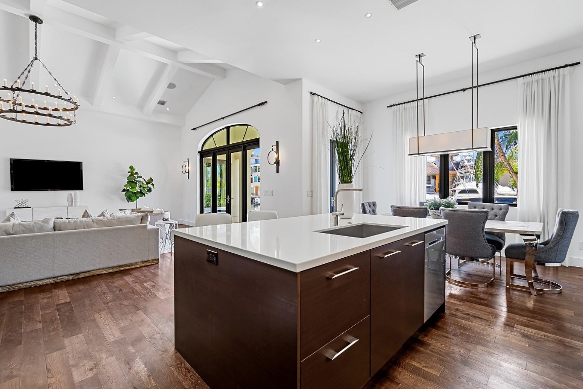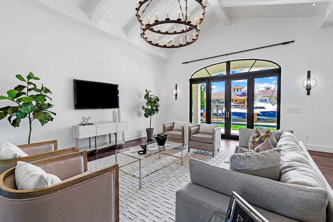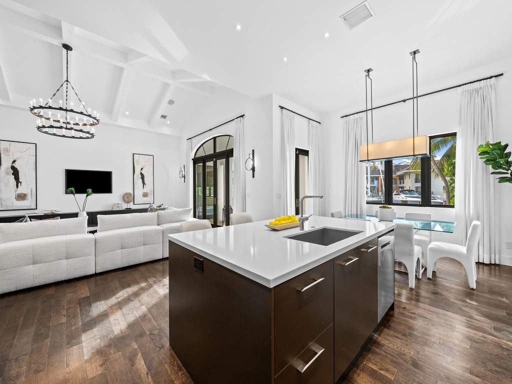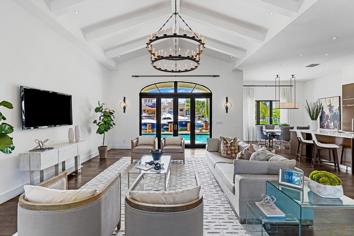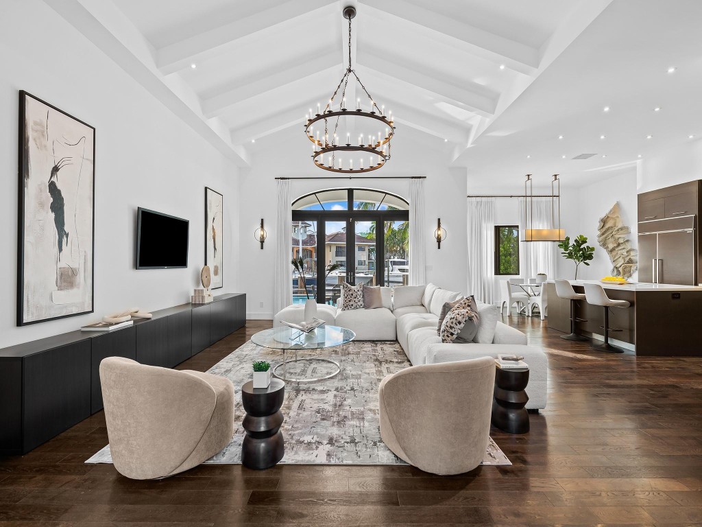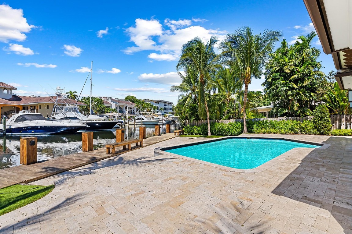 Discover 49 Fiesta Way, a meticulously renovated four-bedroom ranch home on one of the most coveted streets along the Las Olas Isles. No need to renovate, as all major components have been updated - so you can enjoy more time on the water, at the pool or on the beach. Appreciate an 85' dock, no fixed bridges, and quick ocean access. Inside, find a perfect blend of style and functionality. The chef's kitchen is a culinary delight with a Subzero fridge and gas Wolf range, adorned with wood floors and vaulted ceilings featuring decorative beams. Fiesta Way offers underground powerlines, eliminating the need for generators and enhancing the picturesque surroundings. Minutes from the beach and iconic Las Olas Blvd offering many dining, shopping, and nightlife experiences. This is a must-see.