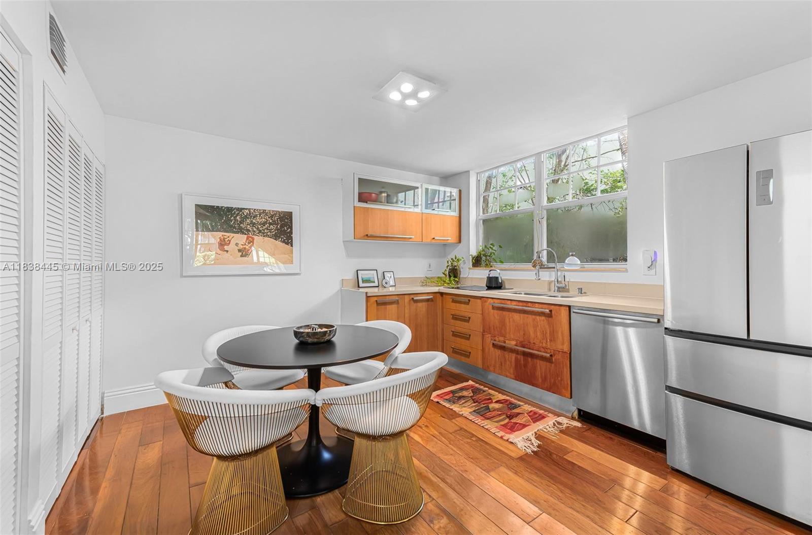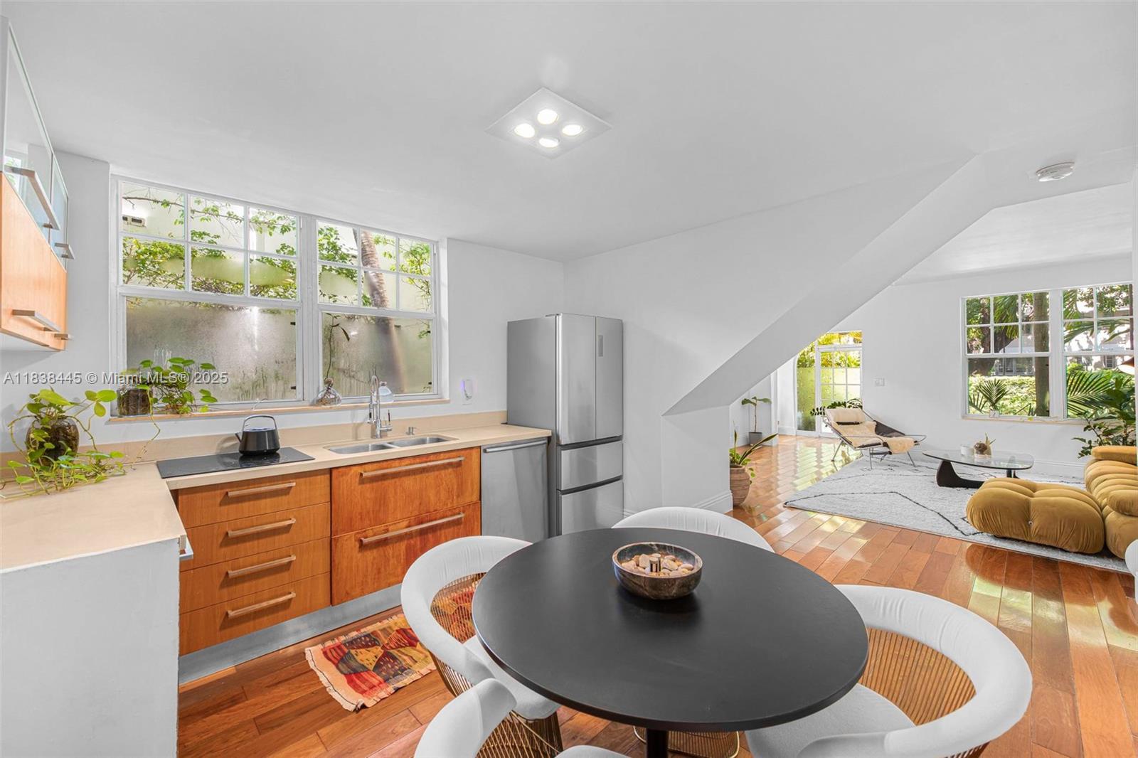 Exceptional opportunity to own a charming Mediterranean-style villa townhouse on tree-lined Meridian Avenue. This bright, south-facing corner home features 2 bedrooms, a private gated patio, second-floor terrace, and a large deeded garage with storage. The spacious split floor plan includes a dine-in kitchen, hardwood floors, stainless-steel appliances, and full-size washer/dryer. Feels like a private home and echoes the charm of classic Miami Beach. Recent upgrades include new lighting and security. Just steps to Flamingo Park and the beach.