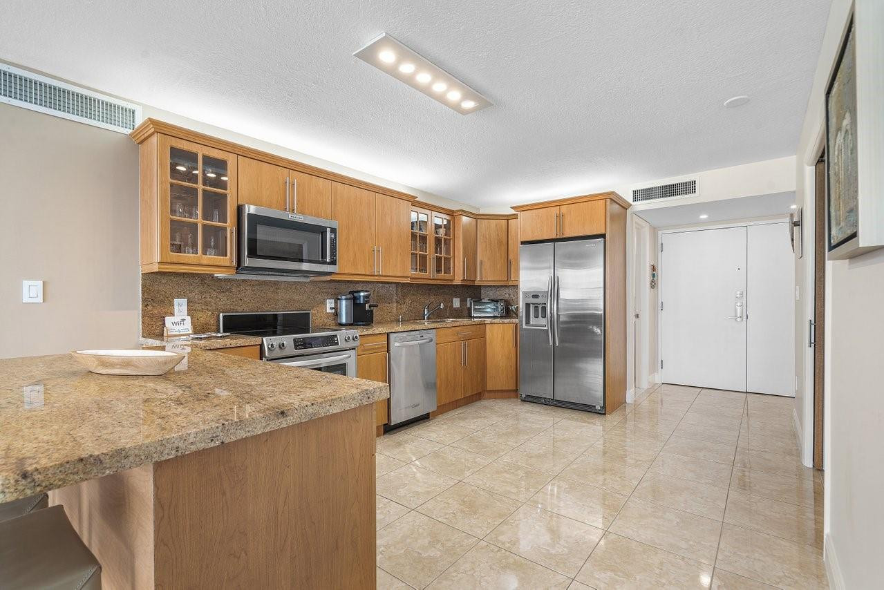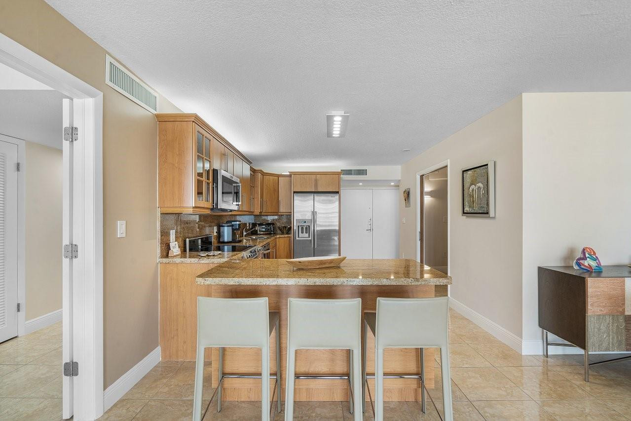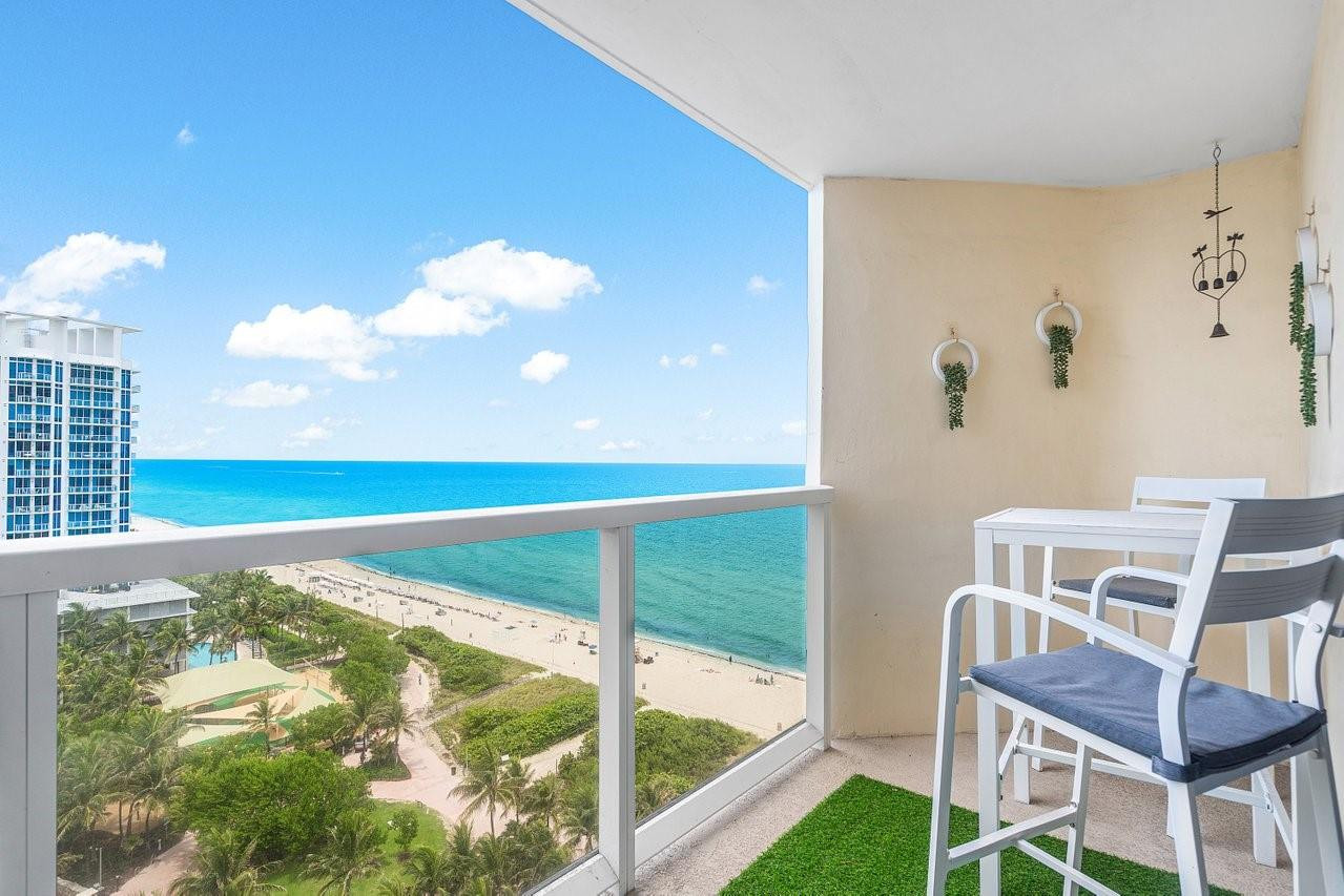Experience breathtaking full ocean, state park, and Intracoastal views from this renovated corner unit at Mar del Plata. This meticulously updated condo features a new full bath, renovated kitchen, new light fixtures, recessed lighting, and a new washer/dryer. Enjoy abundant custom closet space, impact windows with treatments, and updated AC. The enclosed den offers a versatile space with a double Murphy bed. The building boasts amenities like a pool deck, gym, sauna, and direct beach access. Close to South Beach, Bal Harbour, and a dog park. Live the Miami Beach dream today! Seller will take care of all assessments upon sale.