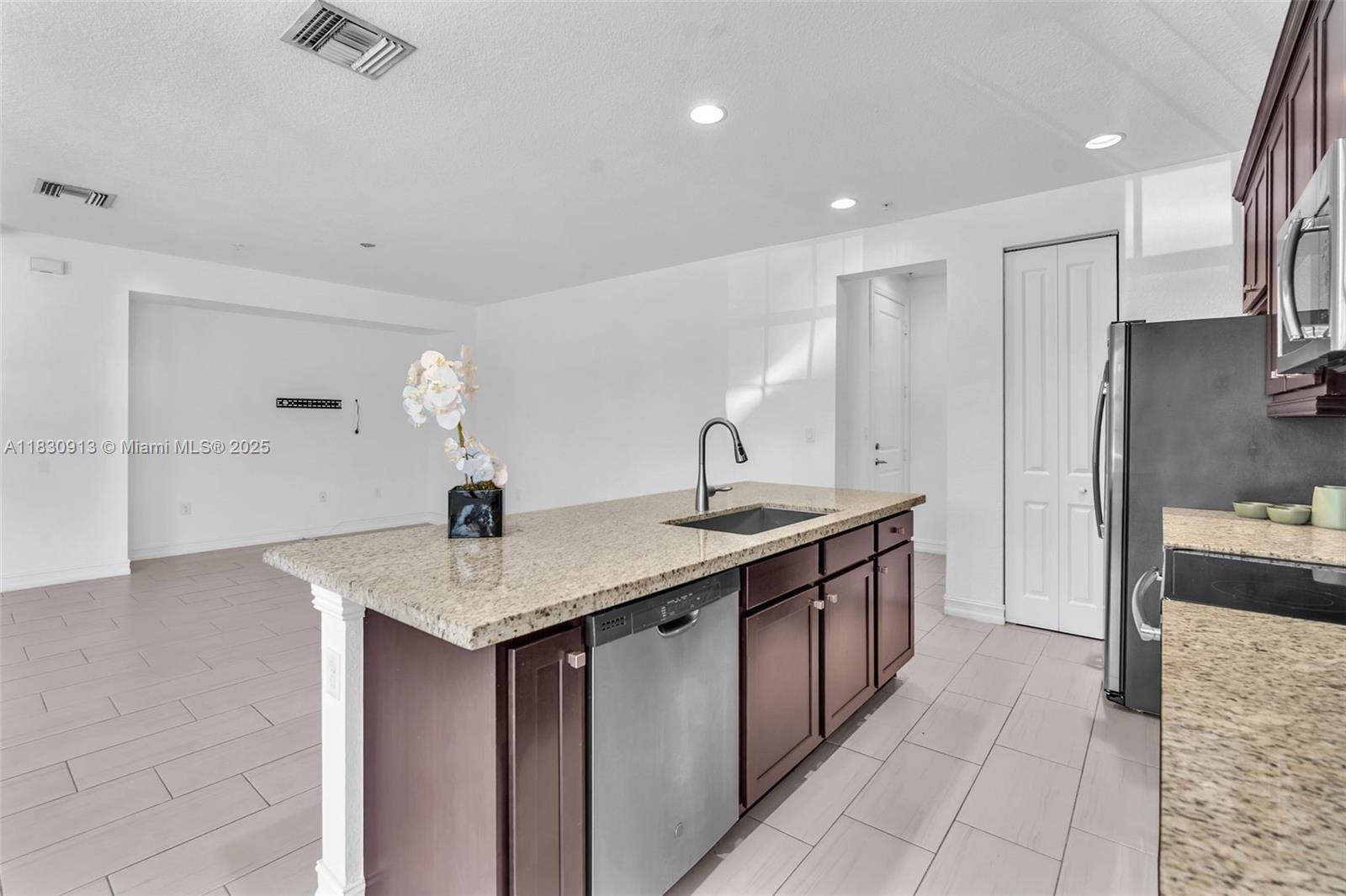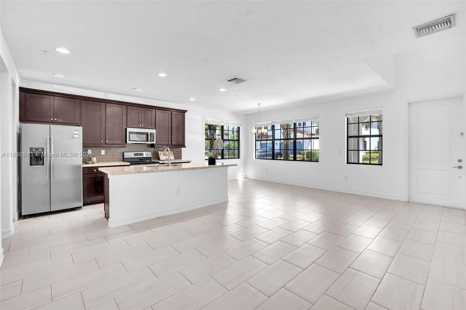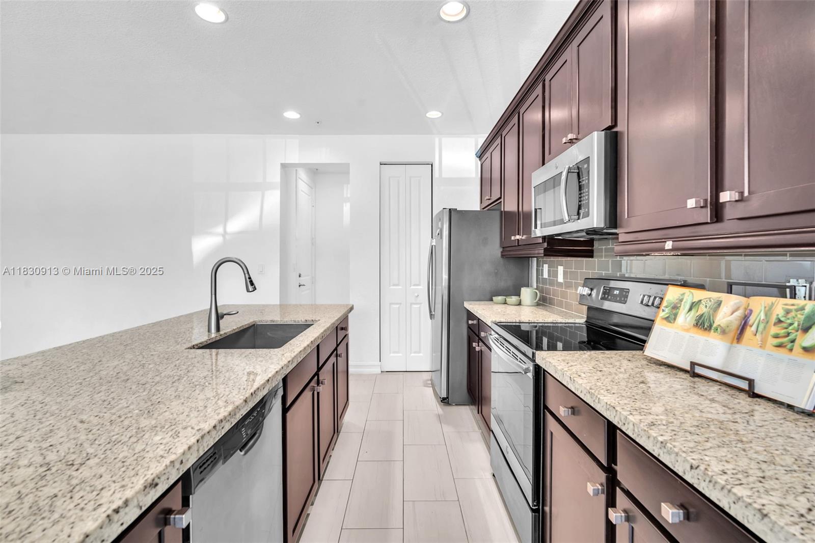 Modern 2 floor 3 bed/3.5 bath corner lot townhome built in 2019. All bedrooms are on second floor with own bathrooms including tubs/showers. Large master with balcony, boasts his & hers closets plus double basins & separate soak tub & shower. This level & stairs have completely new vinyl flooring as well as convenient laundry room with shelving & closet. The great room on the ground floor accommodates nice living & dining spaces plus a modern kitchen with granite counters, large center isle & stainless steel appliances. A large single basin, pantry and powder room are also great features. Home has 2 car garage plus addition space that accommodates a motorbike or extra storage. Community features heated pool & gym plus a party room with full kitchen. Close to I75, shops & restaurants.