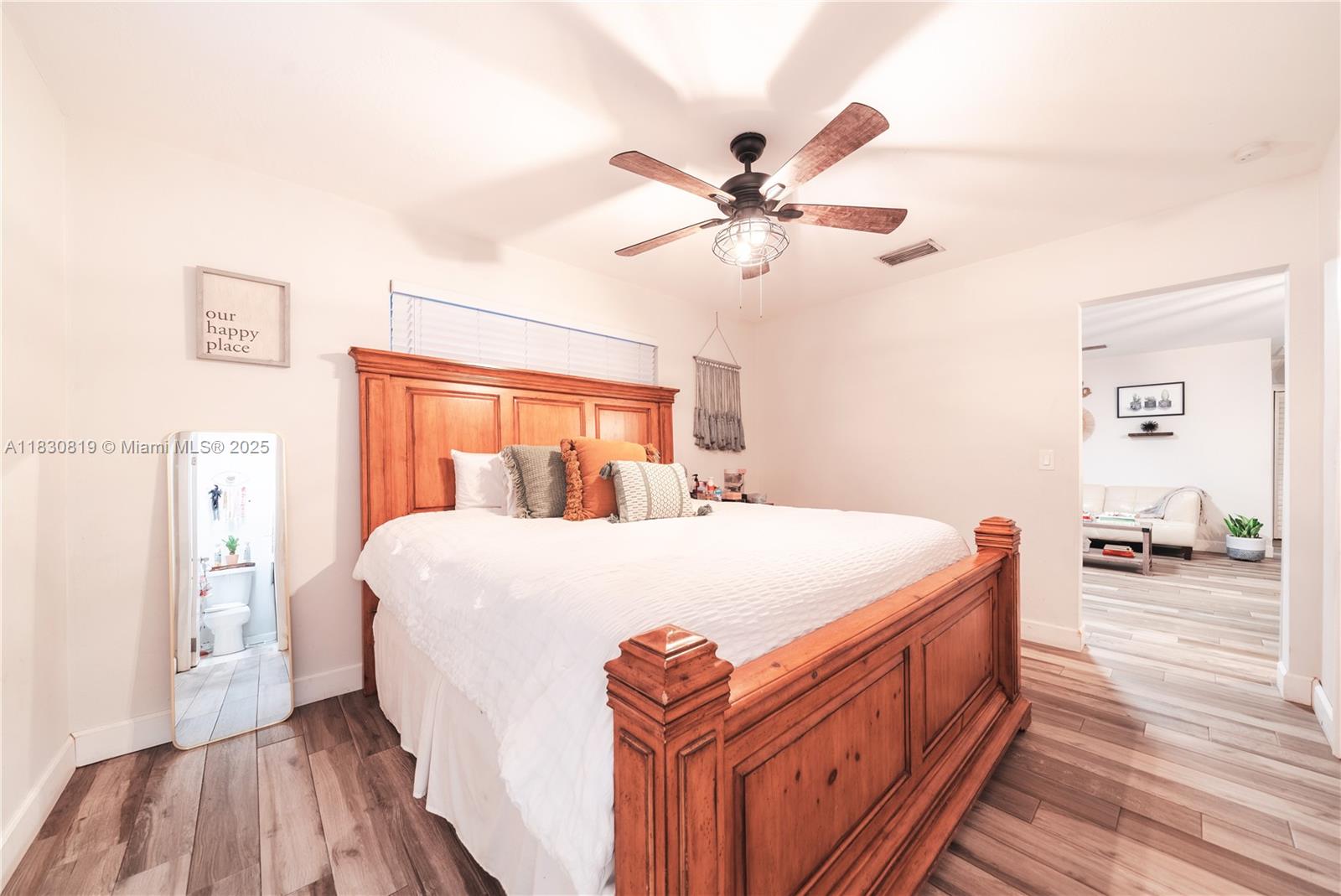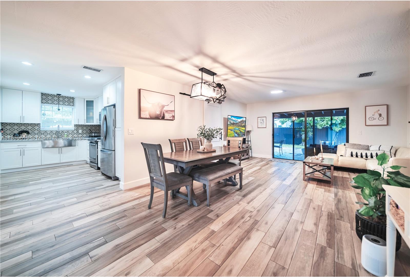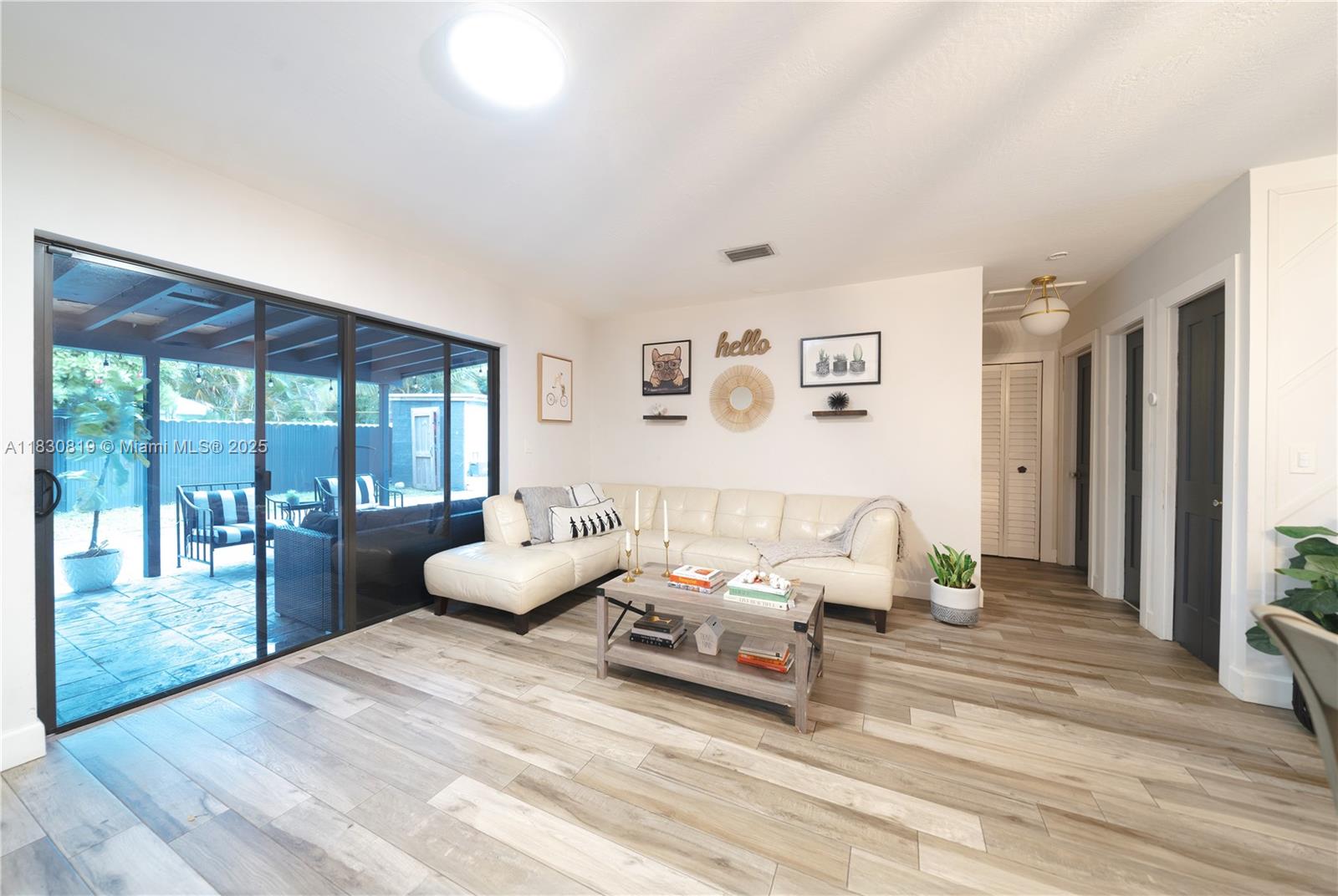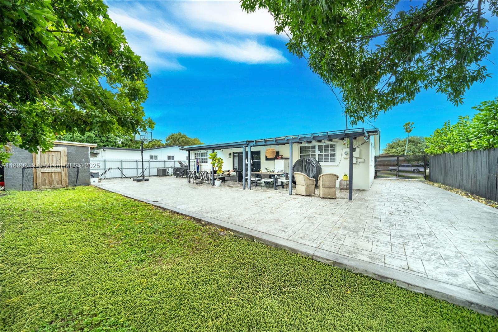 This charming Single Family home 3 bed and 2 baths has an open-concept floor plan & abundant natural light. The split plan offers privacy. Quartz countertops, wood cabinets & stainless steel appliances in the kitchen. The property features gray ceramic tile throughout. The low-maintenance backyard is ideal for entertaining, plus it has a shed for storage. The windows have shutters.. Being close to schools, shops, the highway, & an easy drive to both the beach & the airport adds convenience. Without any association fees, it could be an appealing option for those looking for a balance of comfort, style, & practicality. Laundry room, new refrigerator, AC approximately 4 yrs, new roof.
