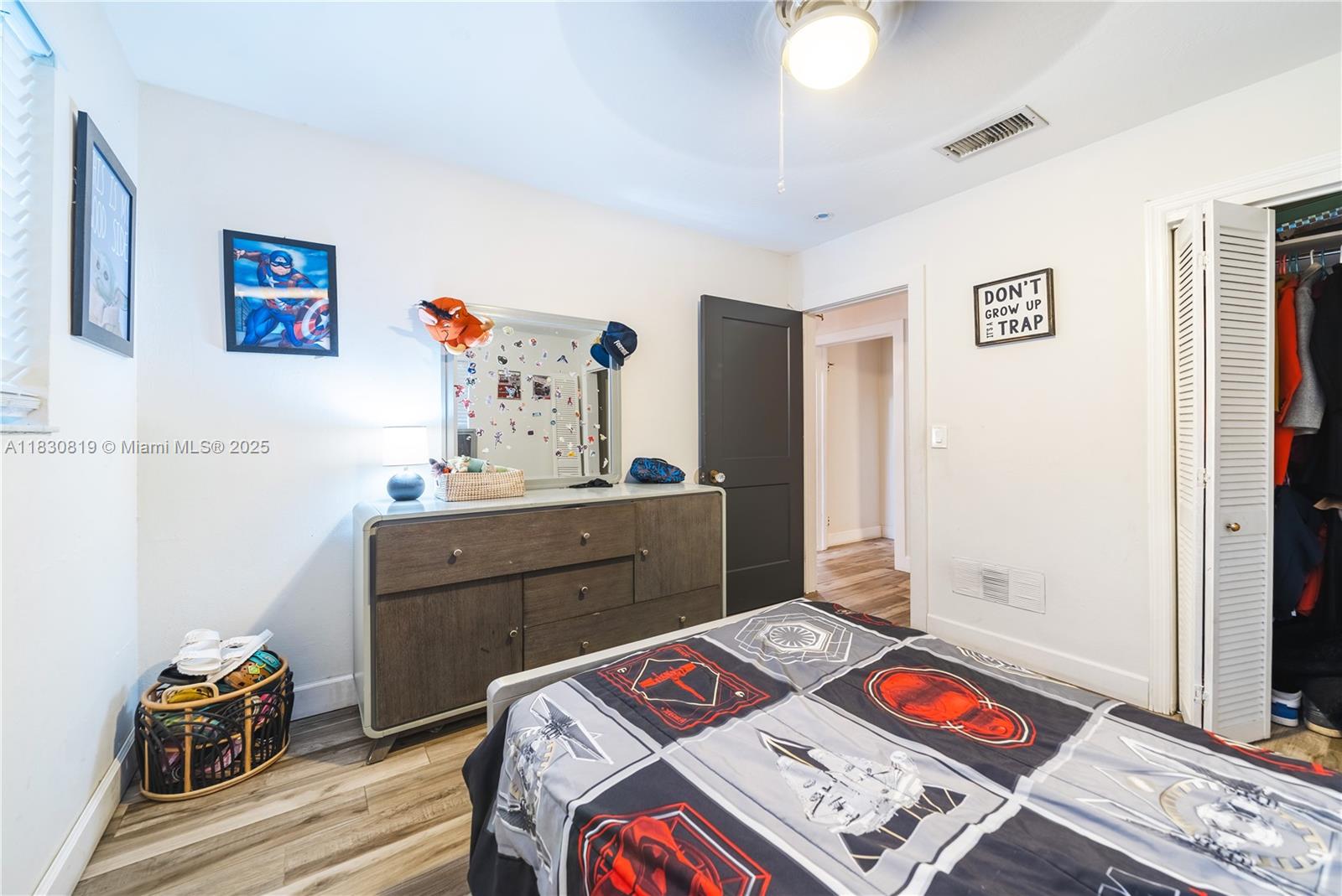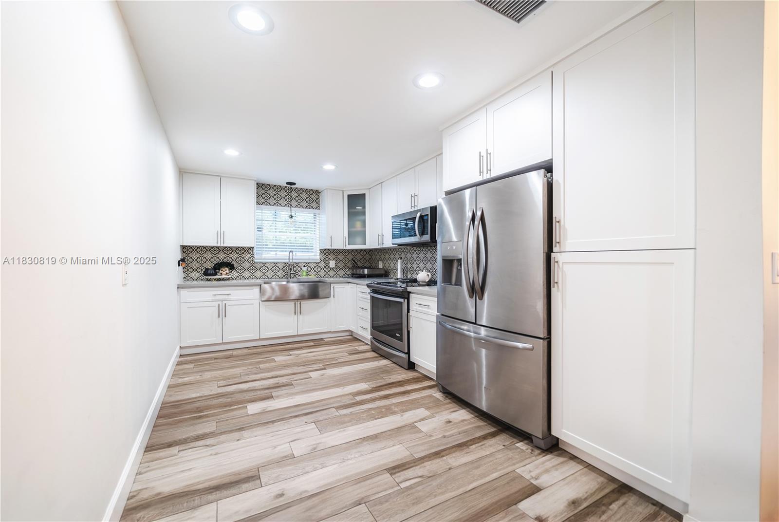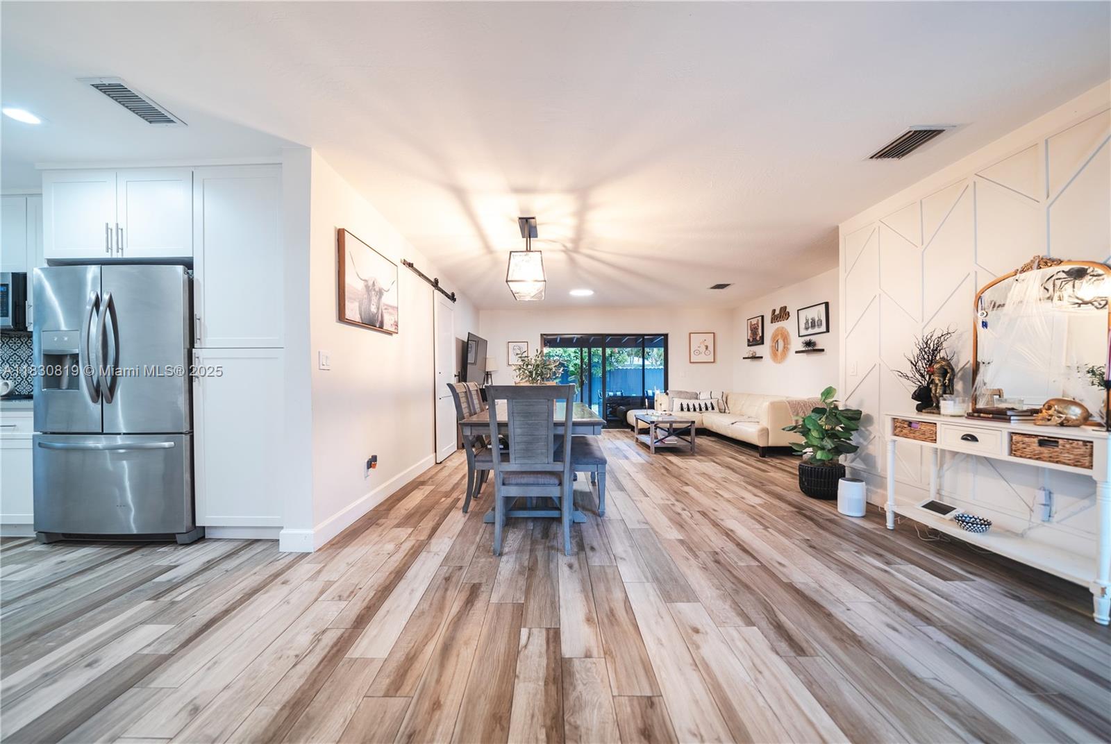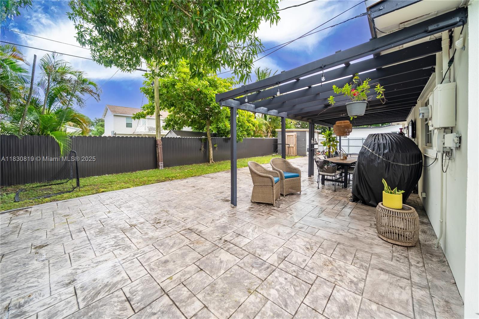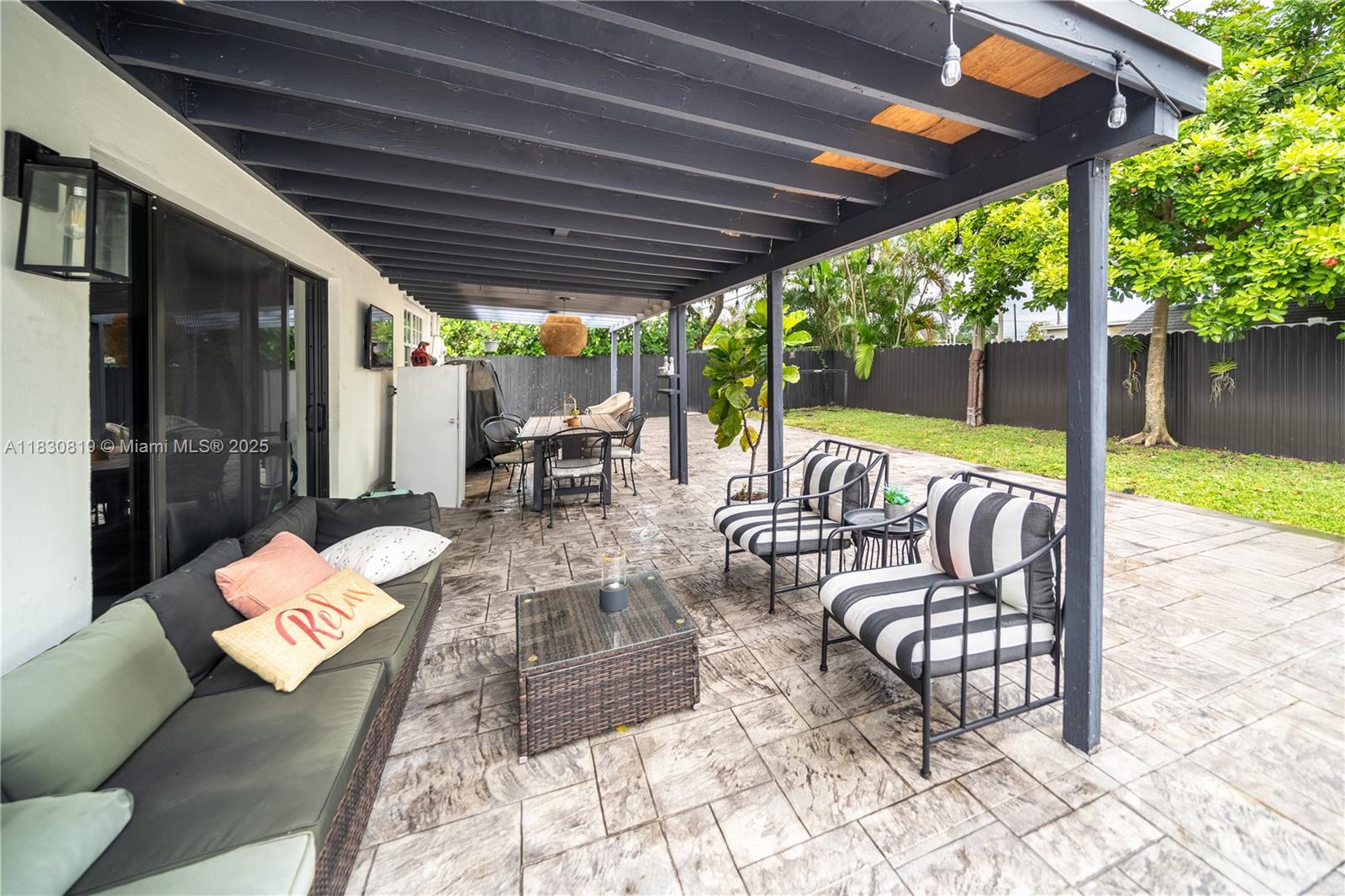 This charming Single Family home 3 bed and 2 baths has an open-concept floor plan & abundant natural light. The split plan offers privacy. Quartz countertops, wood cabinets & stainless steel appliances in the kitchen. The property features gray ceramic tile throughout. The low-maintenance backyard is ideal for entertaining, plus it has a shed for storage. The windows have shutters.. Being close to schools, shops, the highway, & an easy drive to both the beach & the airport adds convenience. Without any association fees, it could be an appealing option for those looking for a balance of comfort, style, & practicality. Laundry room, new refrigerator, AC approximately 4 yrs, new roof.