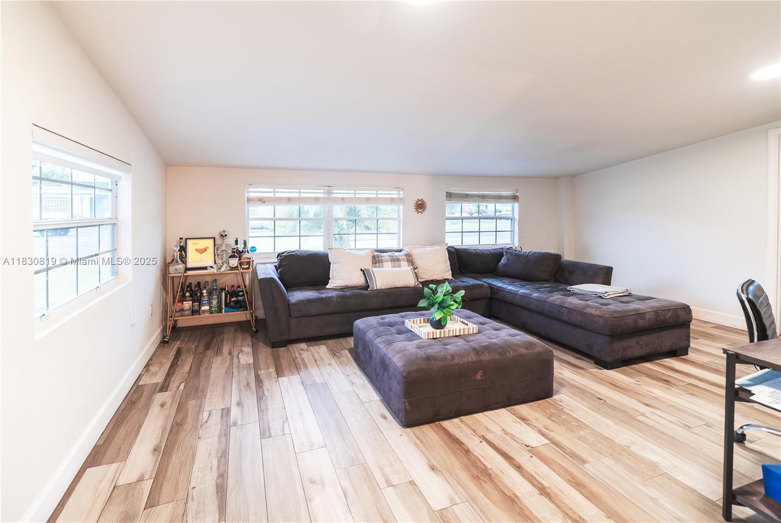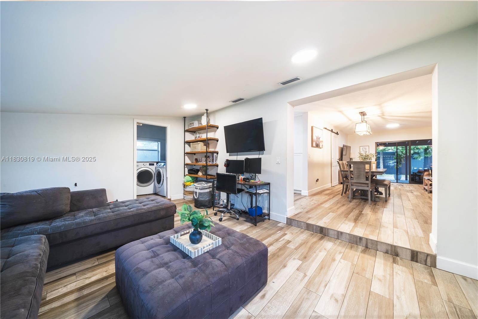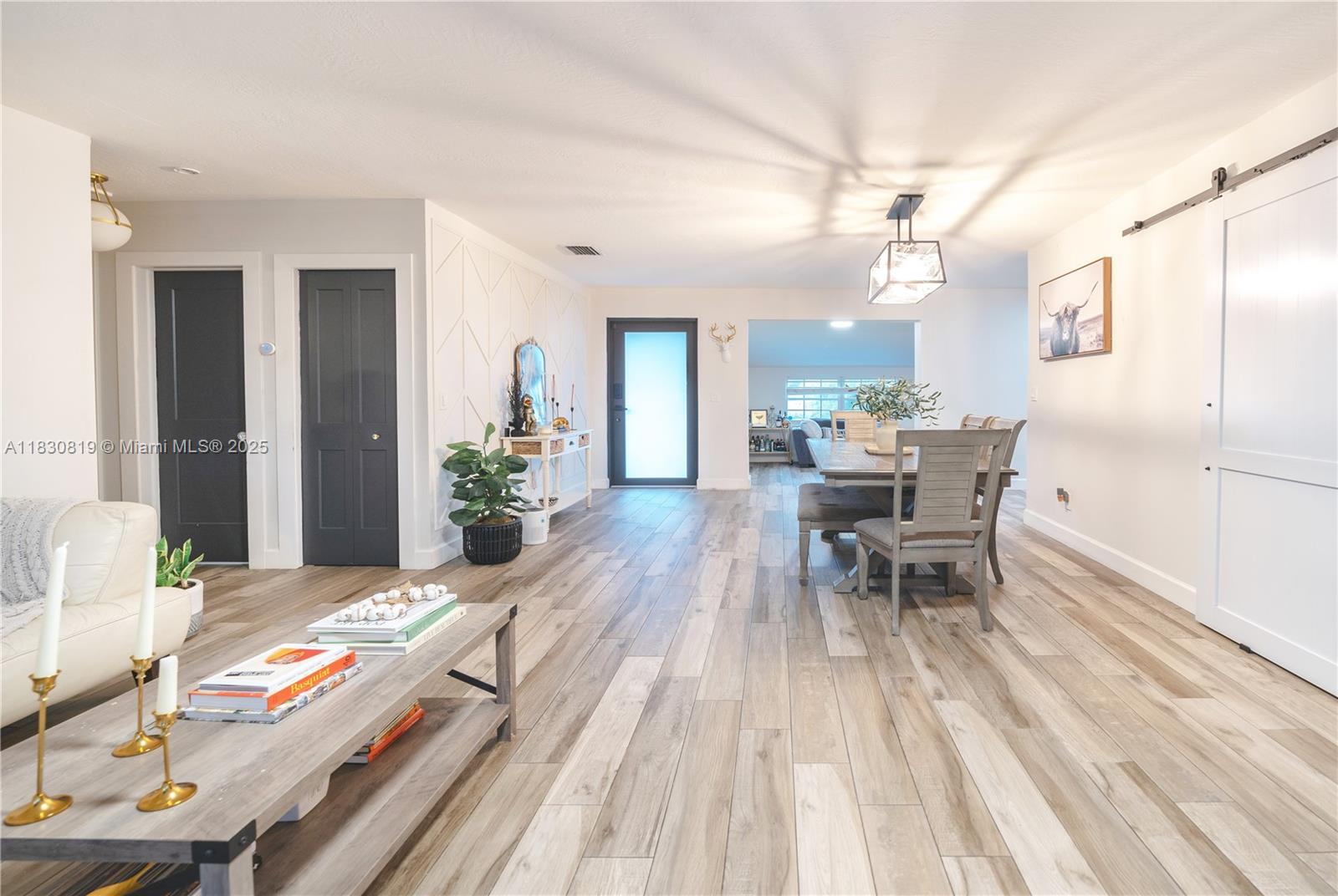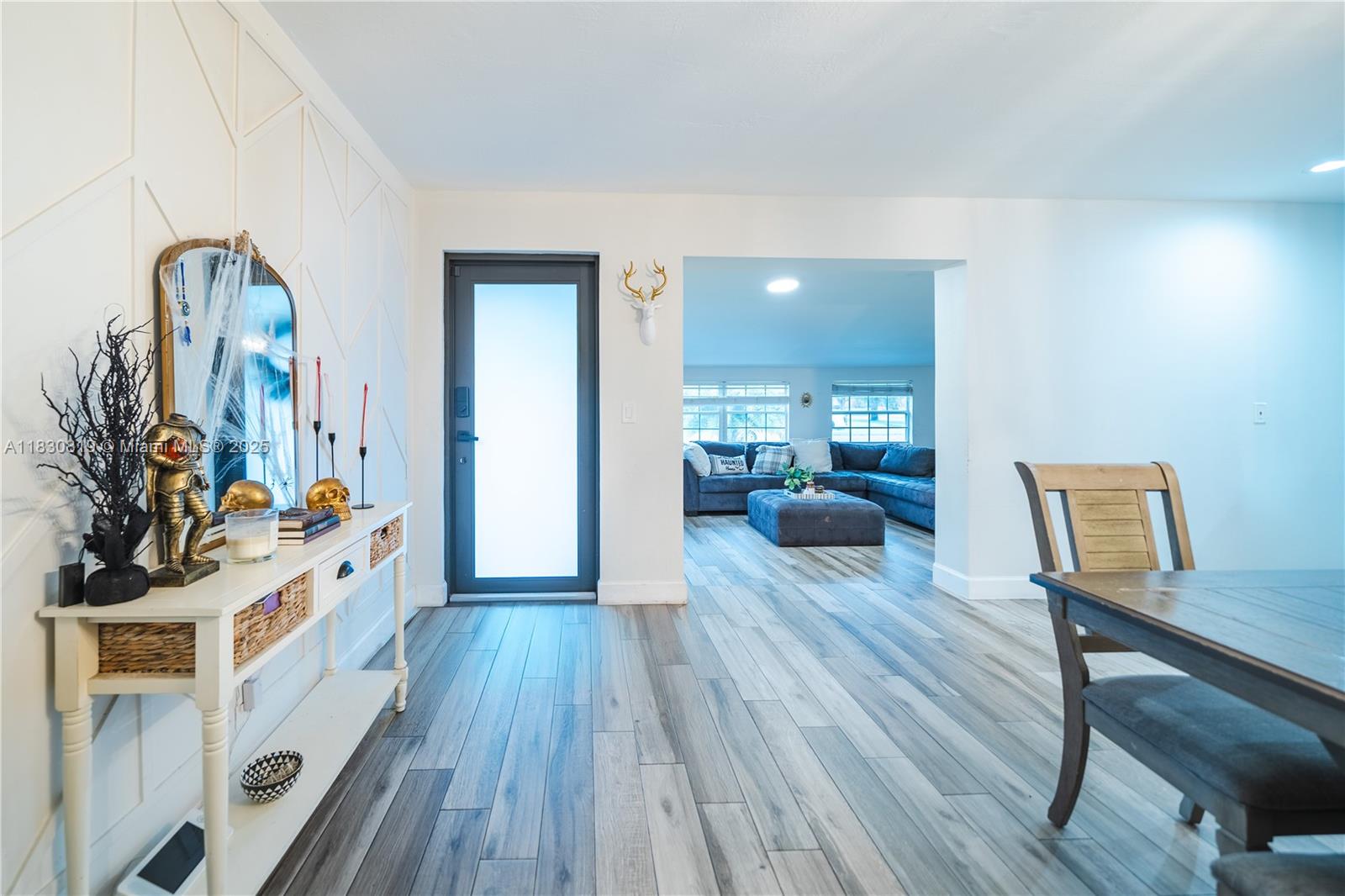 This charming Single Family home 3 bed and 2 baths has an open-concept floor plan & abundant natural light. The split plan offers privacy. Quartz countertops, wood cabinets & stainless steel appliances in the kitchen. The property features gray ceramic tile throughout. The low-maintenance backyard is ideal for entertaining, plus it has a shed for storage. The windows have shutters.. Being close to schools, shops, the highway, & an easy drive to both the beach & the airport adds convenience. Without any association fees, it could be an appealing option for those looking for a balance of comfort, style, & practicality. Laundry room, new refrigerator, AC approximately 4 yrs, new roof.