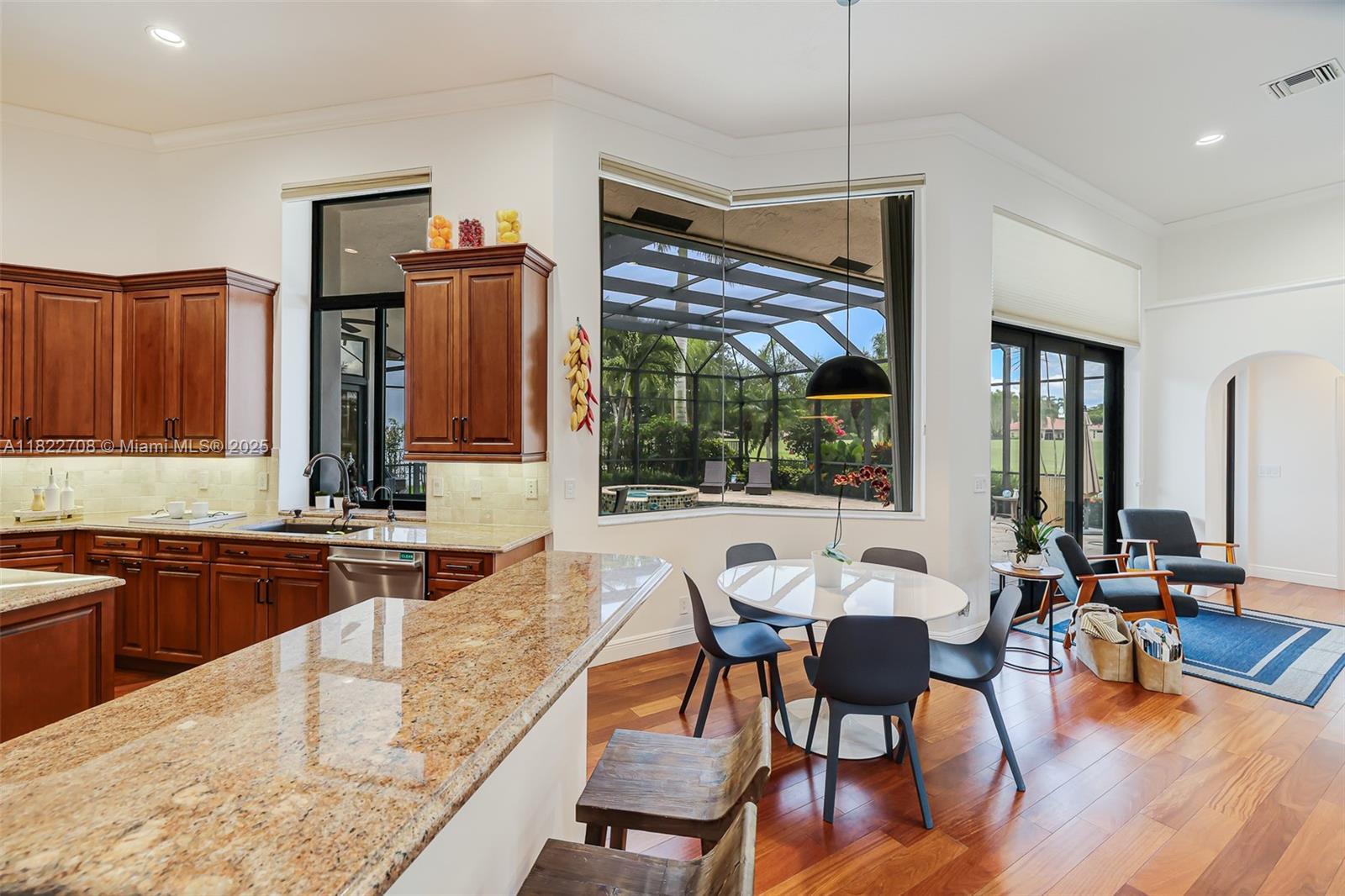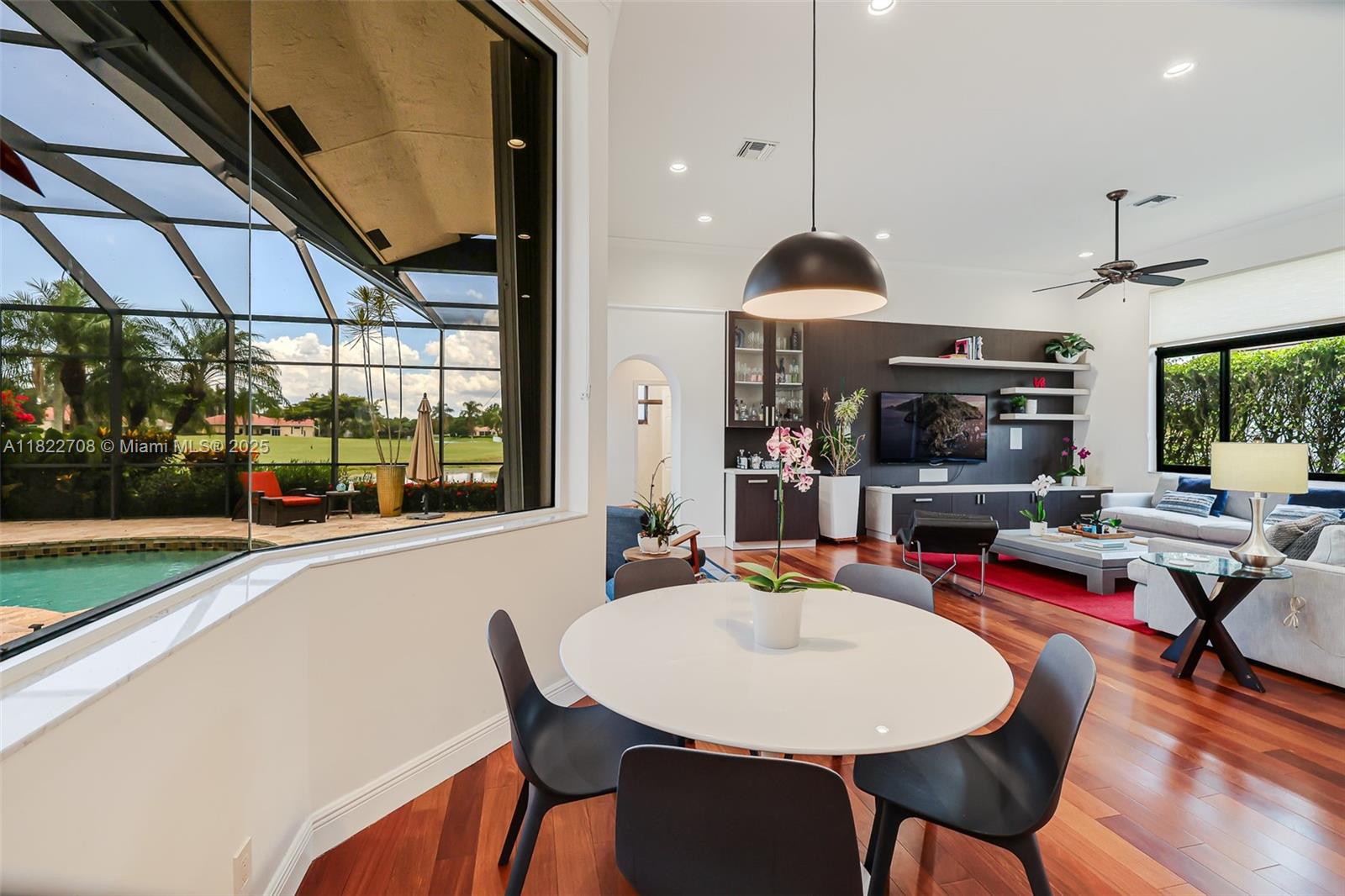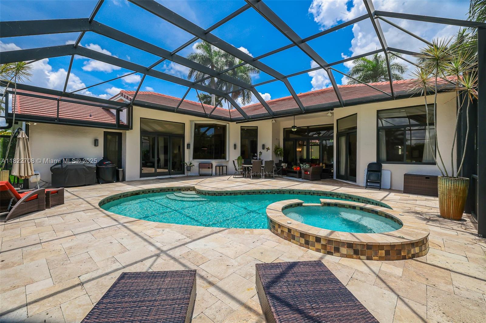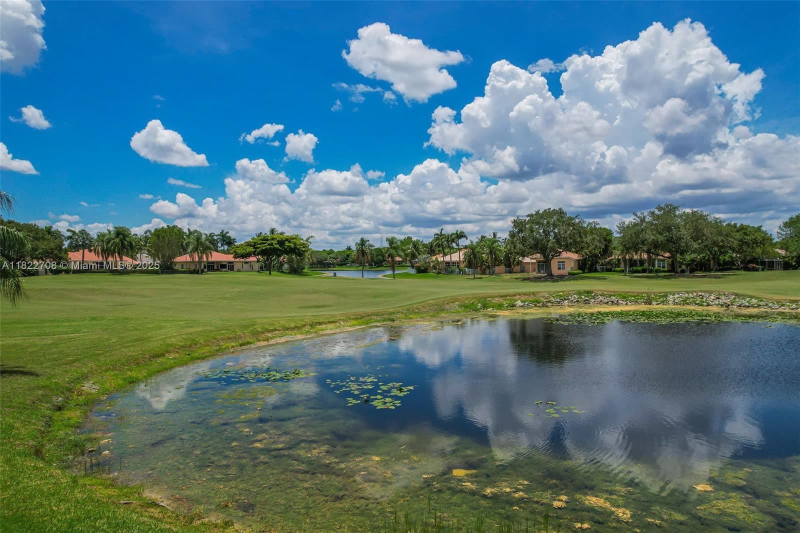 Discover unparalleled golf and water views with stunning sunsets in this residence located within gated community of Weston Hills Country Club. Nestled on a cul-de-sac, this elegant home features an open floor plan with soaring high-volume ceilings, creating a bright living space. Exterior highlights include a travertine deck, retractable awning, and a beautifully landscaped backyard, complete with a sparkling pool and expansive patio--perfect for entertaining or enjoying scenic views. This home has an updated roof, full-impact windows and a three-car garage. Weston Hills offers 24-hour security, top-rated A+ schools, parks, playgrounds, making it a sought-after lifestyle destination. A truly move-in-ready home that combines luxury, comfort, and exceptional location.