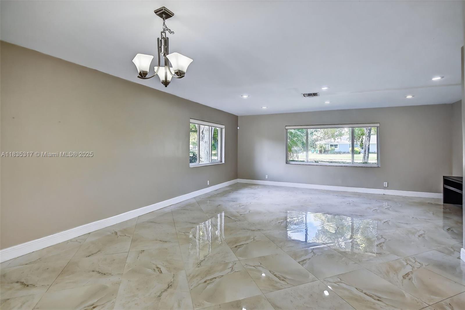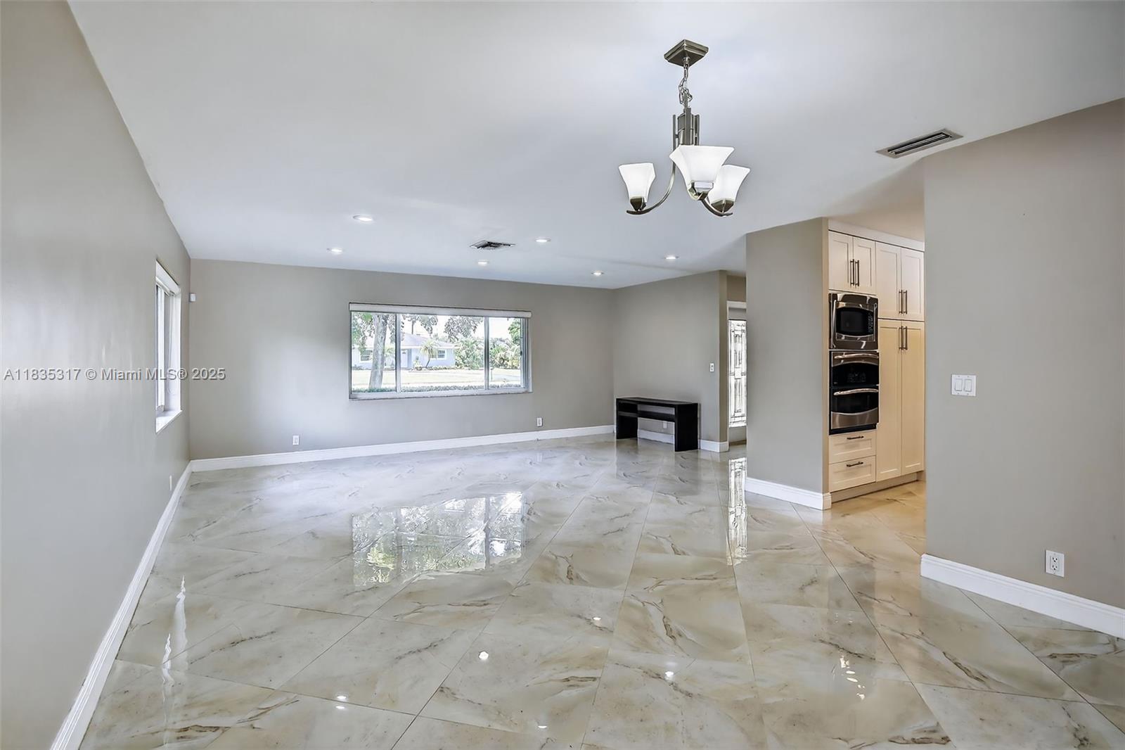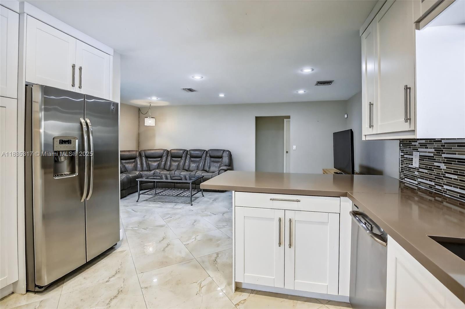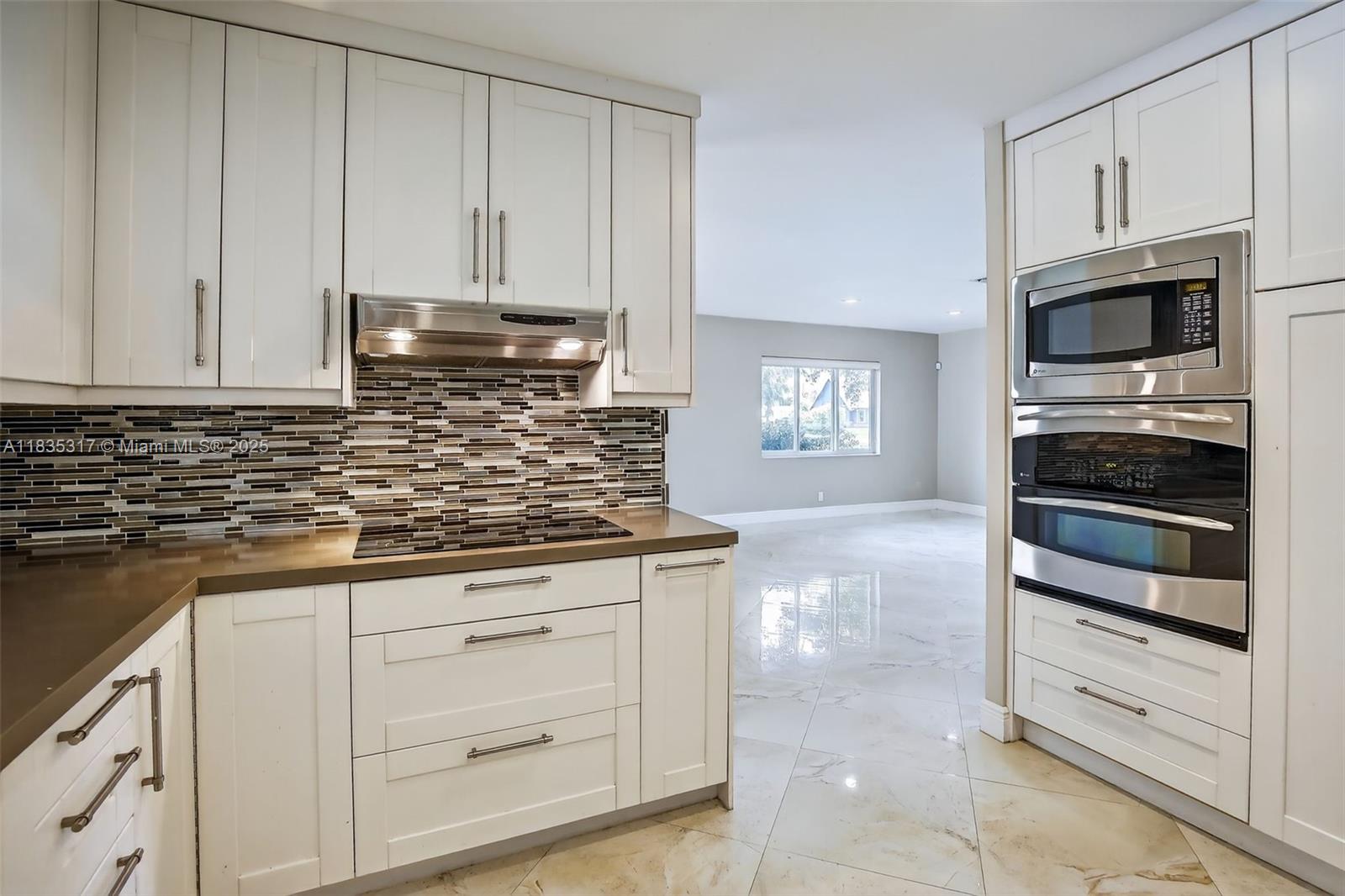 This great pool home in Davie is situated on a builder's acre in a private cul-de-sac. It features 3 bedrooms and 2 full bathrooms, a master bath with a frameless shower and a walk-in closet. This home offers porcelain tile flooring throughout. The updated kitchen boasts quartz countertops, a breakfast bar, and stainless steel appliances, and it seamlessly opens to both the living room and the family room. The spacious backyard includes a large stone paver deck and a covered patio surrounding a newly refinished free-form pool, all within a fully fenced yard. For added safety, the home is equipped with hurricane protection for all windows and doors. Conveniently located, this property is close to a variety of parks, dining, and entertainment options, and it lies within an A+ school district