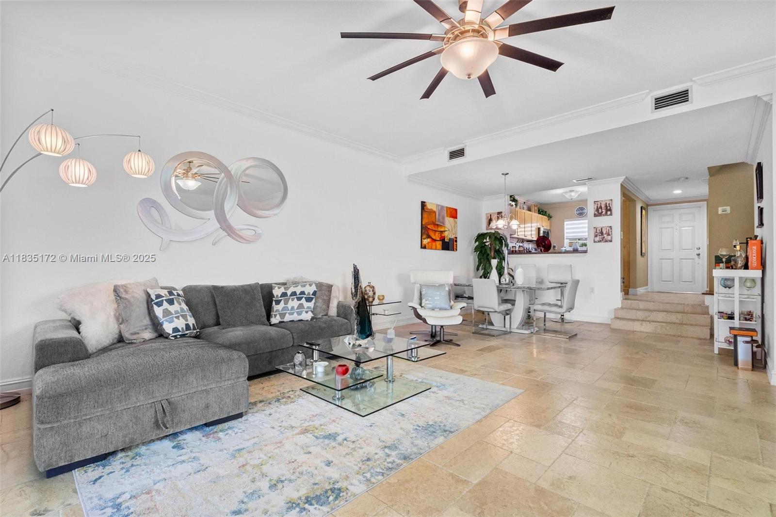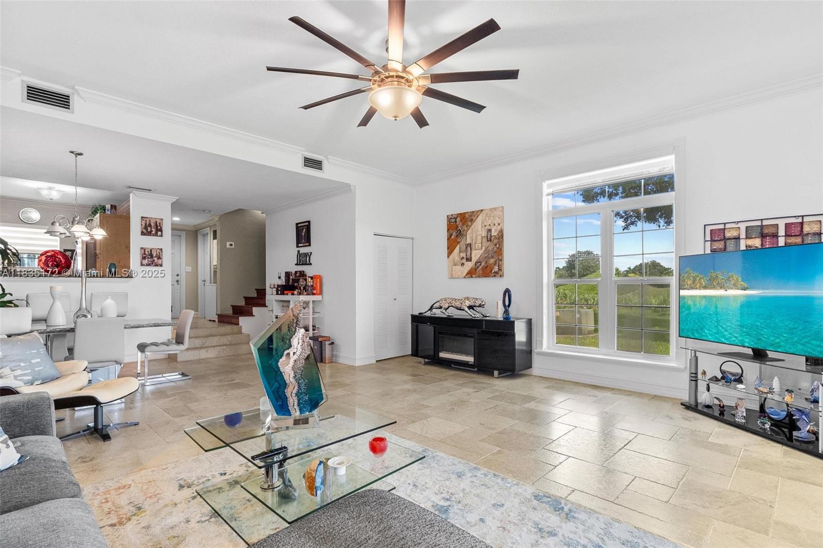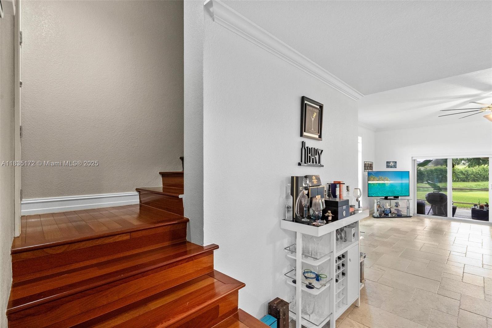 Fully Updated 2bd/2,5 bath townhouse in the heart of Davie at the Isla Merita community. This move-in-ready unit features travertine marble floors that flow throughout the first level, creating a timeless and luxurious look. Upstairs, the Brazilian cherry wood on the staircase and in both bedrooms elevate the home's character with rich warmth and style upstairs. Modern kitchen with stainless steel appliances, open living/dining layout, the primary suite includes an en-suite bathroom generous closet space, and the same breathtaking golf Course view, the second bedroom is equally spacious, private screened-in-patio with stunning views of Golf Course Grand Oaks, offering peaceful mornings. Minutes to Nova Southeastern University easy access to I -595, Turnpike, and I-75