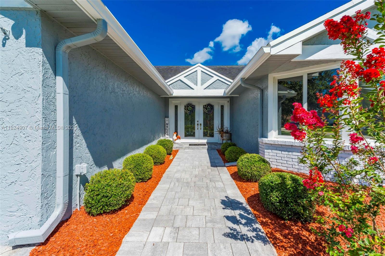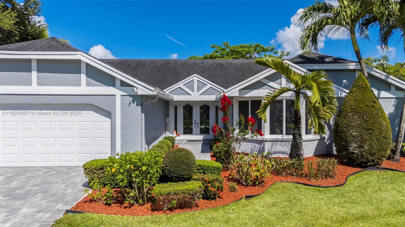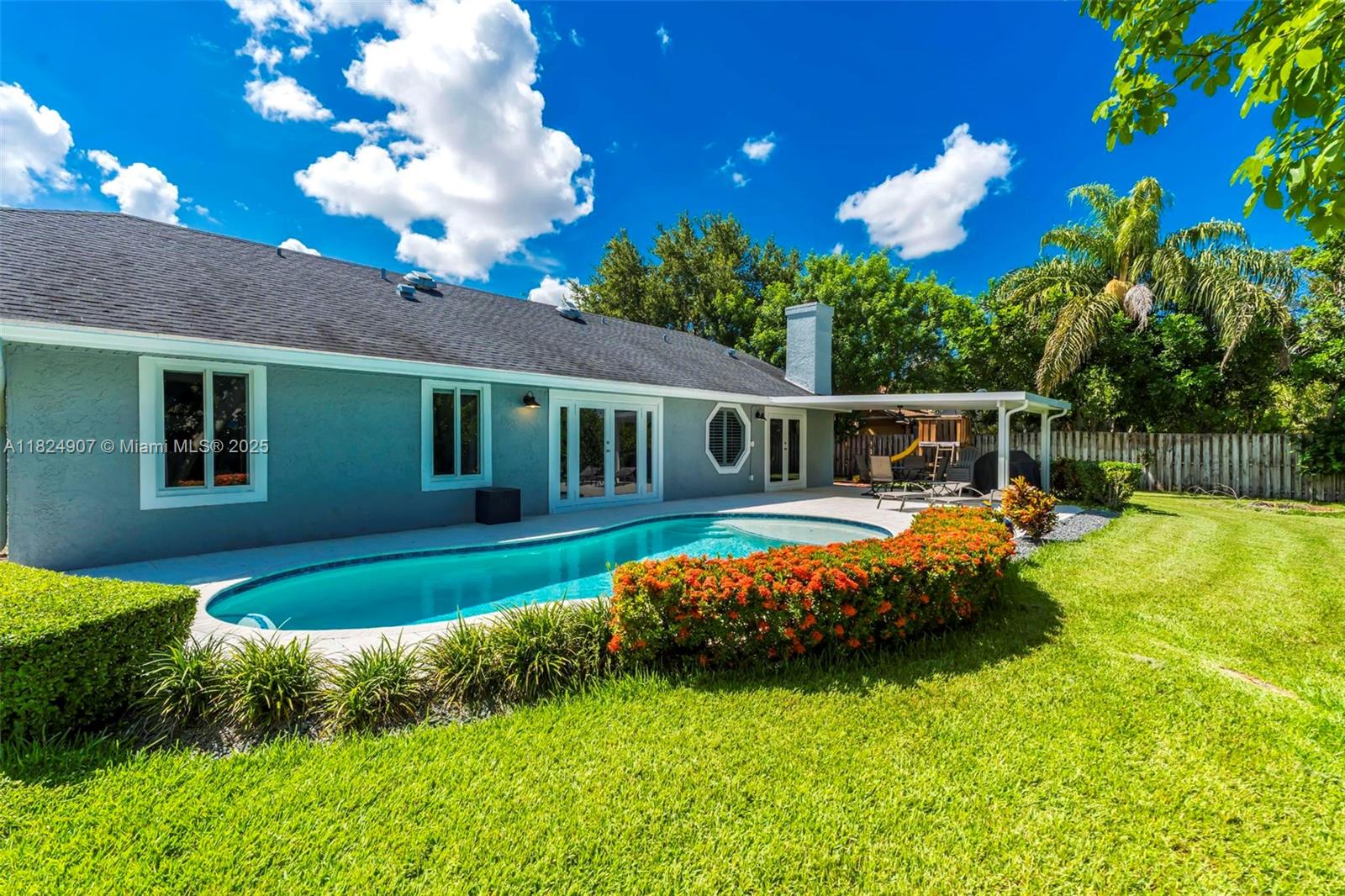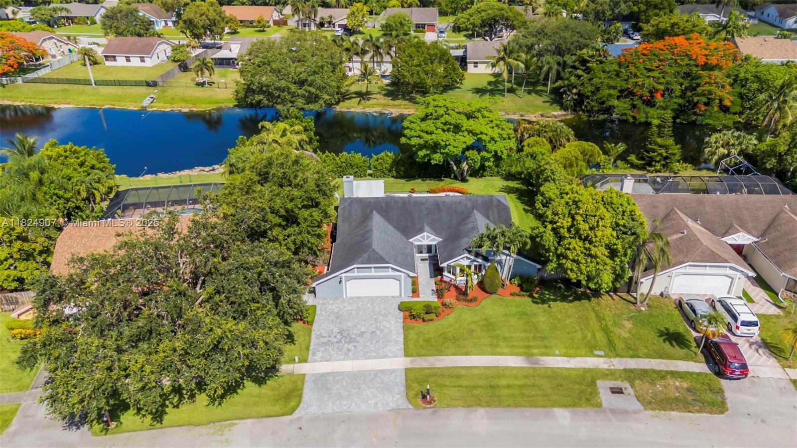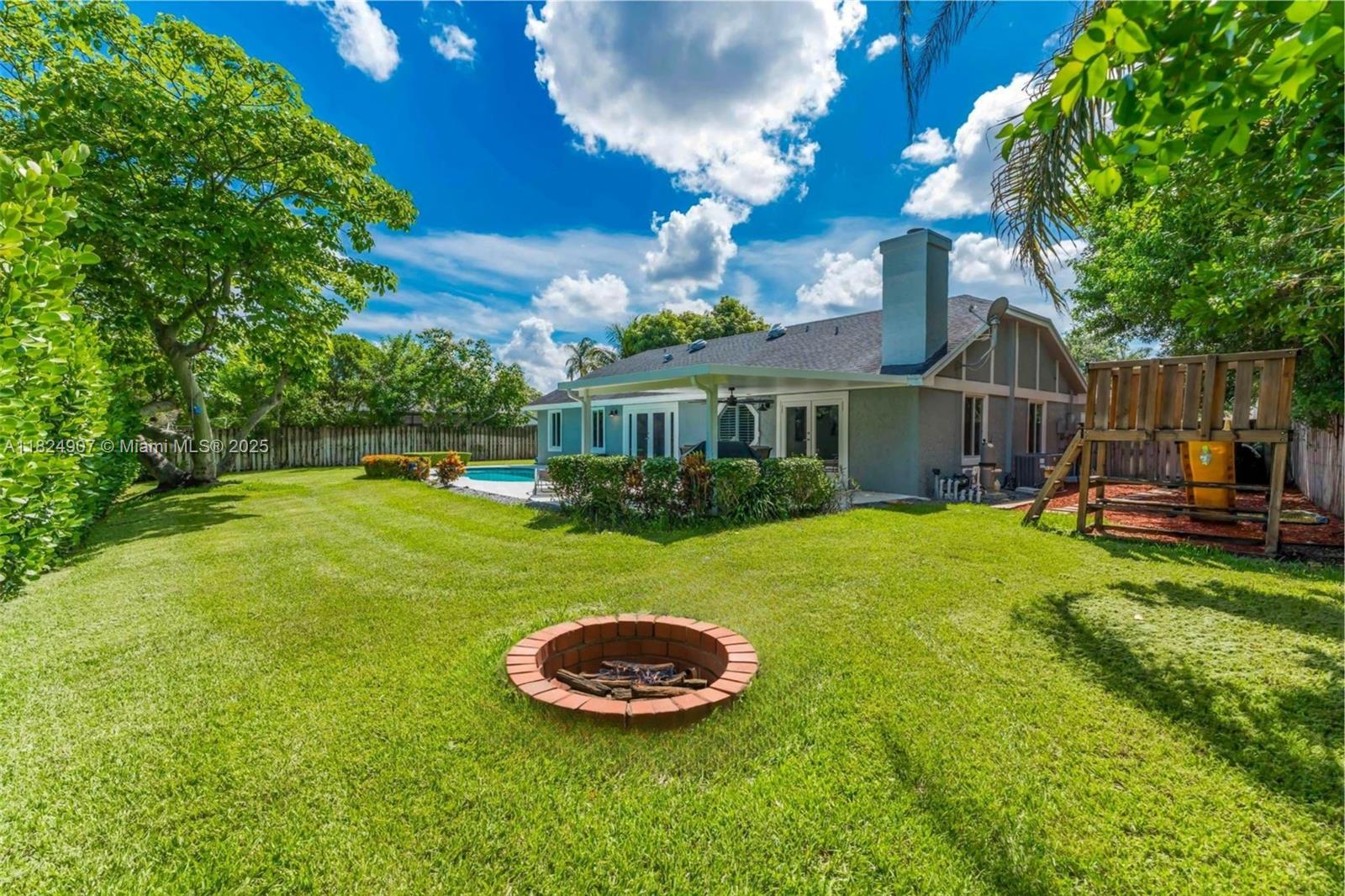 Tucked in the beautiful community of New River, this 3-bedroom, 2-bath stunner blends comfort with style. Soaring ceilings and large windows fill the home with lots of natural light. Warm laminate wood floors, a cozy fireplace, and an open layout make it perfect for everyday living and entertaining. The kitchen features granite counters, stainless steel appliances, and custom cabinets. The bathrooms have a clean, modern look, and each bedroom includes walk-in closets for plenty of storage. This waterfront home is a true retreat with lush landscaping creating a private & spacious oasis, a covered patio, and a sparkling pool(2020). Close to parks, shopping, dining, and top schools. With impact windows & AC 2024, this home checks all the boxes for comfort, convenience, & charm with a low HOA.