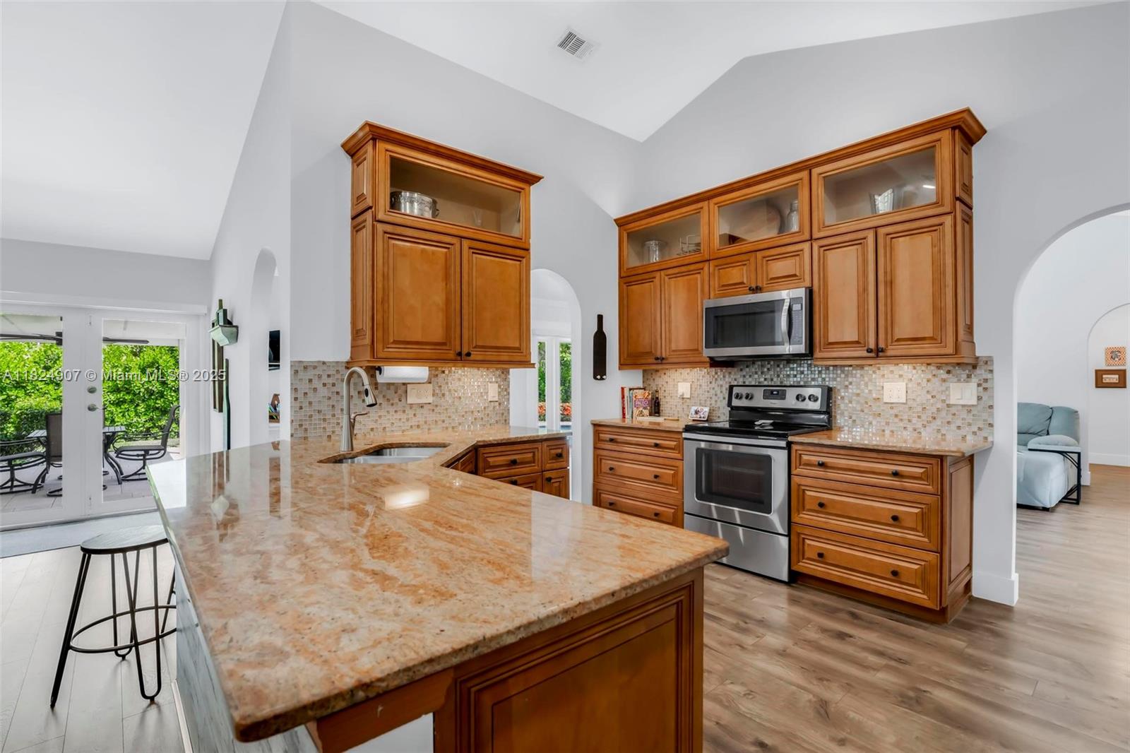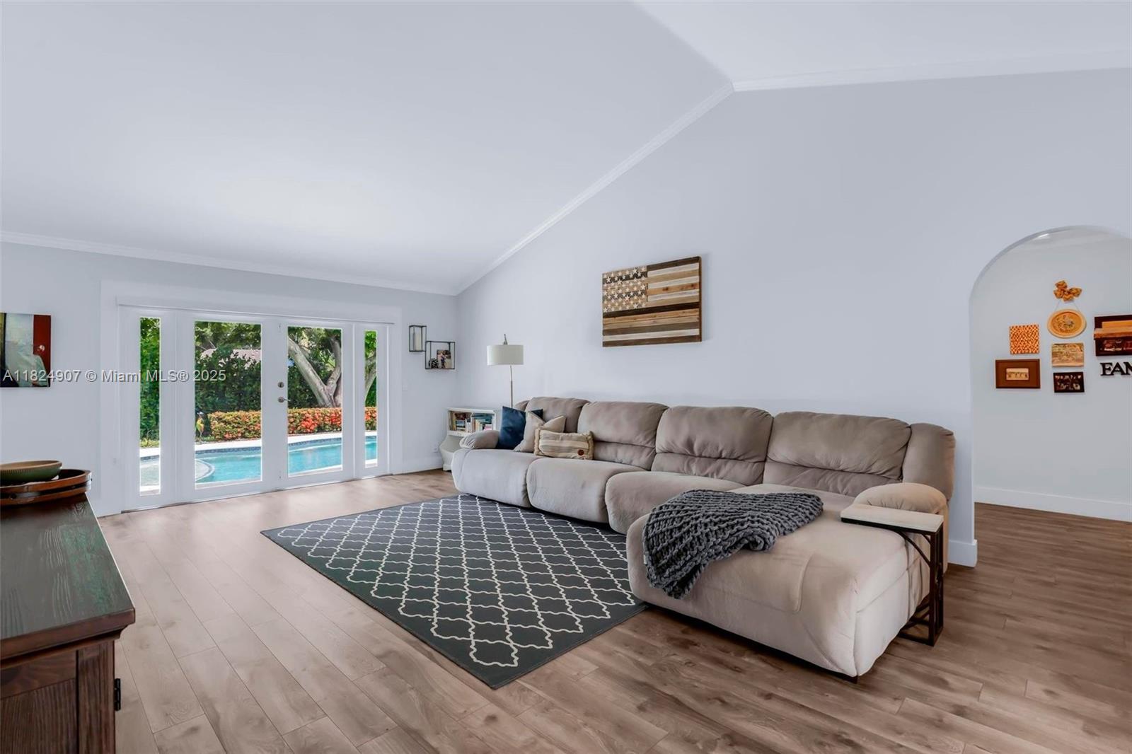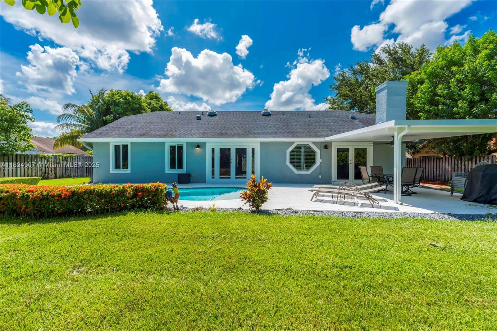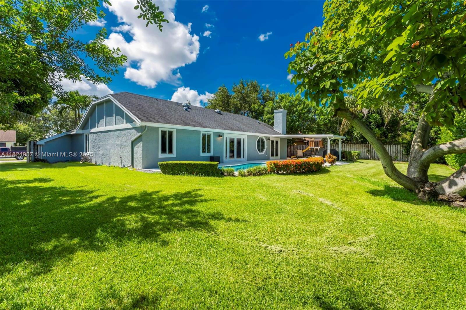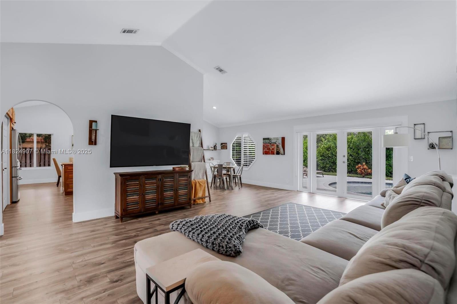 Tucked in the beautiful community of New River, this 3-bedroom, 2-bath stunner blends comfort with style. Soaring ceilings and large windows fill the home with lots of natural light. Warm laminate wood floors, a cozy fireplace, and an open layout make it perfect for everyday living and entertaining. The kitchen features granite counters, stainless steel appliances, and custom cabinets. The bathrooms have a clean, modern look, and each bedroom includes walk-in closets for plenty of storage. This waterfront home is a true retreat with lush landscaping creating a private & spacious oasis, a covered patio, and a sparkling pool(2020). Close to parks, shopping, dining, and top schools. With impact windows & AC 2024, this home checks all the boxes for comfort, convenience, & charm with a low HOA.