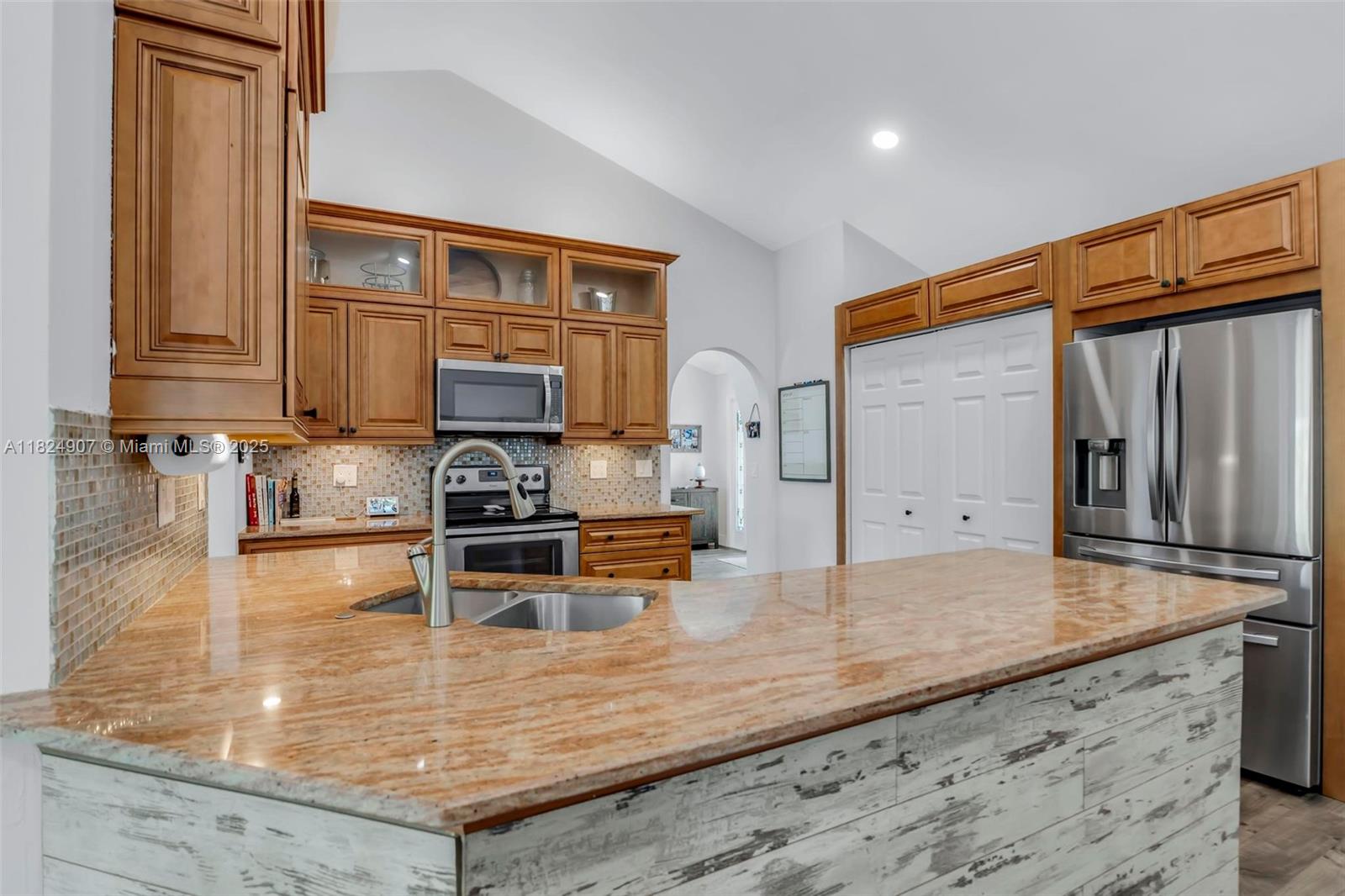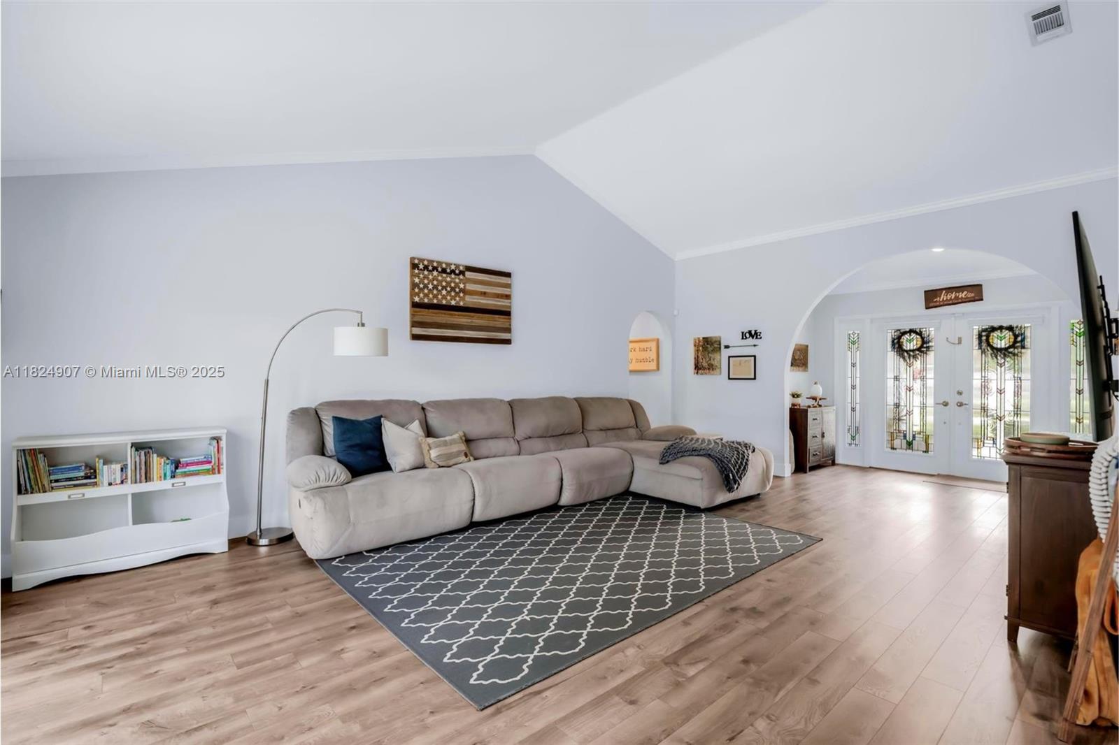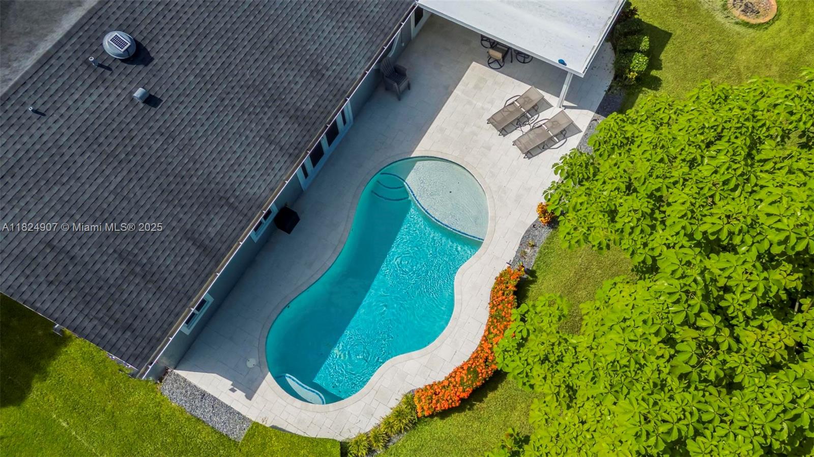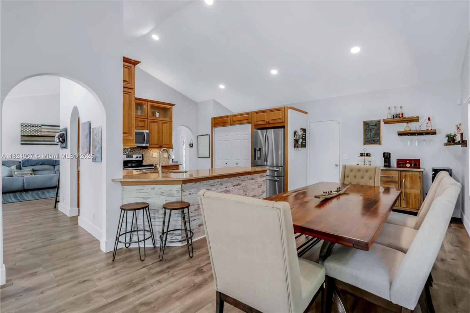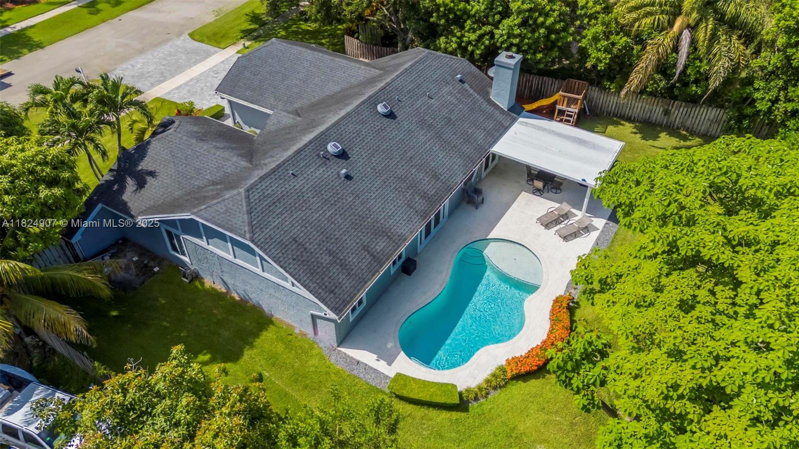 Tucked in the beautiful community of New River, this 3-bedroom, 2-bath stunner blends comfort with style. Soaring ceilings and large windows fill the home with lots of natural light. Warm laminate wood floors, a cozy fireplace, and an open layout make it perfect for everyday living and entertaining. The kitchen features granite counters, stainless steel appliances, and custom cabinets. The bathrooms have a clean, modern look, and each bedroom includes walk-in closets for plenty of storage. This waterfront home is a true retreat with lush landscaping creating a private & spacious oasis, a covered patio, and a sparkling pool(2020). Close to parks, shopping, dining, and top schools. With impact windows & AC 2024, this home checks all the boxes for comfort, convenience, & charm with a low HOA.