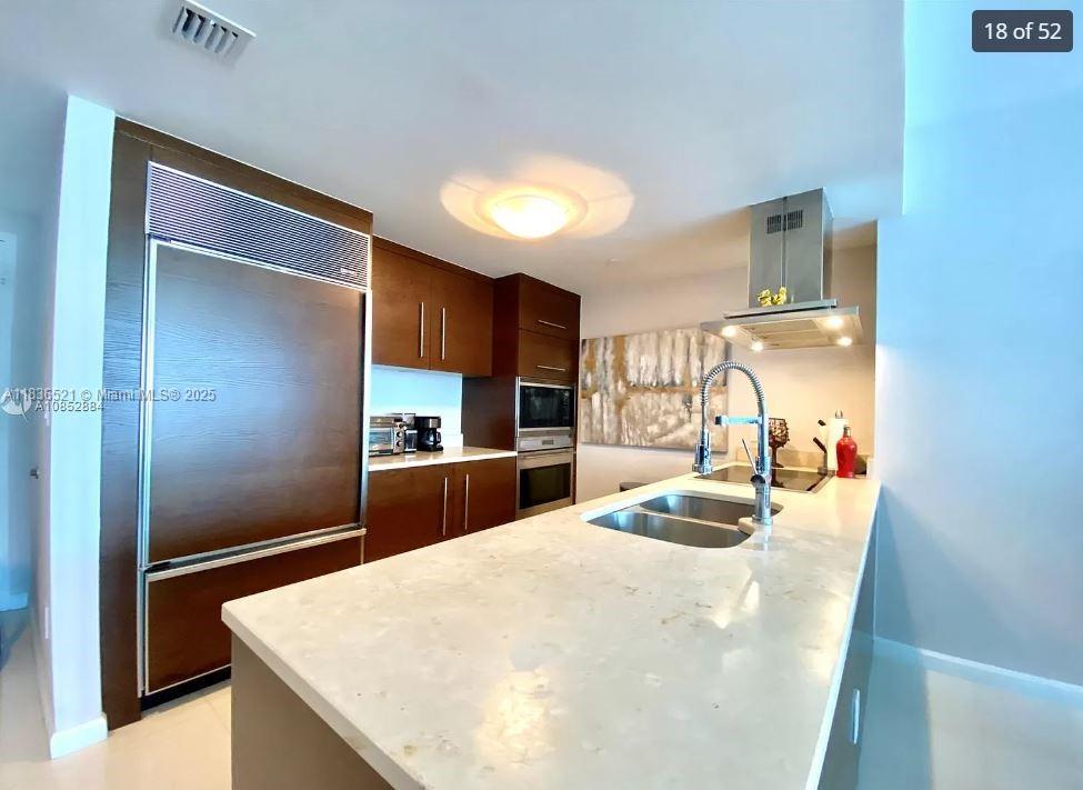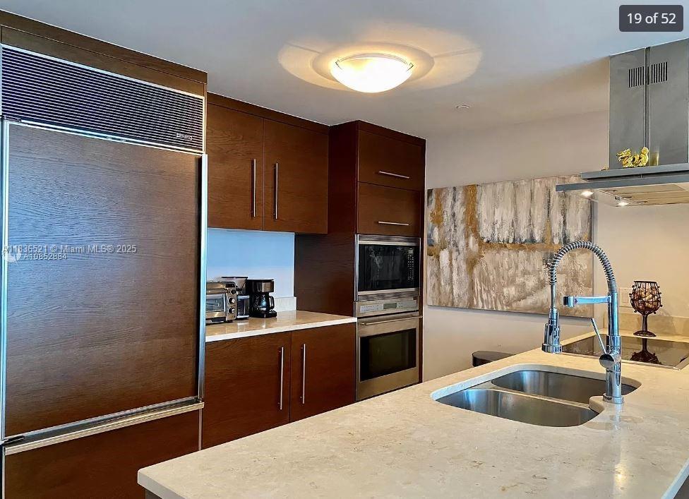 Spacious and bright 2 bed 2 bath+ Den with bay views facing SE towards Biscayne Bay. Den area can be used as office or 3rd bedroom. The unit offers high-end kitchen appliances by Wolf & Sub-Zero. New AC, washer and dryer installed within the past 2 years. The building offers resort style amenities including a state-of-the-art fitness center with classes, full-service spa, infinity pool overlooking Biscayne Bay, restaurants on site, 24-hr concierge, valet and much more. Centrally located in the heart of Brickell, walking distance to the best shopping, dining, and nightlife in Brickell.