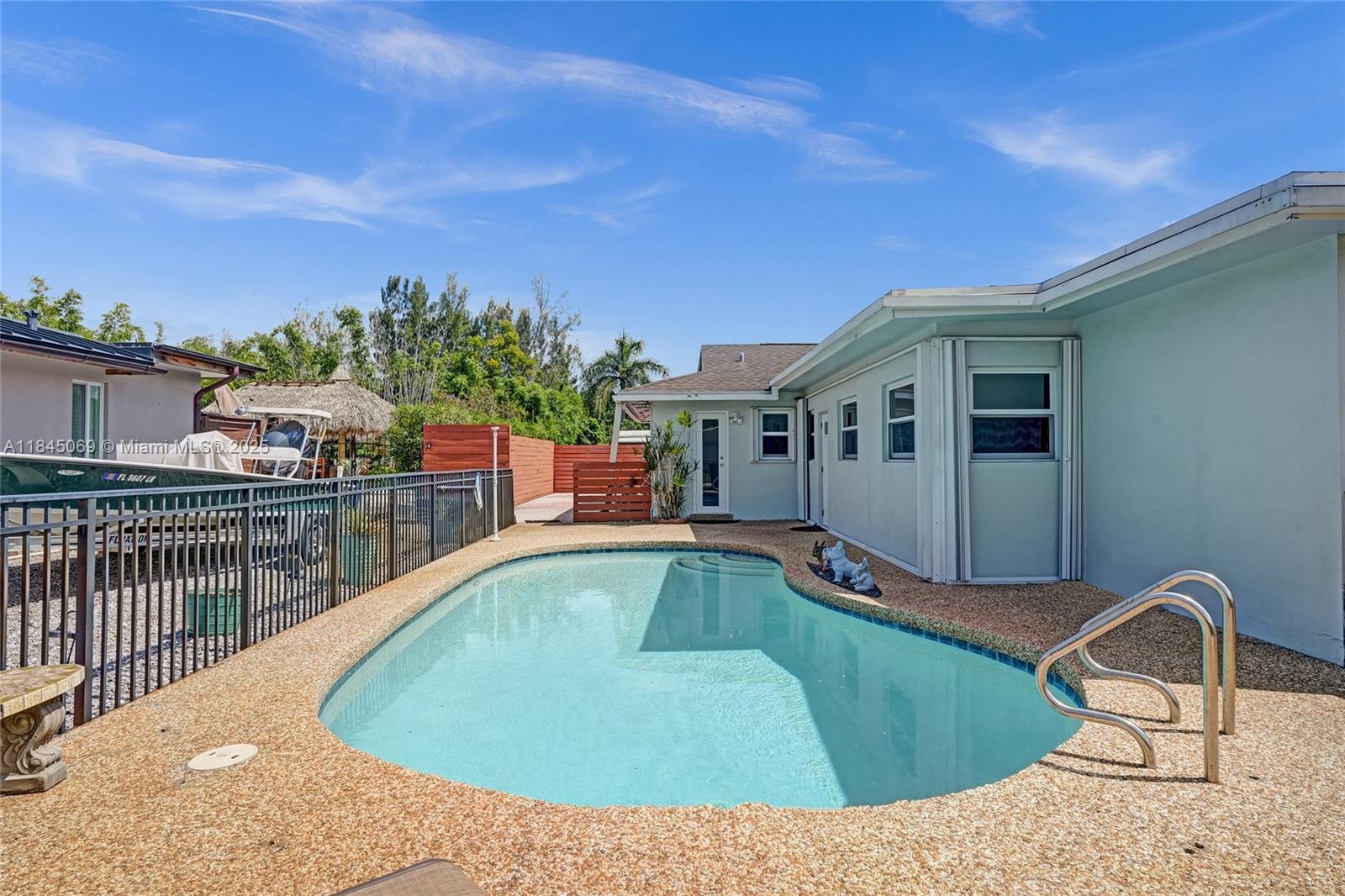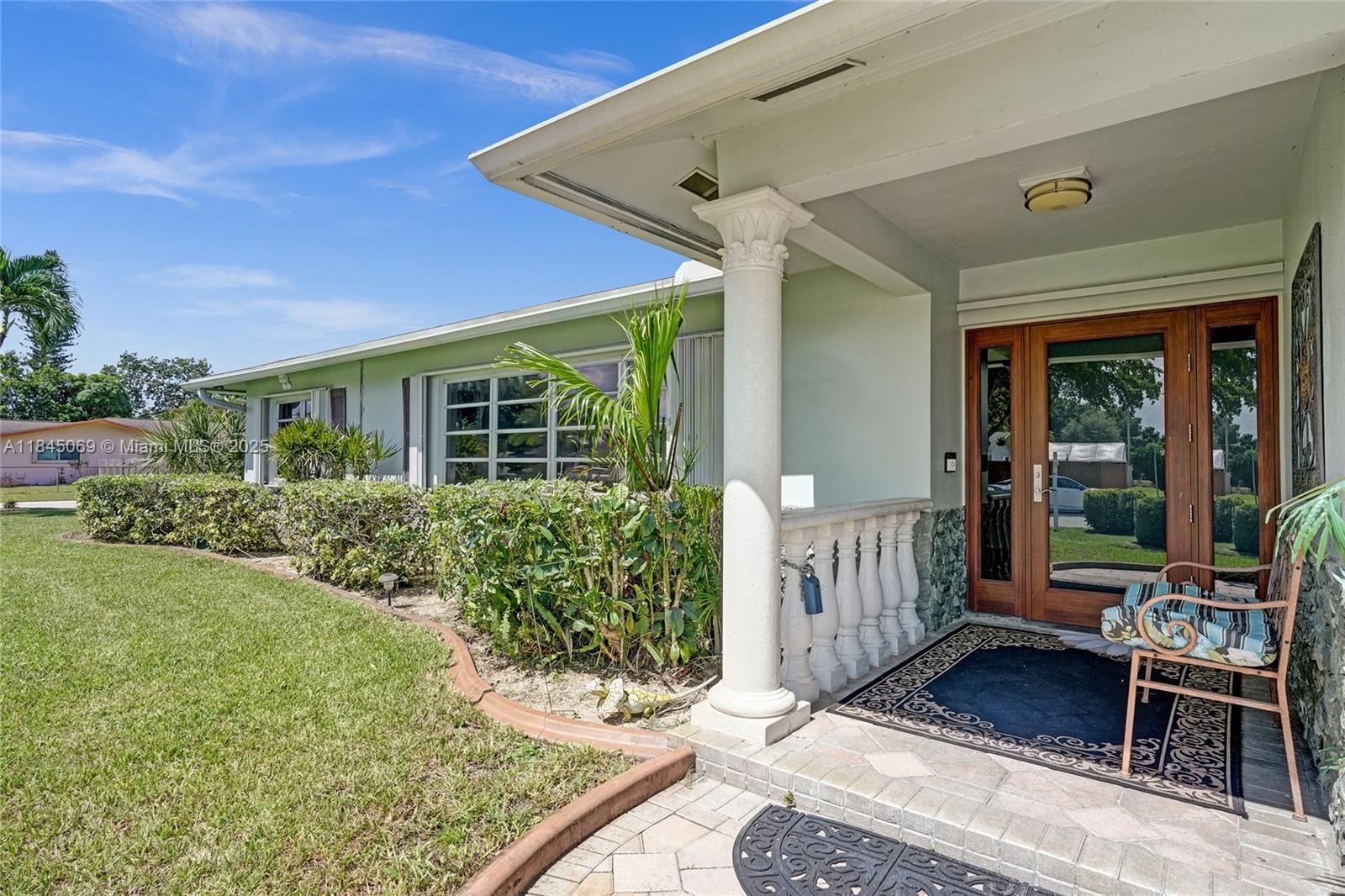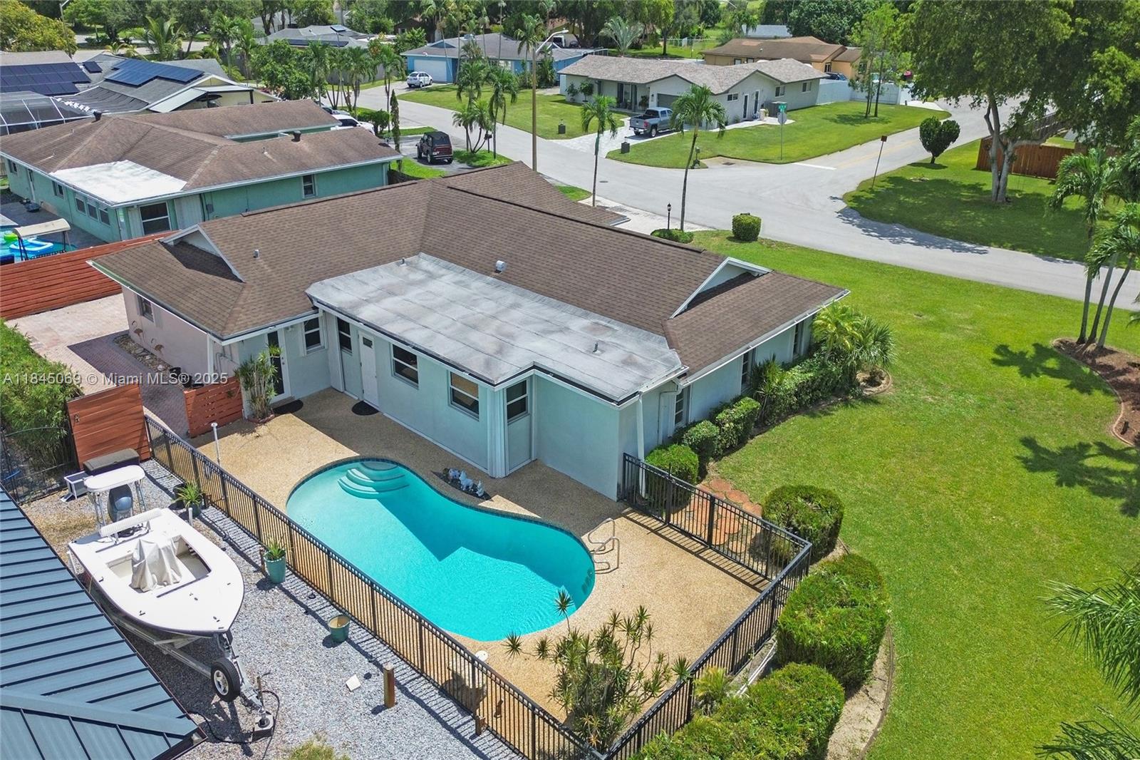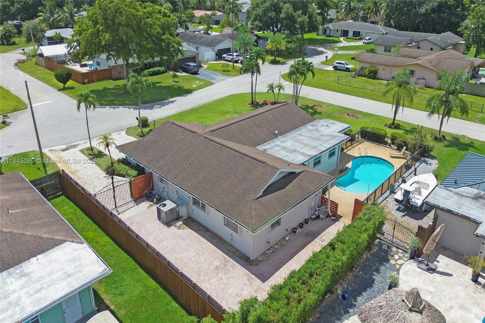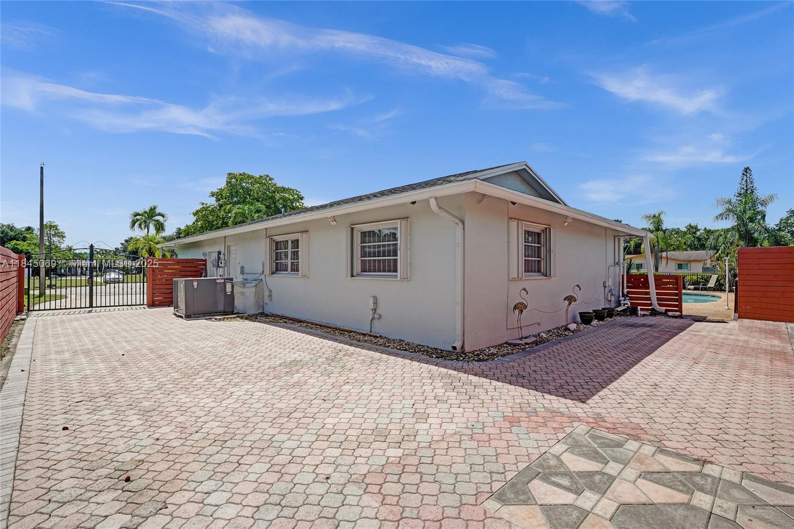This magnificent pool home boasts 3 spacious bedrooms, 2 full baths, and a convenient 2-car garage, all within a comfortable 2,426 sqft of living space. Situated on a large corner lot just over a quarter acre, this property truly stands out with its unparalleled capacity for all your recreational vehicles and toys! The extensive pavered driveway offers an abundance of secure parking for your RV, boat, trailer, jet skis, and more! Newer roof and A/C both installed within the last 5 years. For added security and peace of mind during storm season, the front entry door and cabana bath door are hurricane-rated, complemented by accordion shutters on all remaining windows and doors. Beyond the home's impressive features, you'll love the location in a super quiet and safe neighborhood.