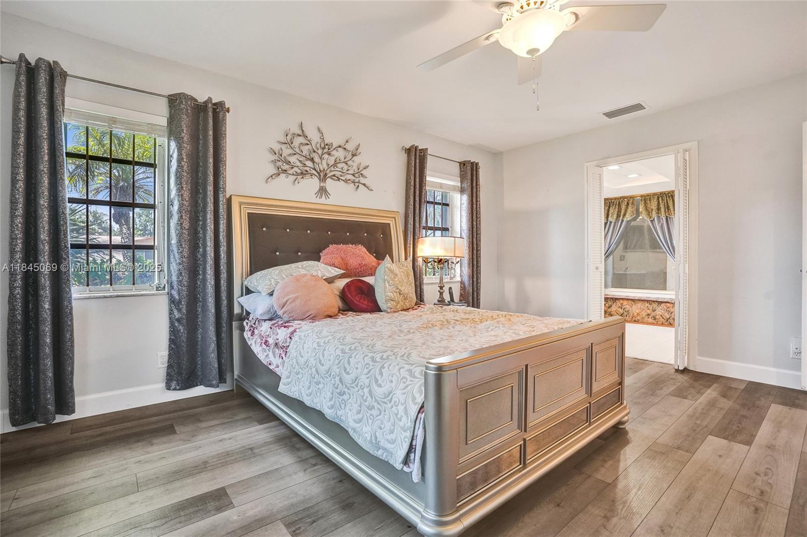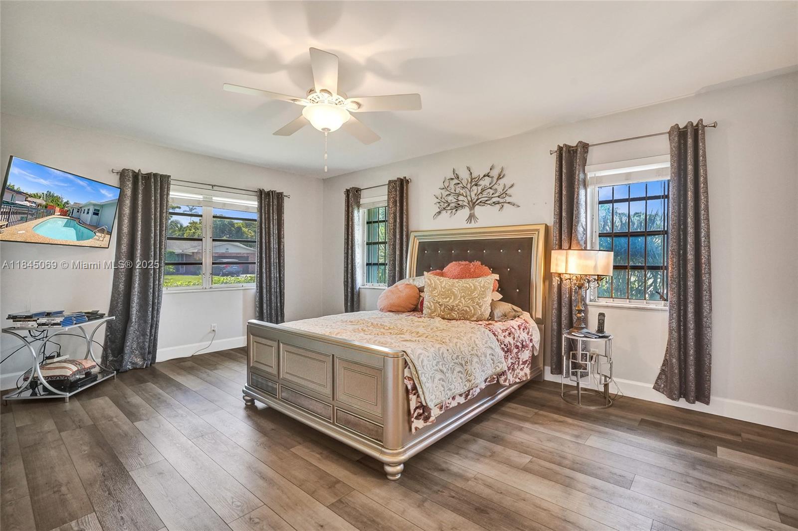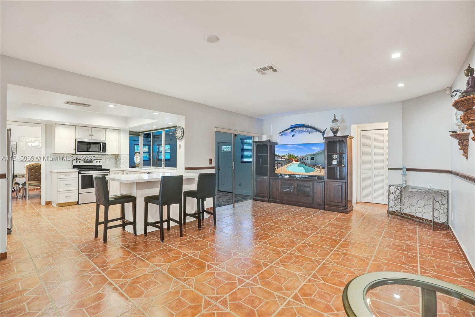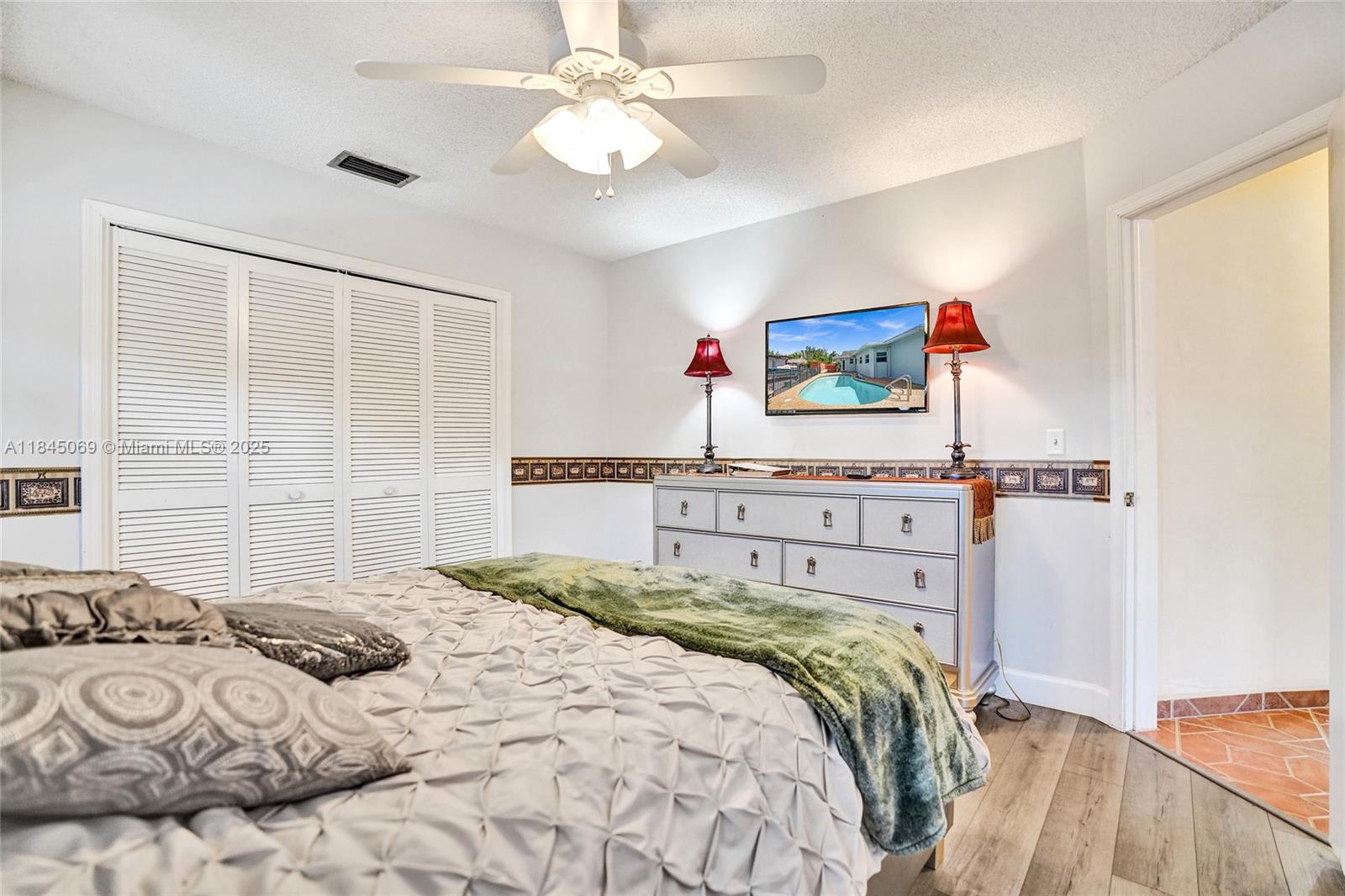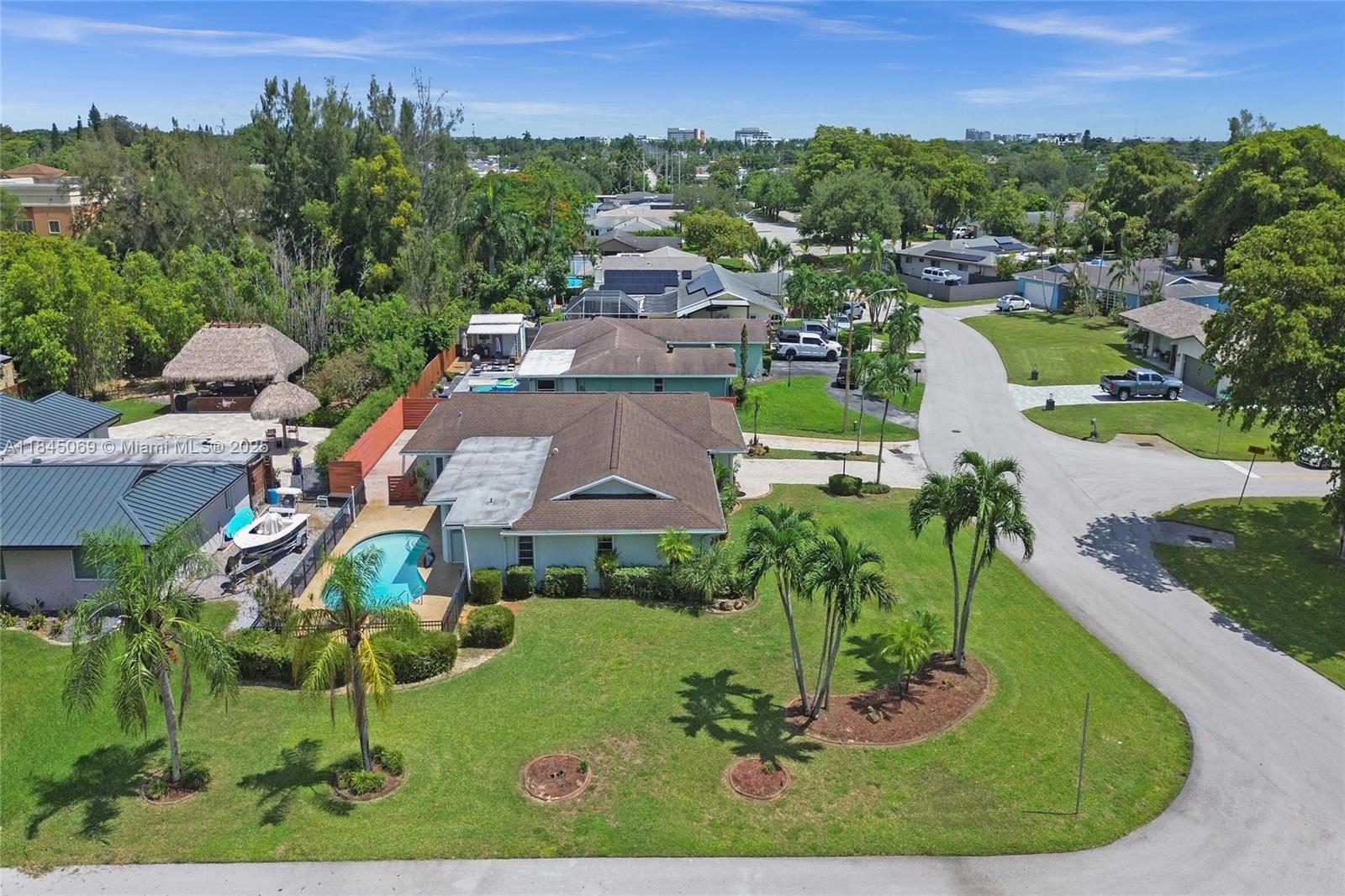 This magnificent pool home boasts 3 spacious bedrooms, 2 full baths, and a convenient 2-car garage, all within a comfortable 2,426 sqft of living space. Situated on a large corner lot just over a quarter acre, this property truly stands out with its unparalleled capacity for all your recreational vehicles and toys! The extensive pavered driveway offers an abundance of secure parking for your RV, boat, trailer, jet skis, and more! Newer roof and A/C both installed within the last 5 years. For added security and peace of mind during storm season, the front entry door and cabana bath door are hurricane-rated, complemented by accordion shutters on all remaining windows and doors. Beyond the home's impressive features, you'll love the location in a super quiet and safe neighborhood.