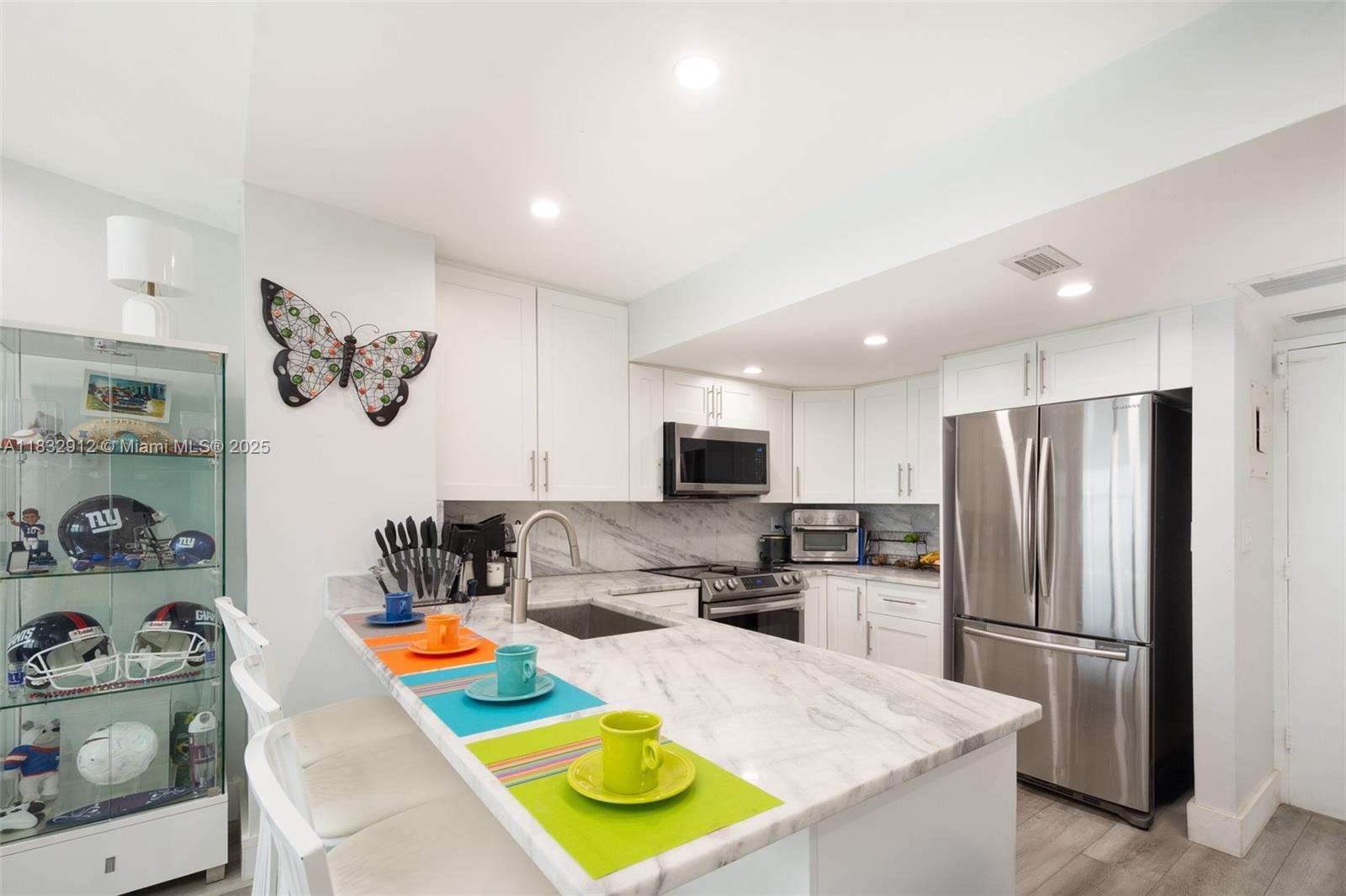Experience oceanfront living in this beautifully renovated 1-bedroom, 1.5-bath penthouse in Hallandale Beach. Enjoy stunning direct ocean views from your light-filled, open-concept living space featuring modern finishes, including impact windows, smooth vaulted ceilings, updated kitchen, bathrooms & flooring give this home a contemporary style throughout. This resort-style building offers a heated beachfront pool, gym, sauna, library, billiards, ping pong, and direct beach access. Additional features include 24/7 security and one assigned covered parking space. Ideal for year-round living or a seasonal escape, this condo offers incredible value in a prime coastal location.