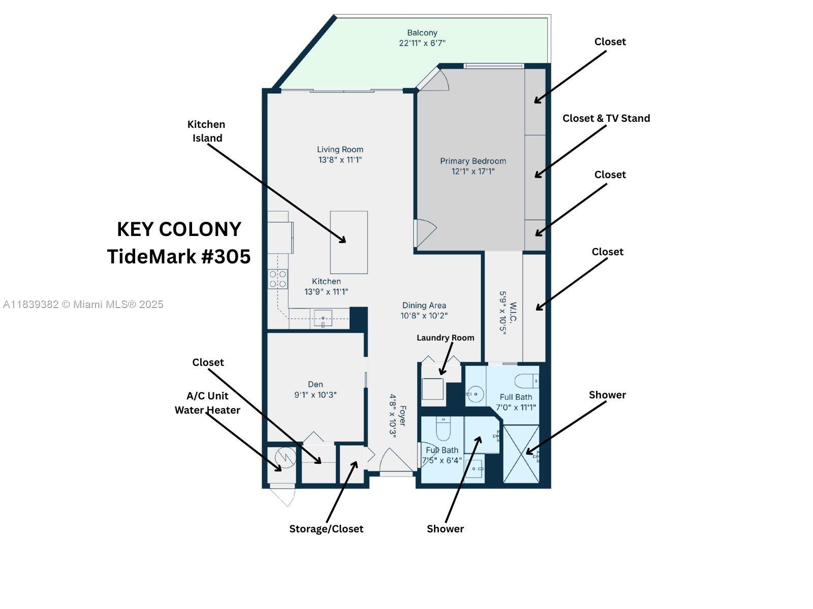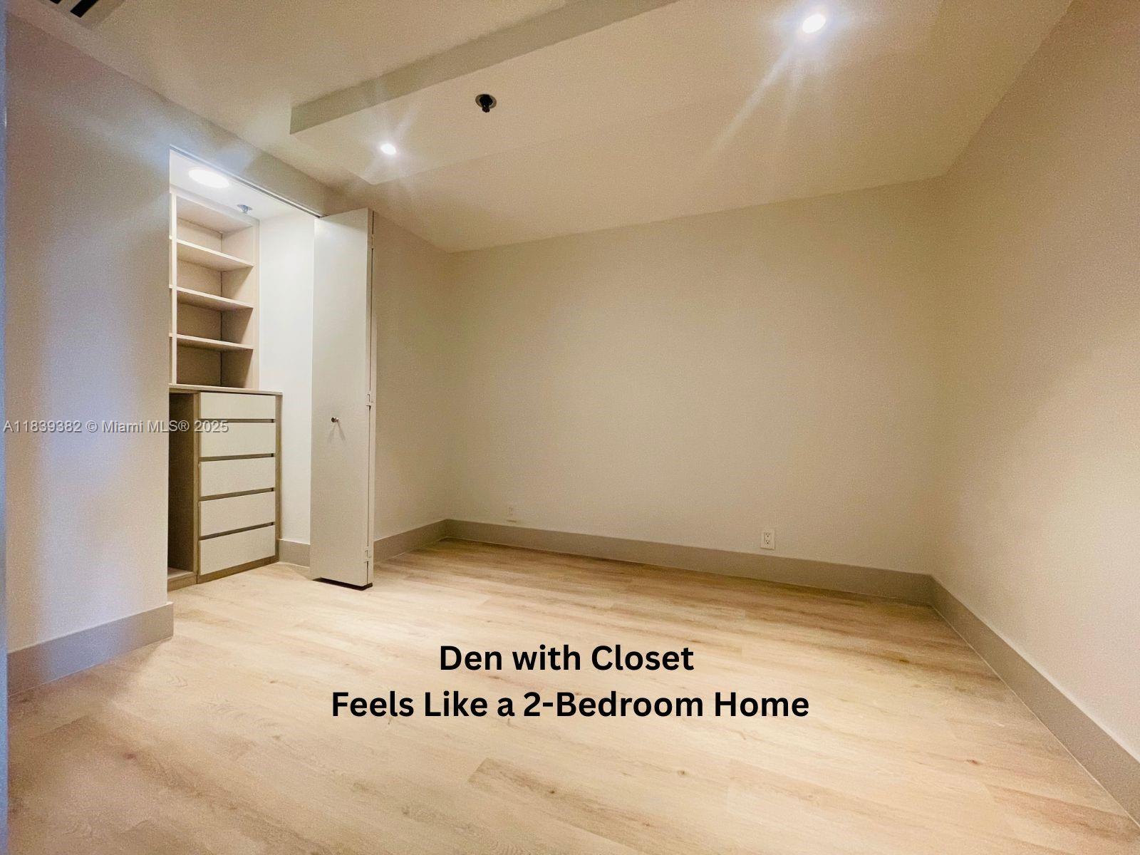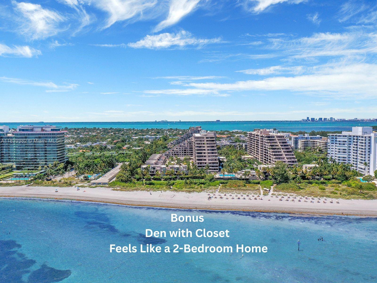 Step into this beautifully remodeled 1,059 sq ft condo in Key Biscayne that feels like a 2-bedroom home, featuring a spacious primary bedroom, a versatile den with closet, and two full bathrooms. Fully remodeled with permits, including the den and second bathroom, this thoughtfully upgraded unit offers flexibility for a guest room, home office, or nursery. Additional highlights include in-unit laundry and one assigned parking space. Located in the sought-after Key Colony, Tidemark, enjoy a resort-style lifestyle with direct beach access, multiple pools, a fully equipped gym, numerous tennis courts, and beautifully landscaped grounds filled with nature. Some photos have been virtually staged.