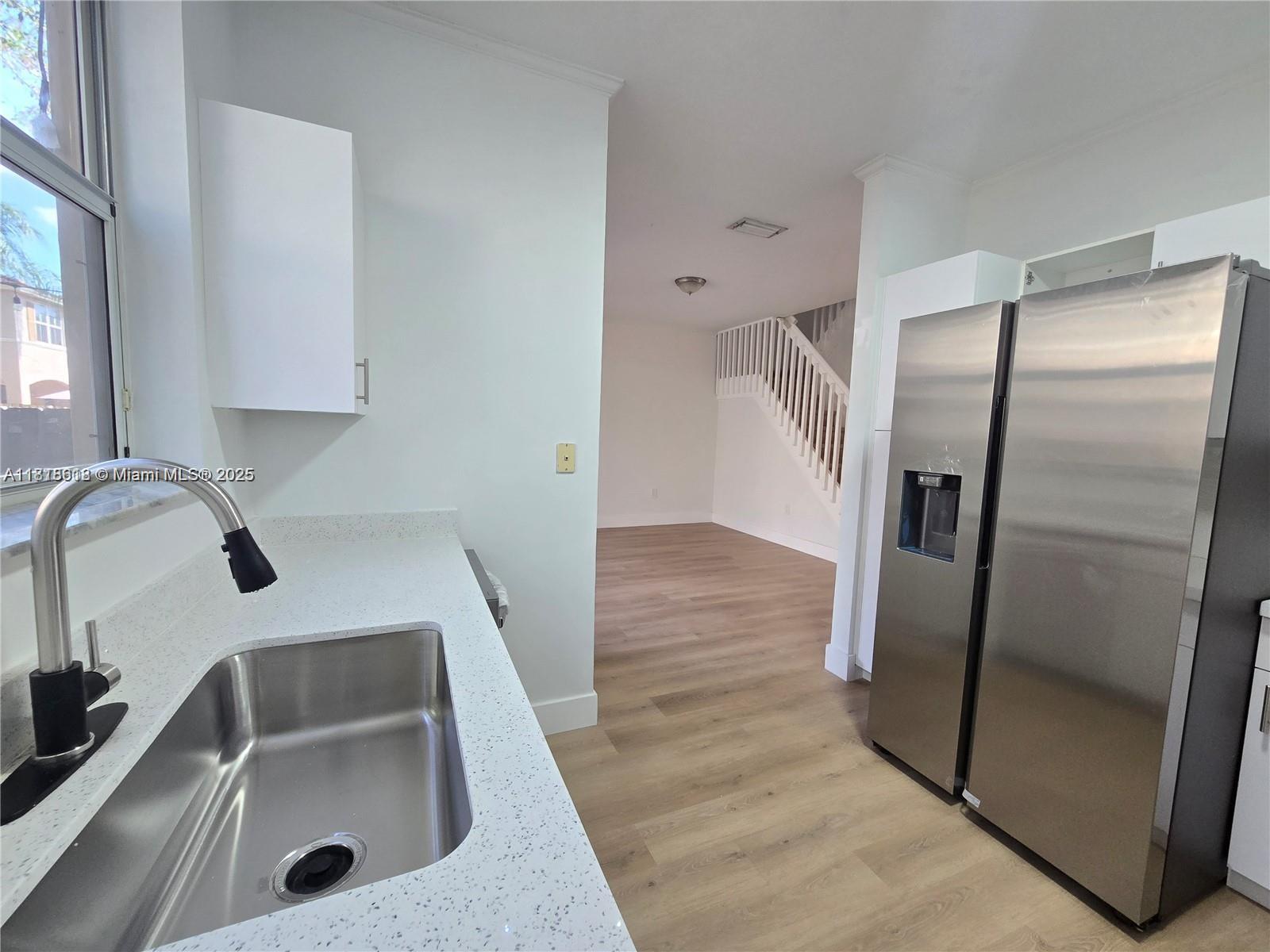 Fully remodeled, move-in-ready townhouse in the quiet Riverwalk community. Featuring three beds and 2.5 baths, this home offers a modern and inviting living space with brand-new waterproof flooring throughout. The first floor includes a bright and spacious layout, an updated kitchen with new appliances and a quartz countertop, and a versatile living area that leads to the backyard—perfect for relaxing or entertaining. A car garage and a convenient half bath complete the main level. Upstairs, the master suite features a walk-in closet, while two additional spacious bedrooms share a Jack-and-Jill bath. Ideally located in front of the community pool and near a playground, this move-in-ready home offers easy access to Weston, major highways, shopping, parks, and top-rated Broward schools.