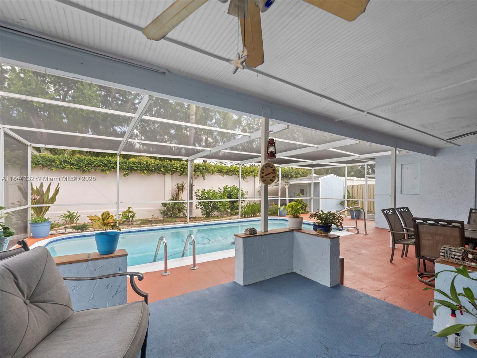 Beautifully maintained 2-bedroom, 2-bathroom home with private pool and 1-car garage in the heart of sunrise. This charming residence offers a spacious layout, updated bathrooms, and a bright kitchen overlooking the backyard. Enjoy indoor-outdoor living with a screened-in pool area—perfect for entertaining or relaxing. Tile floors throughout, fresh paint, and pride of ownership are evident in every corner. Conveniently located near shopping, dining, parks, and top-rated schools. Move-in ready and easy to show!