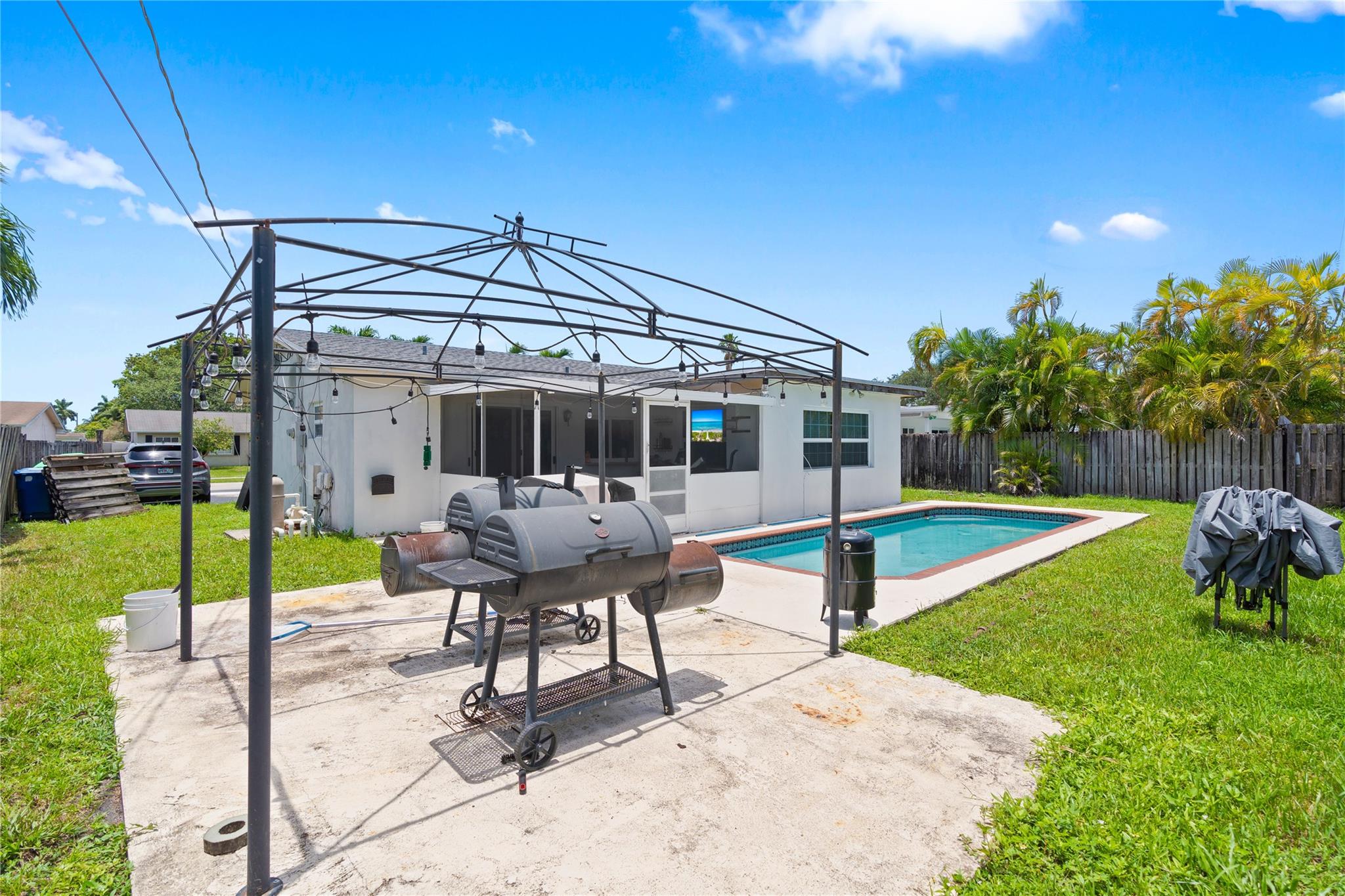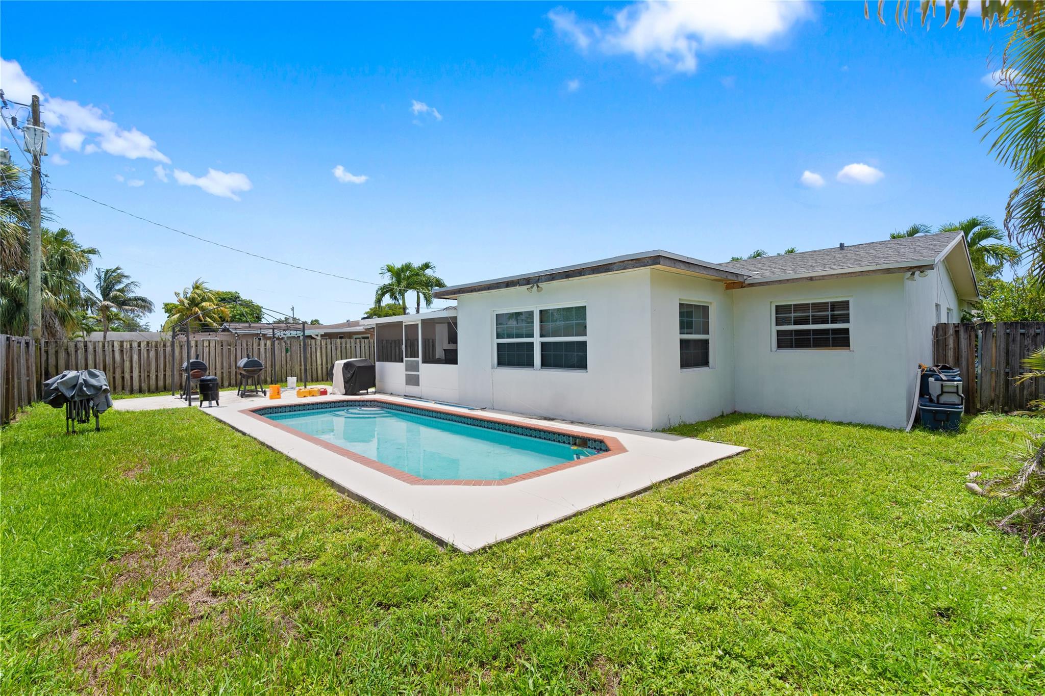 Beautifully maintained 3-bedroom, 2-bath single-family home with private pool in the heart of Sunrise! This charming home features a spacious layout with abundant natural light, impact windows, and tile flooring throughout. The upgraded kitchen and baths offer modern touches while the screened-in patio and large fenced yard with pool create the perfect space for entertaining or relaxing. No HOA, plenty of room for parking, and conveniently located near shops, schools, and highways. A true move-in ready gem—perfect home