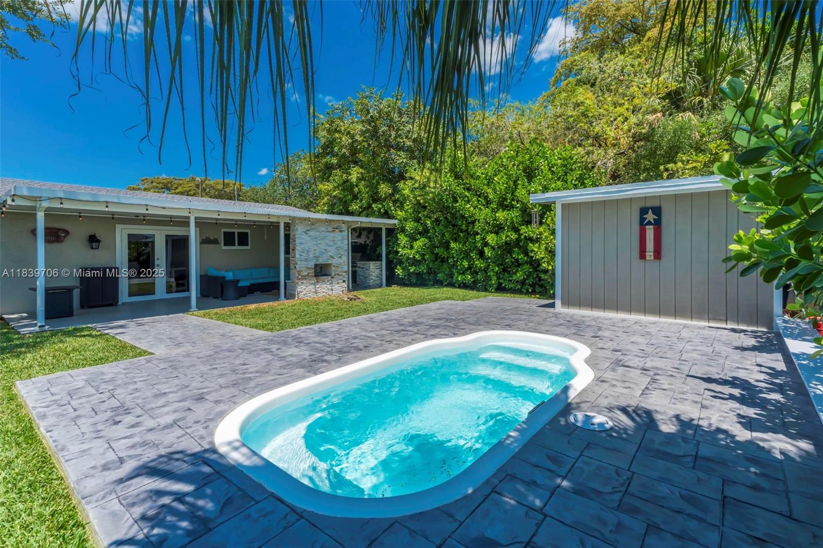 Beautifully updated 2-bedroom, 1.5-bathroom home in Sunrise featuring a brand-new roof, impact windows, and stunning landscaping that enhances its curb appeal. Inside, you’ll find elegant marble floors throughout, an updated kitchen with a gas stove and brand-new stainless steel appliances, and modernized bathrooms with sleek finishes. The home also includes a brand-new gas water heater, adding efficiency and peace of mind. Step outside to your private oasis, complete with a soothing soaker pool, a built-in BBQ area with a cozy fireplace, and a spacious outdoor shed for extra storage. This move-in-ready home offers the perfect blend of style, comfort, and outdoor living—ideally located near shopping, dining, and top-rated schools in a desirable Sunrise neighborhood.