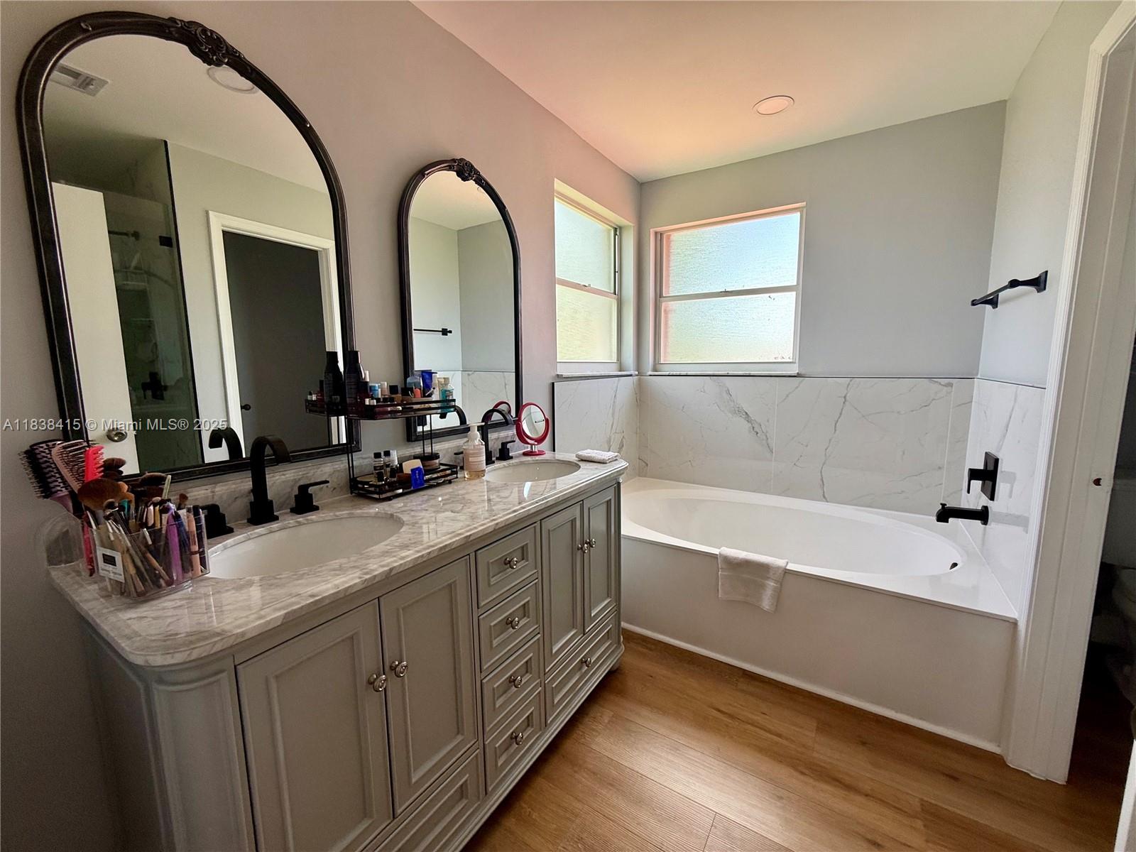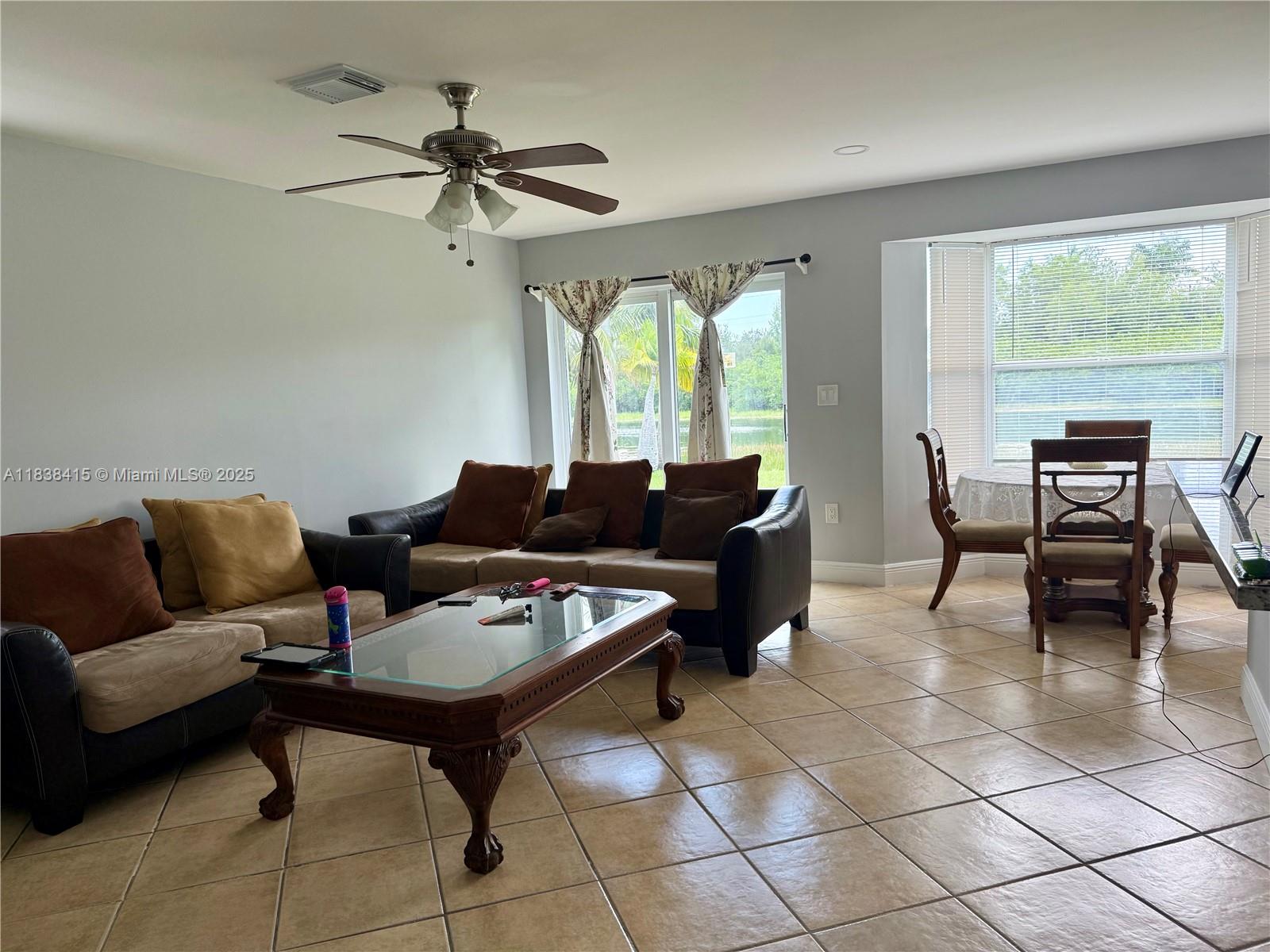 Well-maintained 4-bed, 3-bath waterfront home with newer roof, updated kitchen and baths, and new upstairs flooring (2024). Soaring ceilings in the living and dining areas create an airy, open feel. The kitchen offers granite counters, a large island, pantry, and eat-in area with impact sliding doors leading to the backyard and spacious family room with beautiful water views. One bedroom and a full bath downstairs is perfect for guests or multi-generational living. Laundry room provides ample storage. Accordion shutters upstairs and panel shutters downstairs offer storm protection. Enjoy the community pool, clubhouse, playground, and beach volleyball--amenities that make every day feel like a getaway.