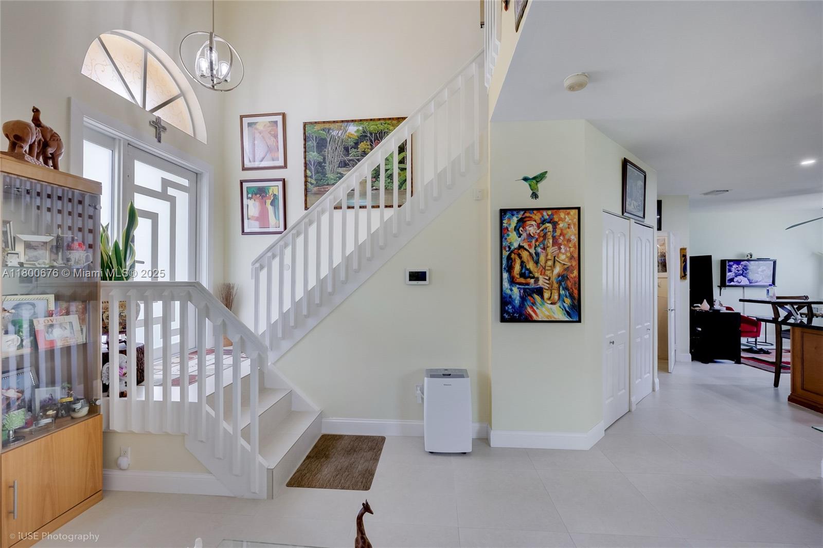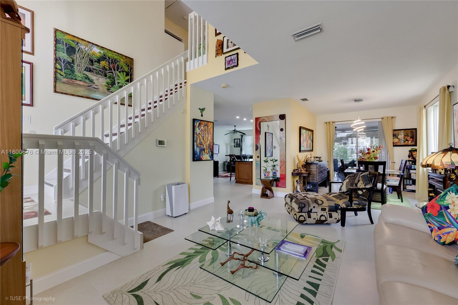 Beautiful Lakefront Home. Fully upgraded 3-bedroom 2.5-bath two-story home on a serene lake with stunning views. This home features new impact windows and doors, screened-in patio,brand new roof, A/C, water heater, interior paint and modern lighting throughout. Enjoy elegant new tile flooring on the main level and rich wood flooring upstairs. All bathrooms have been stylishly remodeled. The property boasts lush, professionally designed landscaping with mature trees, fruit trees, vibrant plants and a charming herb garden. Located in a sought-after community with a top rated elementary school, scenic walking paths, swimming pools, tennis court and baseball field. Conveniately close to shopping malls, dining, supermarkets, movie theater and more. A perfect blend of comfort,style and location.