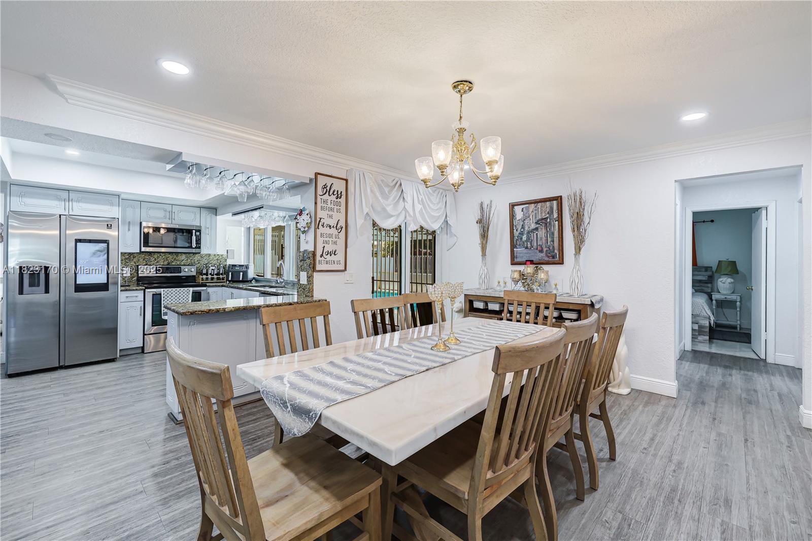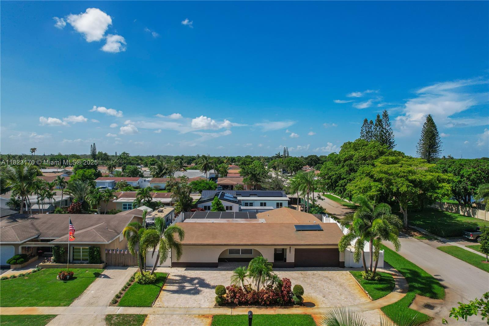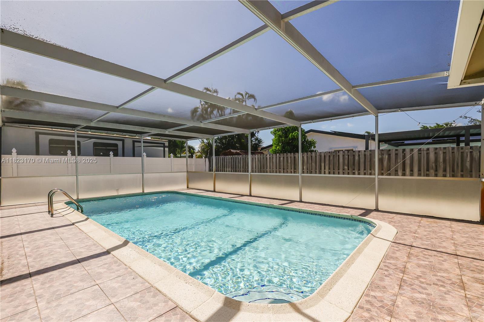 Updated & beautifully designed 4 bedroom, 2 bathroom move in ready SFH in Pembroke Pines. Home is all on one level with lots of privacy, spacious open floor plan, updated kitchen, appliances included. Large outdoor patio featuring a covered pool is great for entertaining. Fenced in yard with shed. 2 car garage. BRAND NEW ROOF IN 2025 WILL BE COMPLETED BY CLOSING. Close to downtown Hollywood, Hollywood Beach and shopping. Must see property!