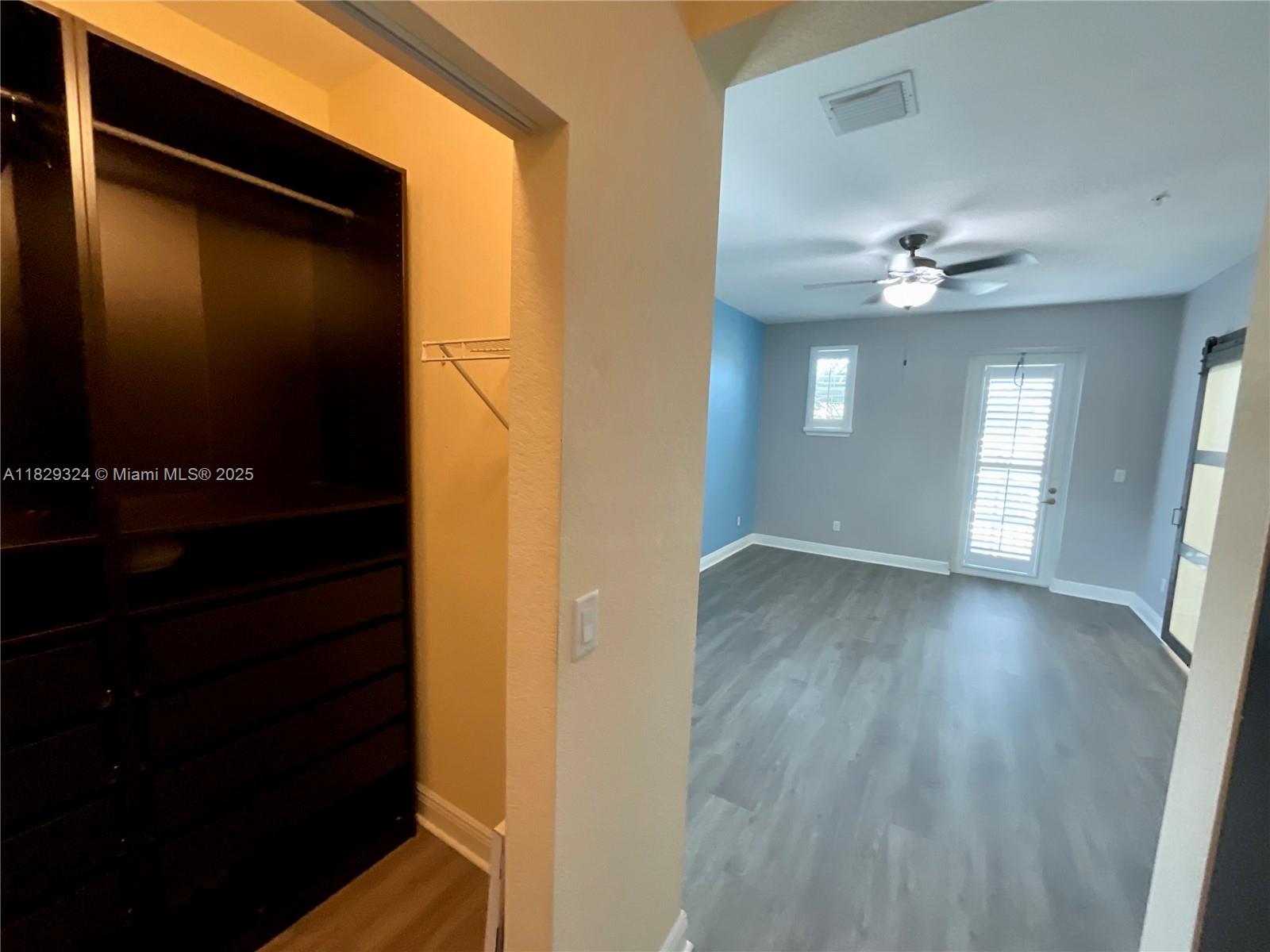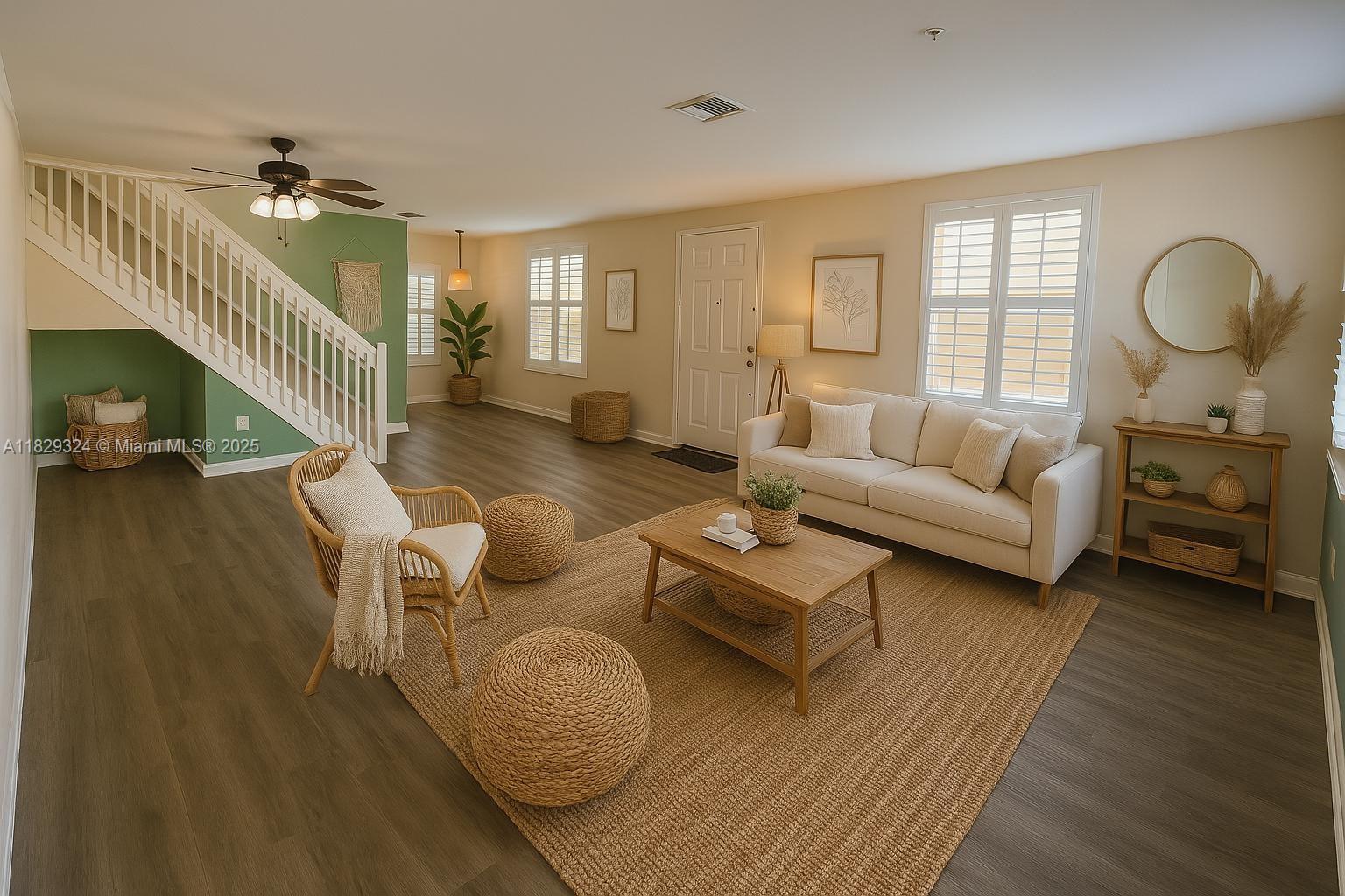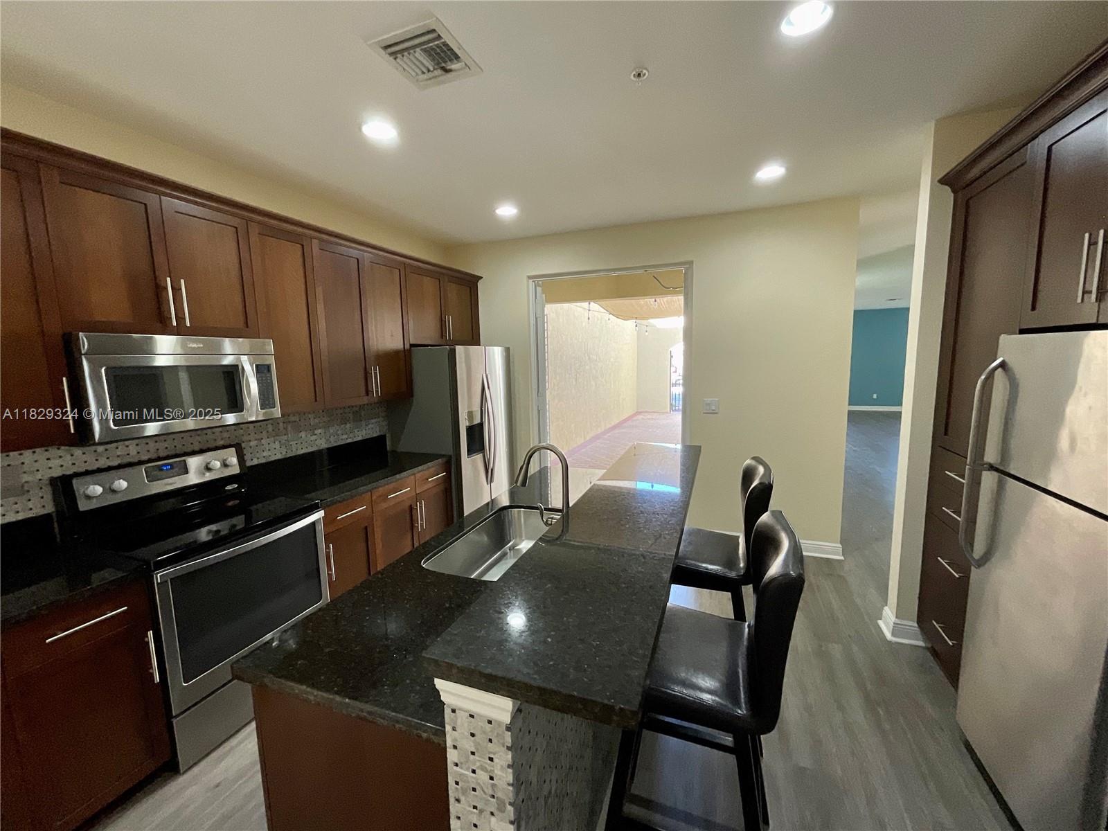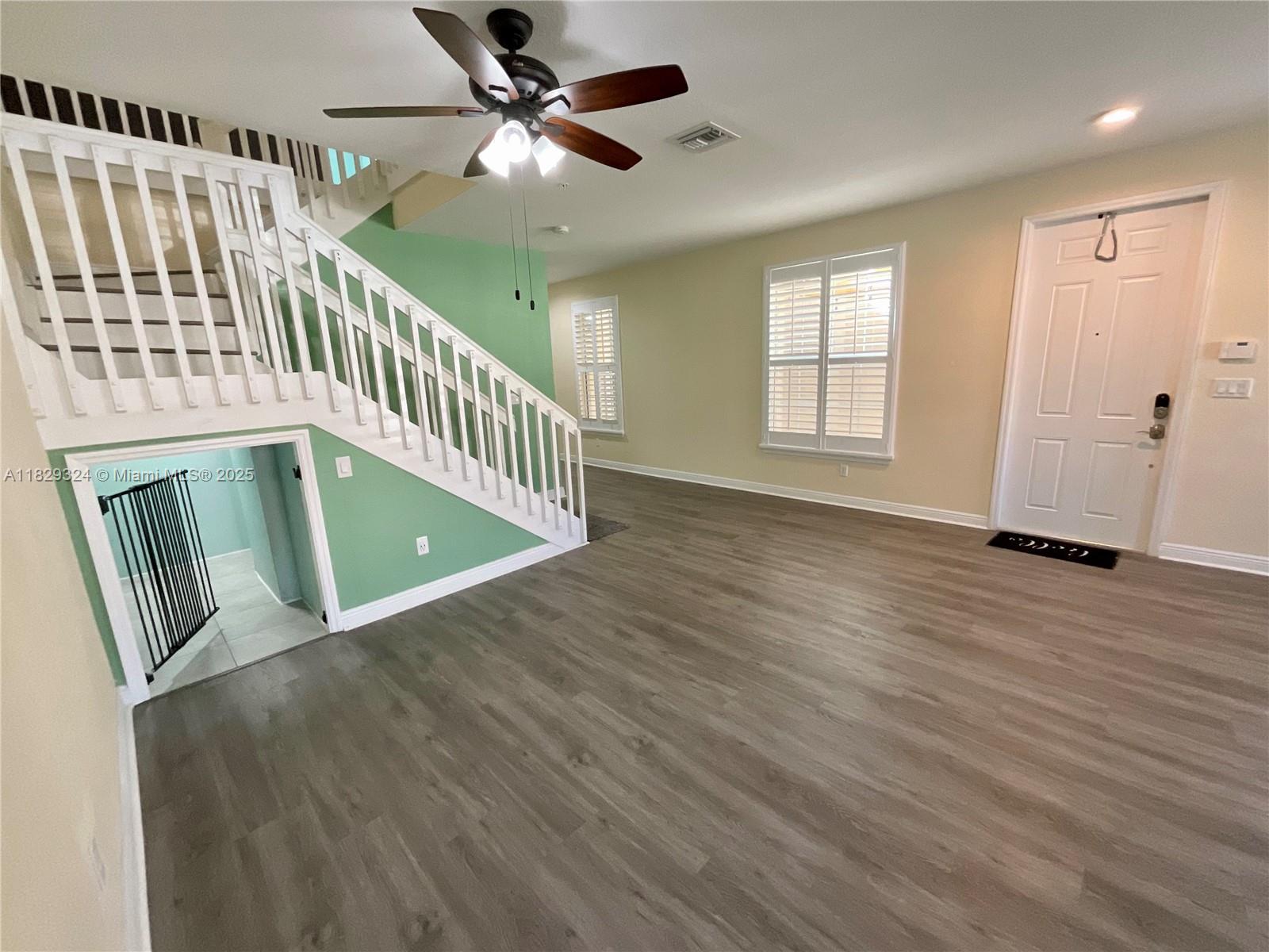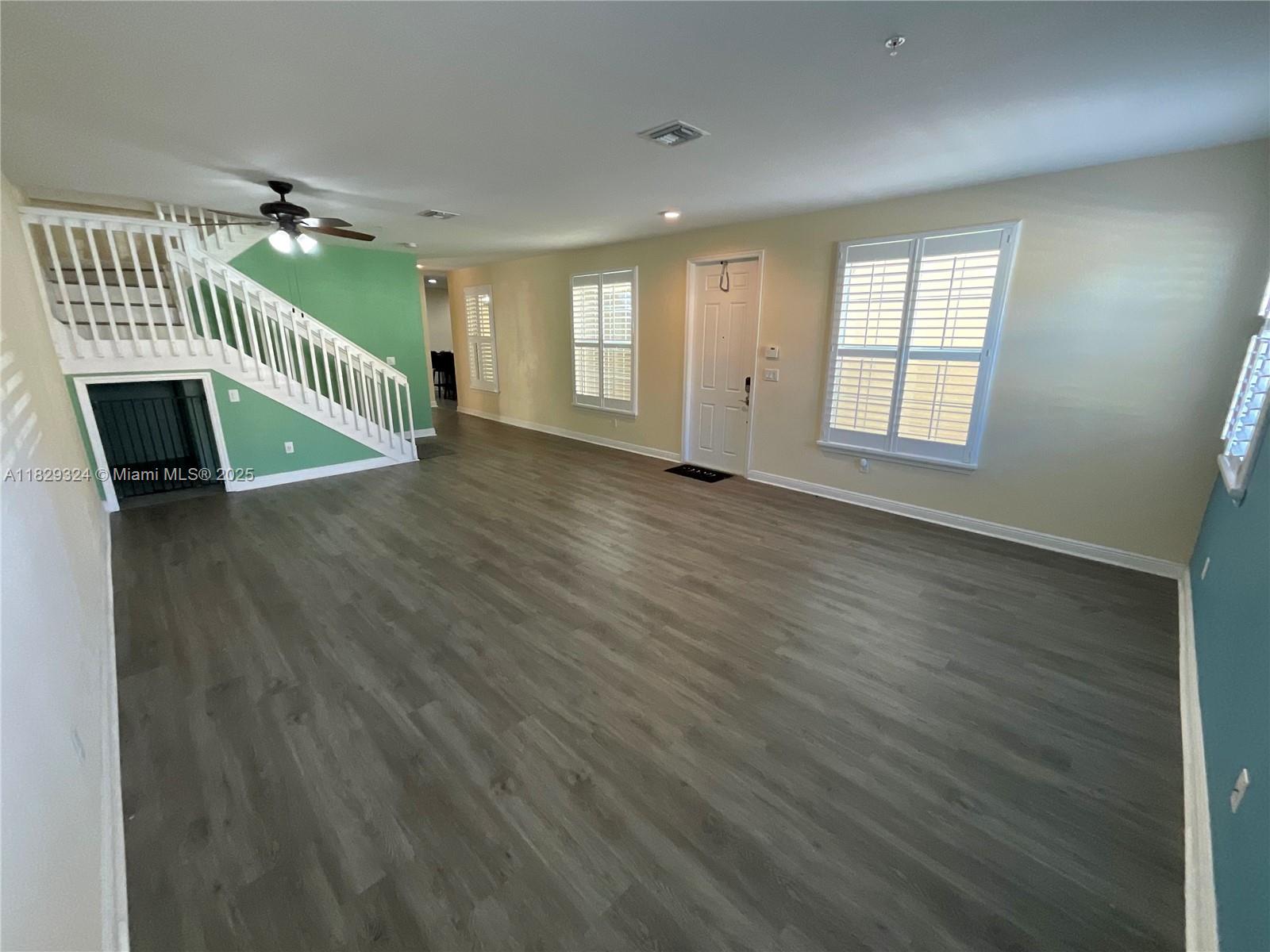4 bedrooms, 3 bathrooms with a loft, desired location, a place to call home. This spacious home boasts, hurricane impact glass windows /doors and a custom kitchen with Granite counter tops, stainless steel appliances, and extra cabinets. Plantation shutters on all windows and so much more. Murphy bed included in guest room/office downstairs. Many amenities including a fitness center and community pool. Good proximity to highways, restaurants and shopping. Pet-friendly community.