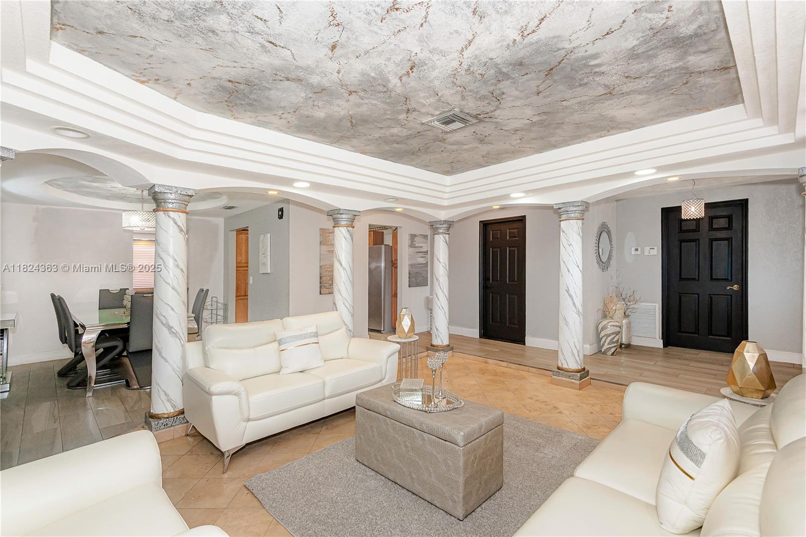 Beautiful Pool Home 3-bed, 2-bath with an extra room making this a 4th bedroom home. The home is in the desirable Pembroke Lakes area with No HOA. Home features tile floors, stainless steel appliances, and recently remodeled bathrooms. Home also features beautiful Tray Ceilings. Step outside to a private fenced Backyard and enjoy a 2025 renovated tiki hut and lush landscaping. Pool was redone in 2018 with LED lights and new pump, perfect for family BBQ day or just to relax. Enjoy peace of mind with a front door ring camera, an alarm system and 8 security cameras. New roof in 2018, 5-ton A/C in 2020, and new gas water heater in 2024. This move-in ready home blends comfort, security, and style with no front door neighbors making this a more private street for your children and pets.