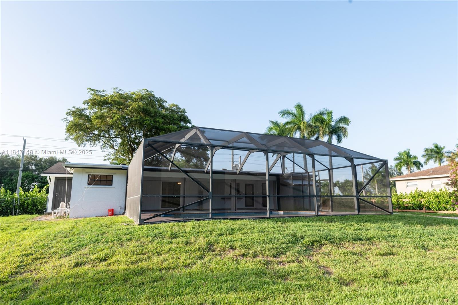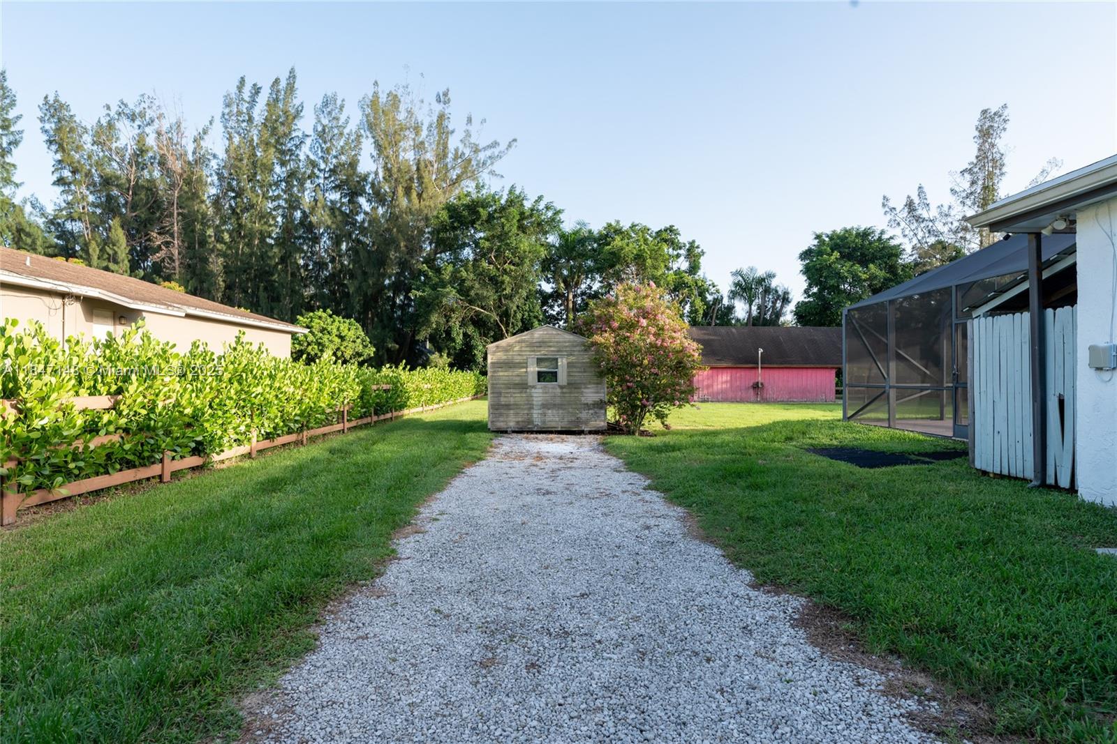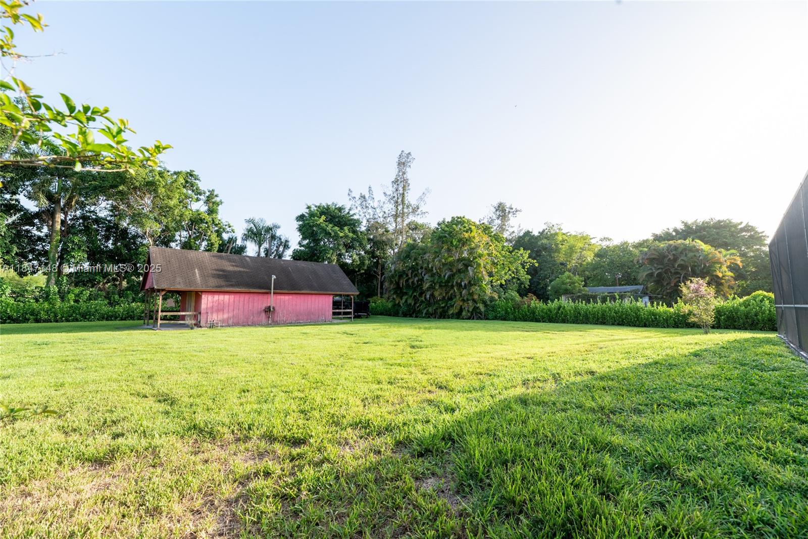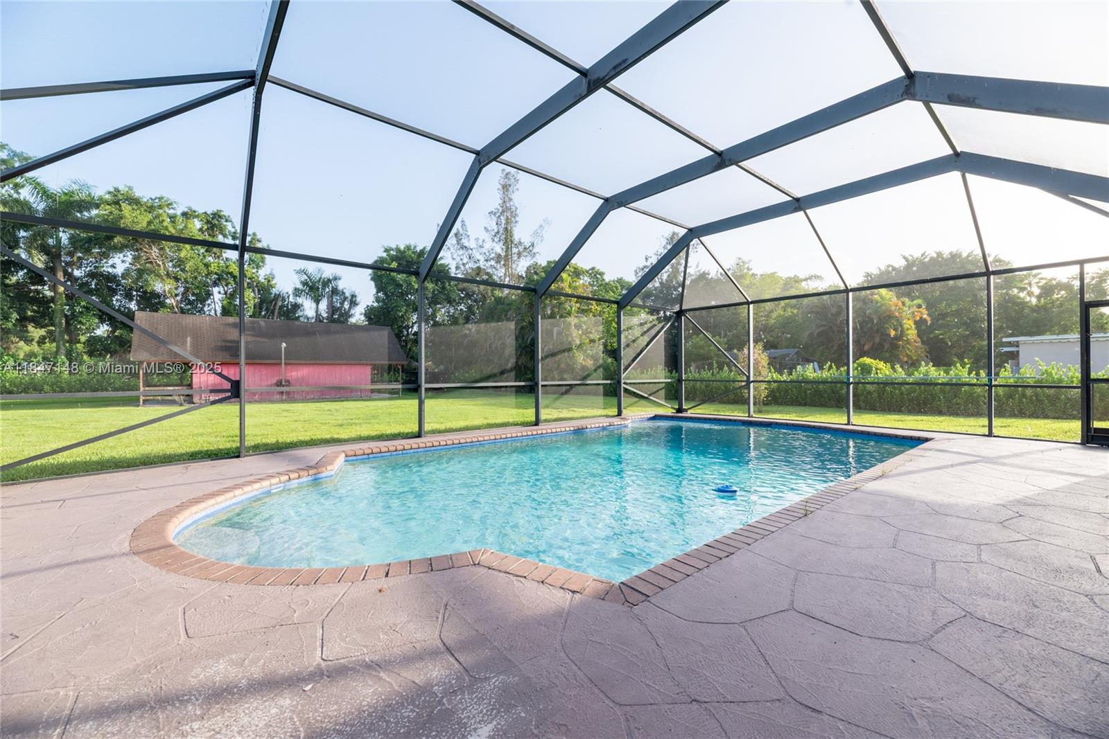 This beautiful 3 Bedroom, 2 Bath ranch-style oasis invites you into bright, open interiors set on lush, expansive grounds. Property is on almost 1 Acre of land. The sunlit living areas feature fresh white walls and luxury vinyl plank, flowing seamlessly into a modern kitchen boasting crisp white cabinetry, quartz countertops, brass finishes, and stainless-steel appliances. Step outside to a screened lanai and sparkling private pool which give you a serene retreat perfect for entertaining or relaxation. A charming outbuilding, ideal as a workshop or anything your imagination can think of, adds incredible potential. With beautifully updated finishes, generous yard space, and indoor-outdoor living that captures a tropical vibe, this home blends comfort and style into one inviting package.