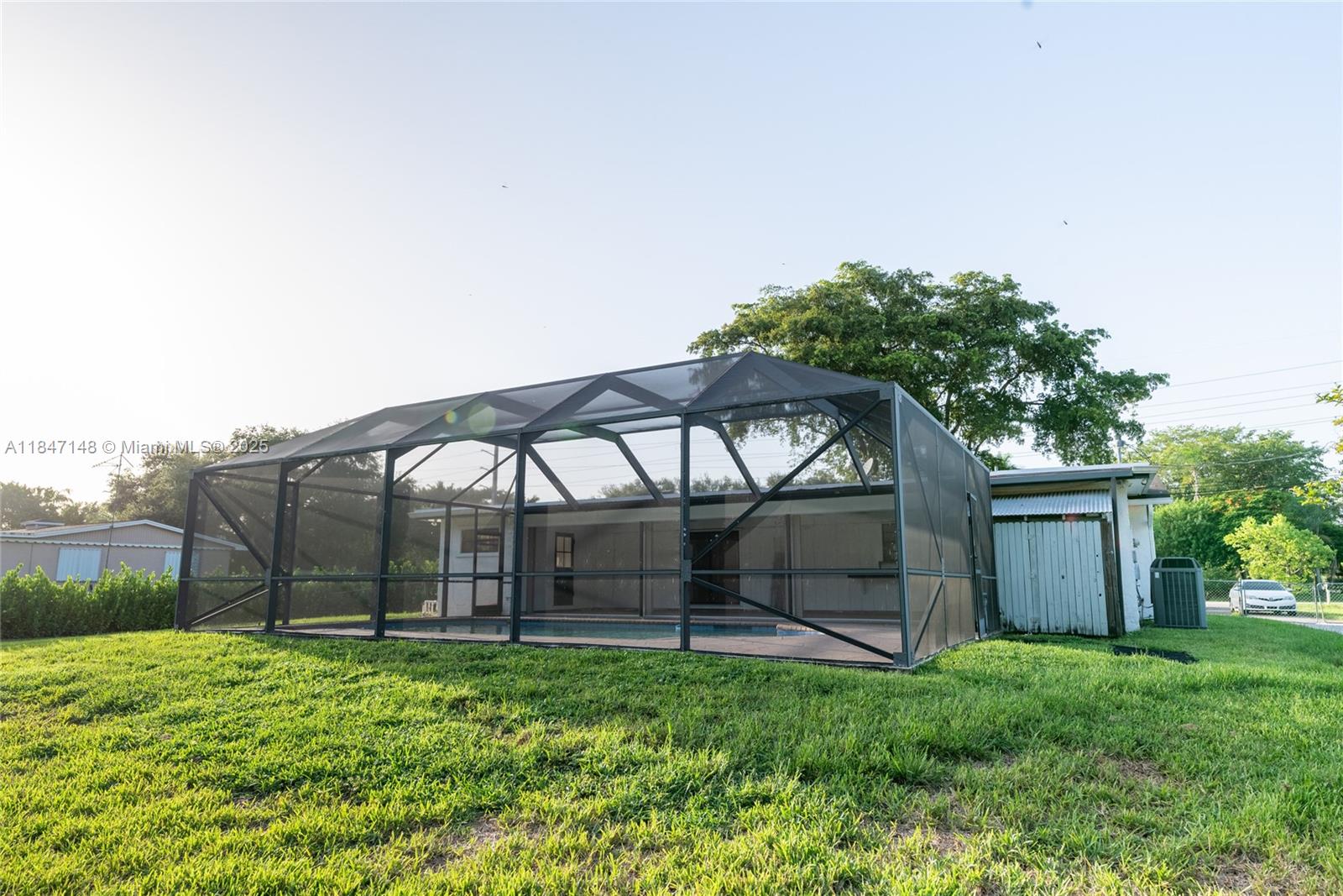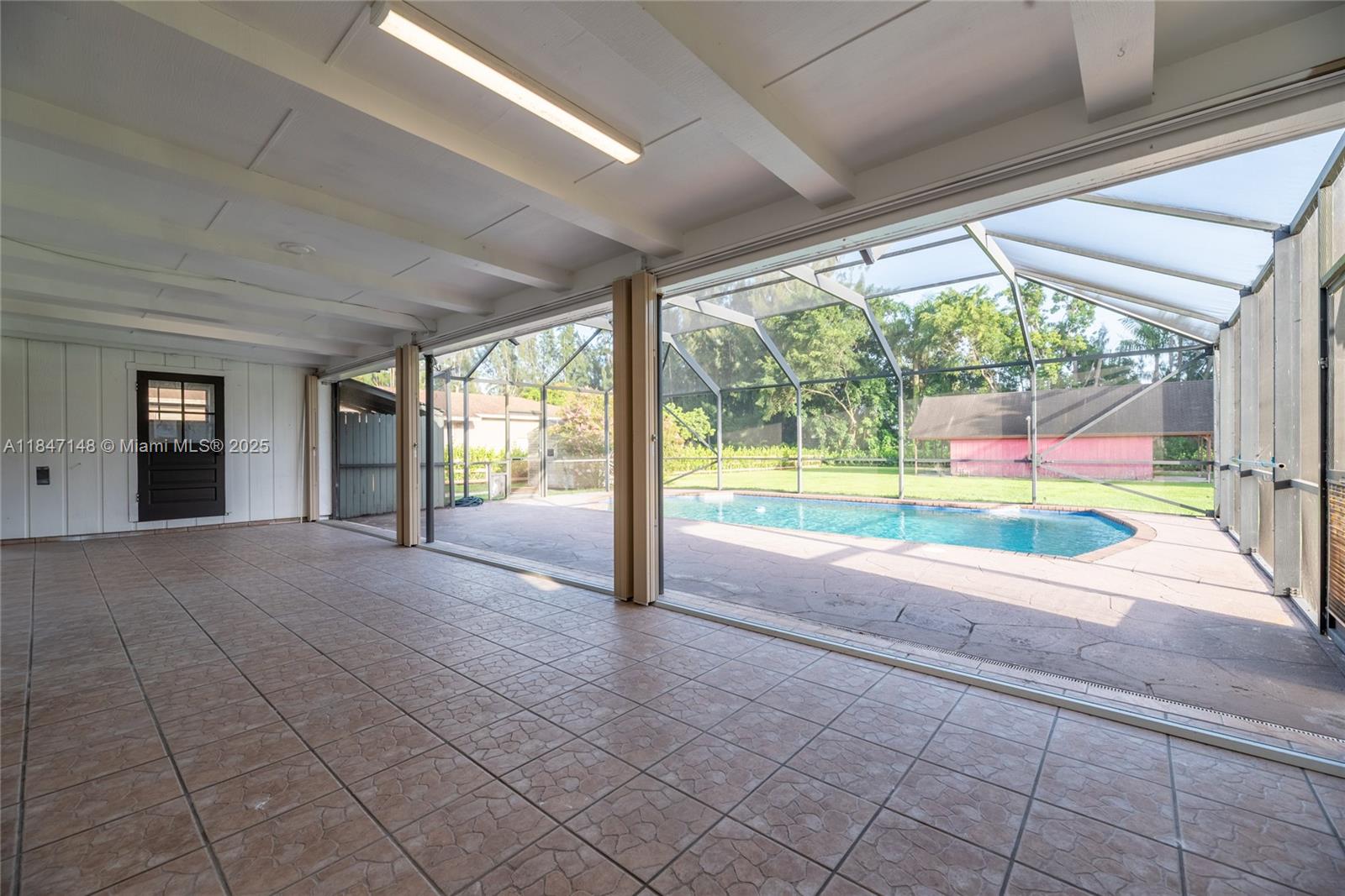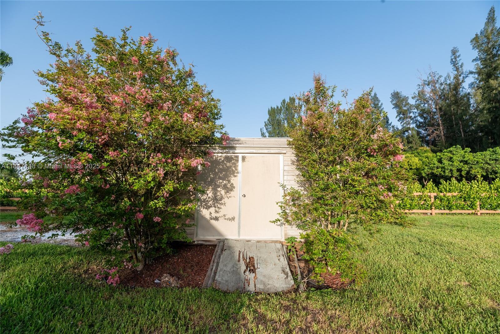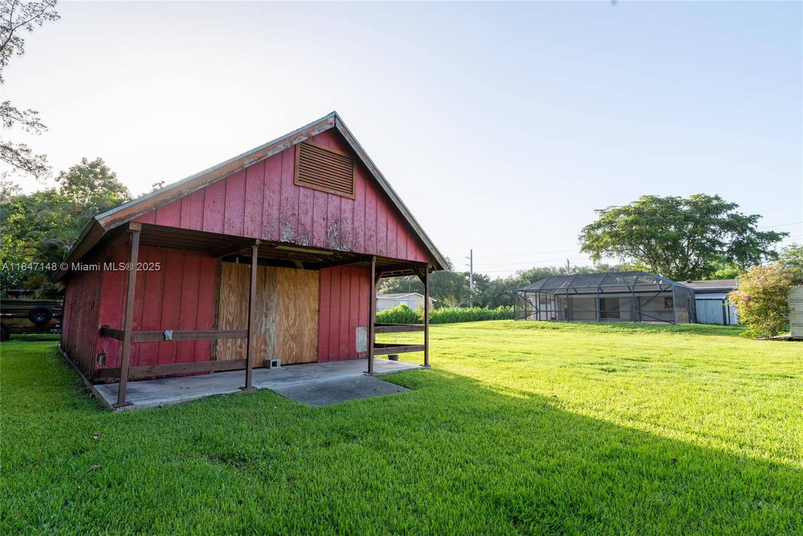 This beautiful 3 Bedroom, 2 Bath ranch-style oasis invites you into bright, open interiors set on lush, expansive grounds. Property is on almost 1 Acre of land. The sunlit living areas feature fresh white walls and luxury vinyl plank, flowing seamlessly into a modern kitchen boasting crisp white cabinetry, quartz countertops, brass finishes, and stainless-steel appliances. Step outside to a screened lanai and sparkling private pool which give you a serene retreat perfect for entertaining or relaxation. A charming outbuilding, ideal as a workshop or anything your imagination can think of, adds incredible potential. With beautifully updated finishes, generous yard space, and indoor-outdoor living that captures a tropical vibe, this home blends comfort and style into one inviting package.