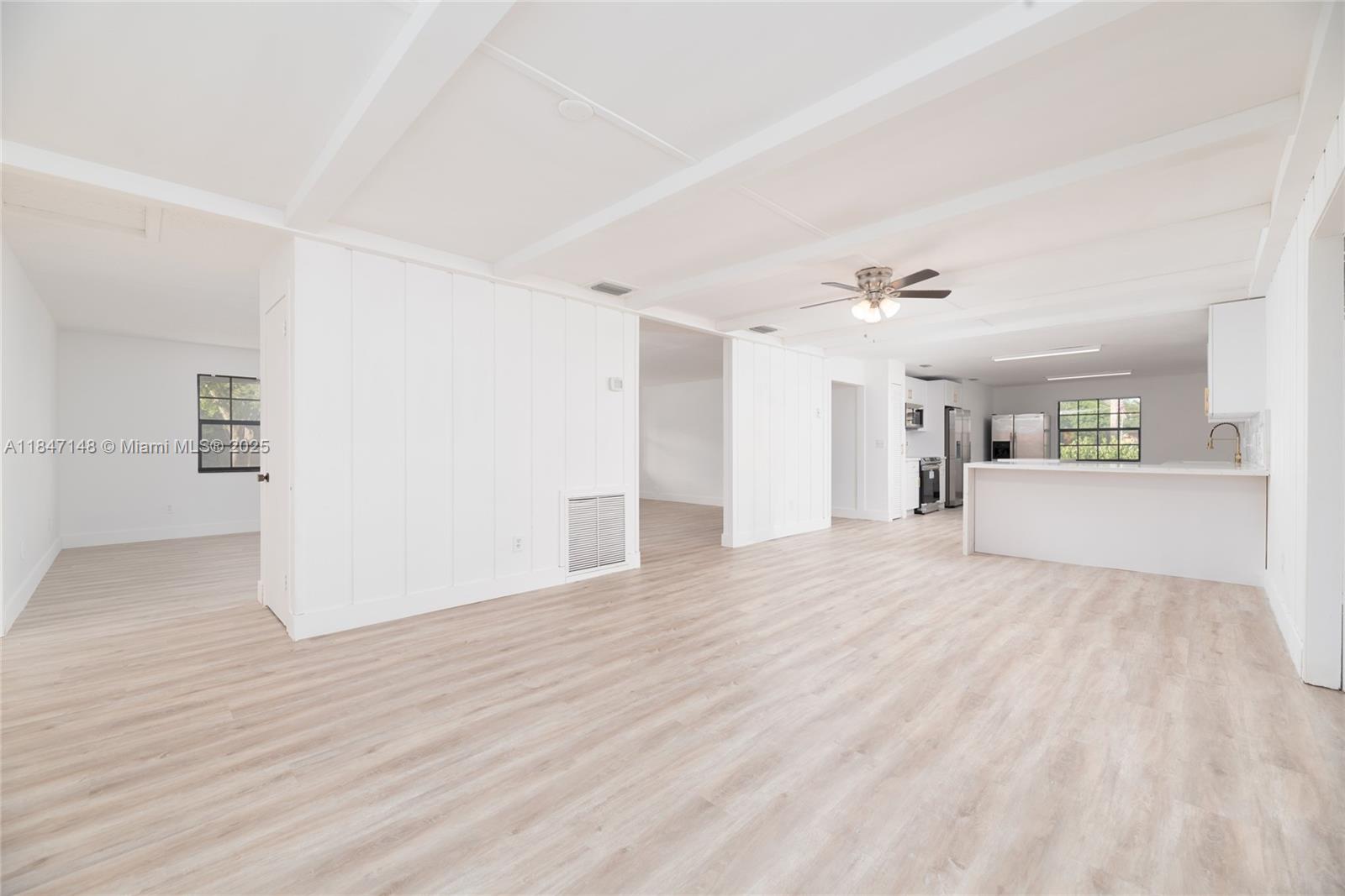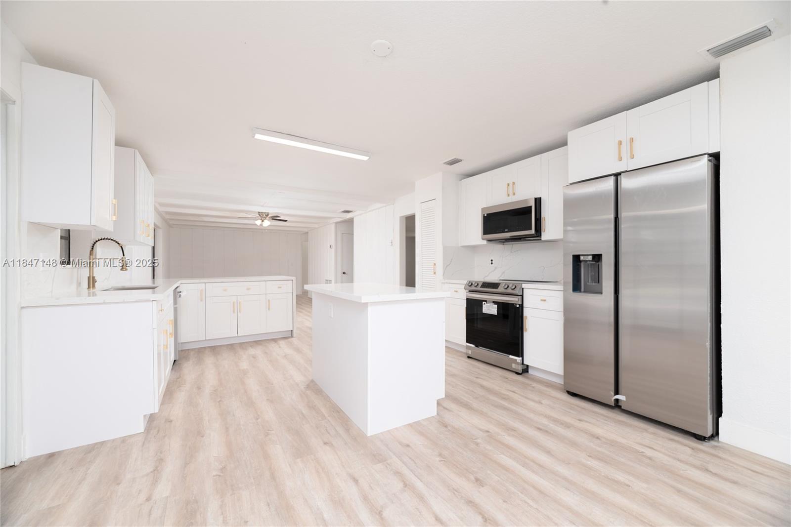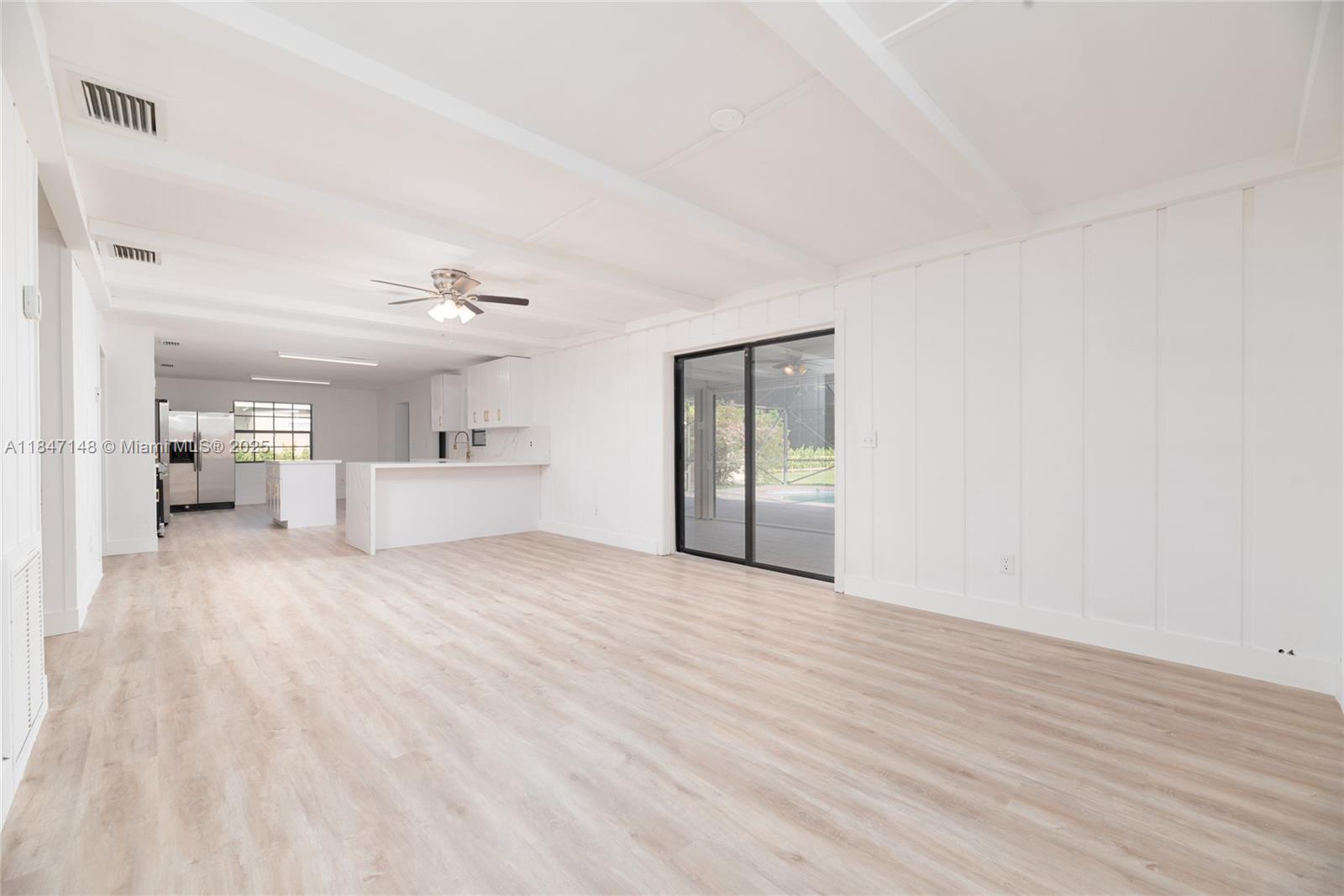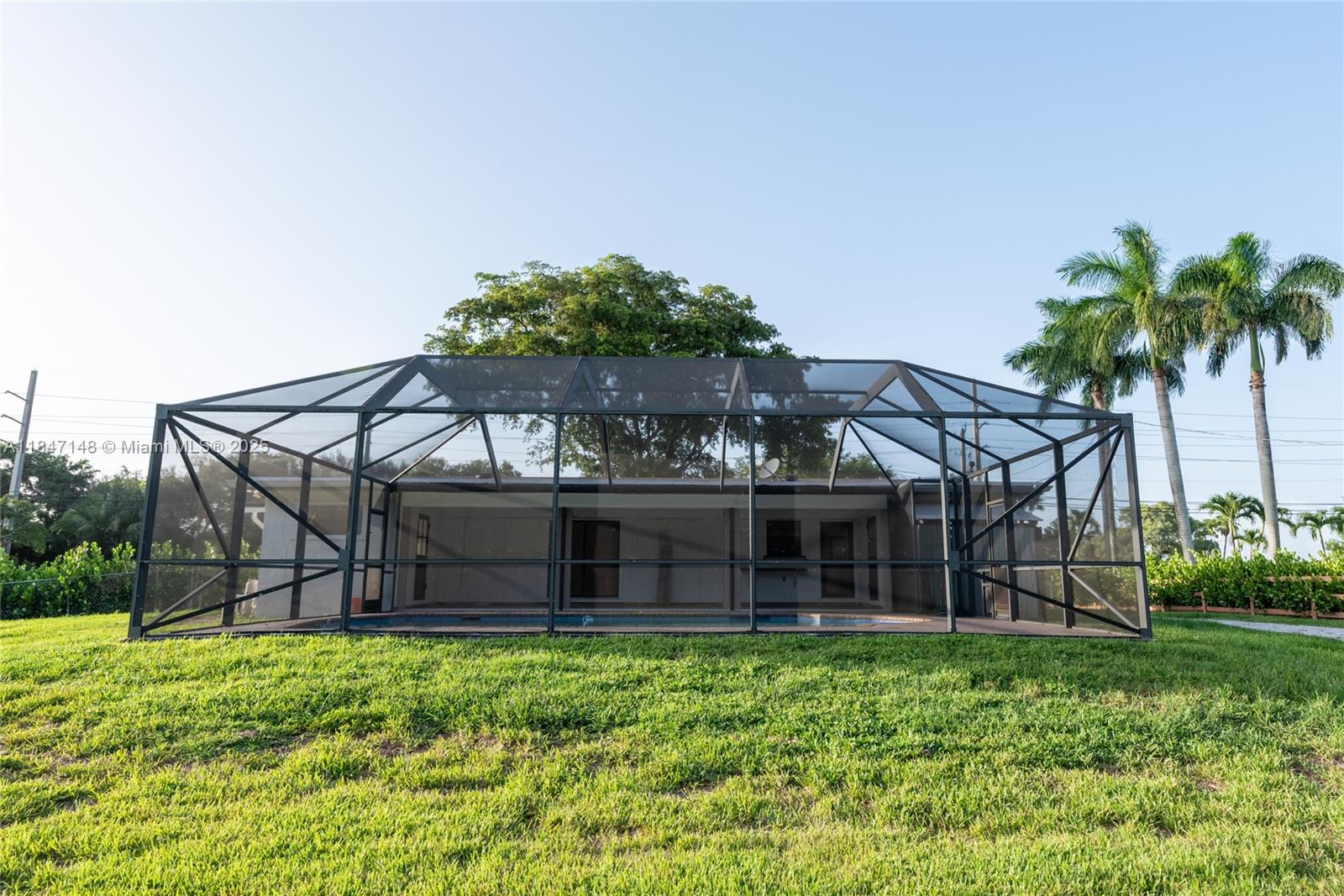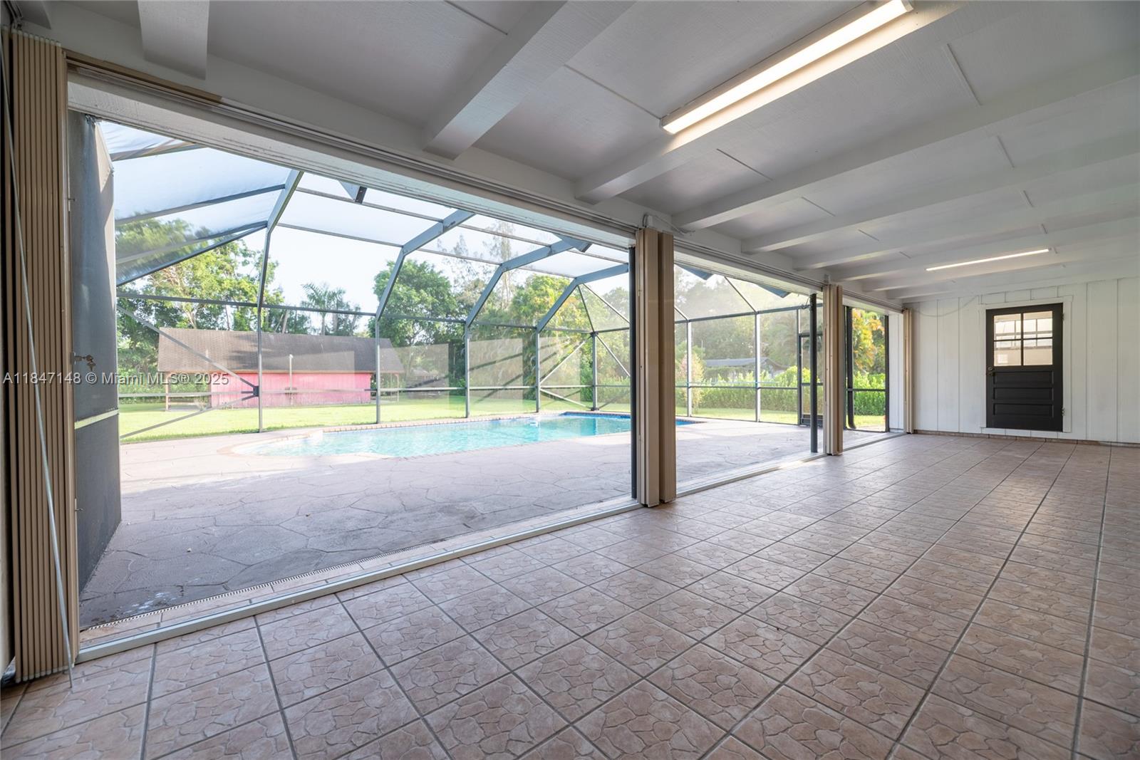 This beautiful 3 Bedroom, 2 Bath ranch-style oasis invites you into bright, open interiors set on lush, expansive grounds. Property is on almost 1 Acre of land. The sunlit living areas feature fresh white walls and luxury vinyl plank, flowing seamlessly into a modern kitchen boasting crisp white cabinetry, quartz countertops, brass finishes, and stainless-steel appliances. Step outside to a screened lanai and sparkling private pool which give you a serene retreat perfect for entertaining or relaxation. A charming outbuilding, ideal as a workshop or anything your imagination can think of, adds incredible potential. With beautifully updated finishes, generous yard space, and indoor-outdoor living that captures a tropical vibe, this home blends comfort and style into one inviting package.