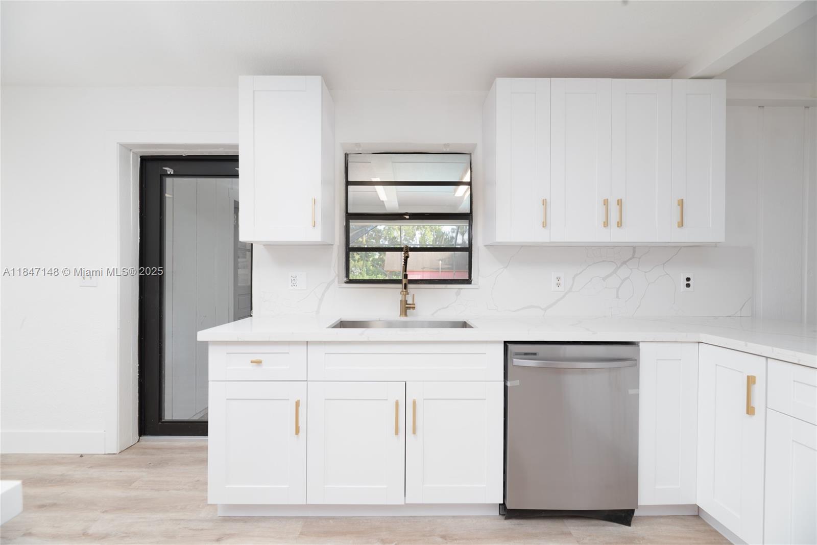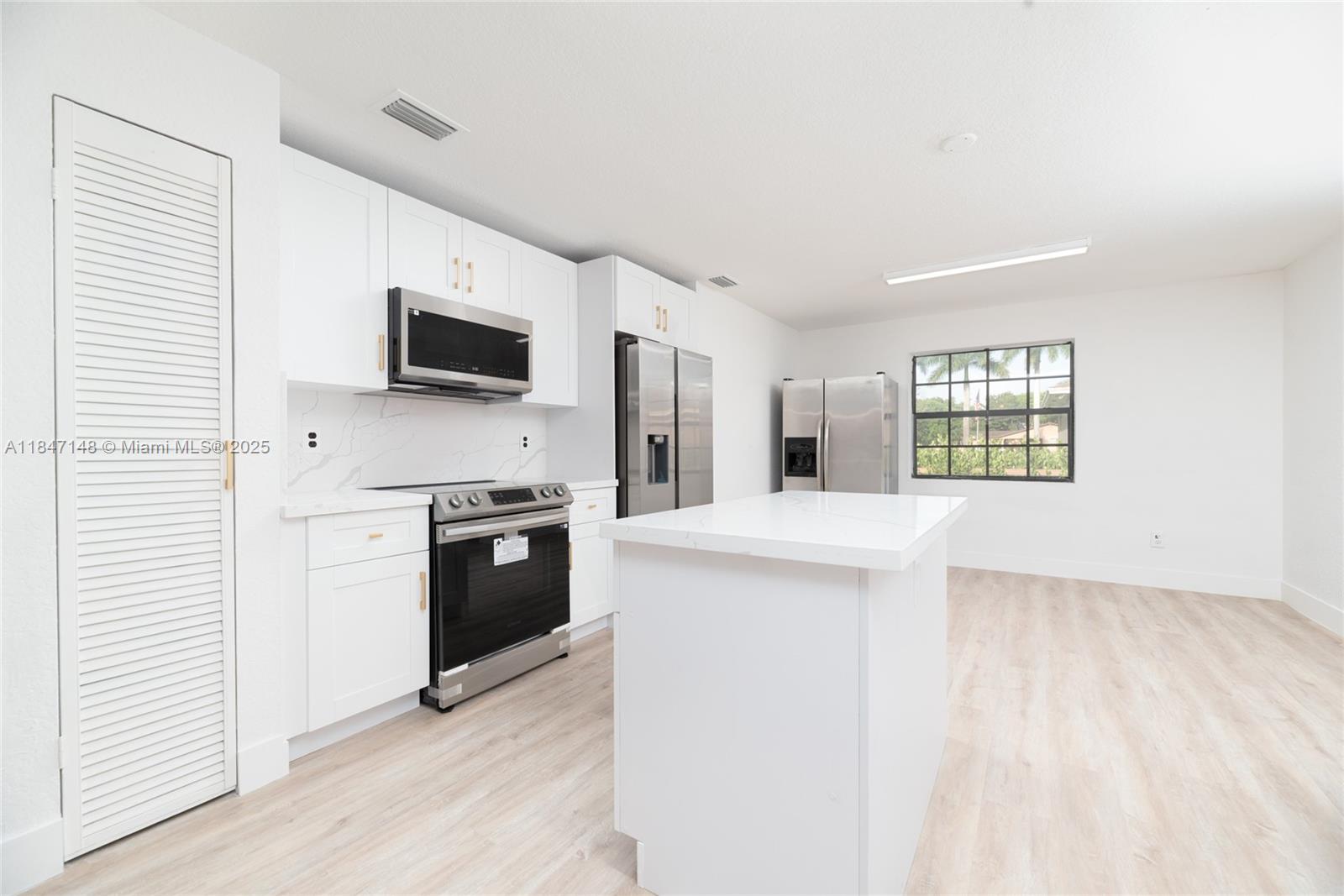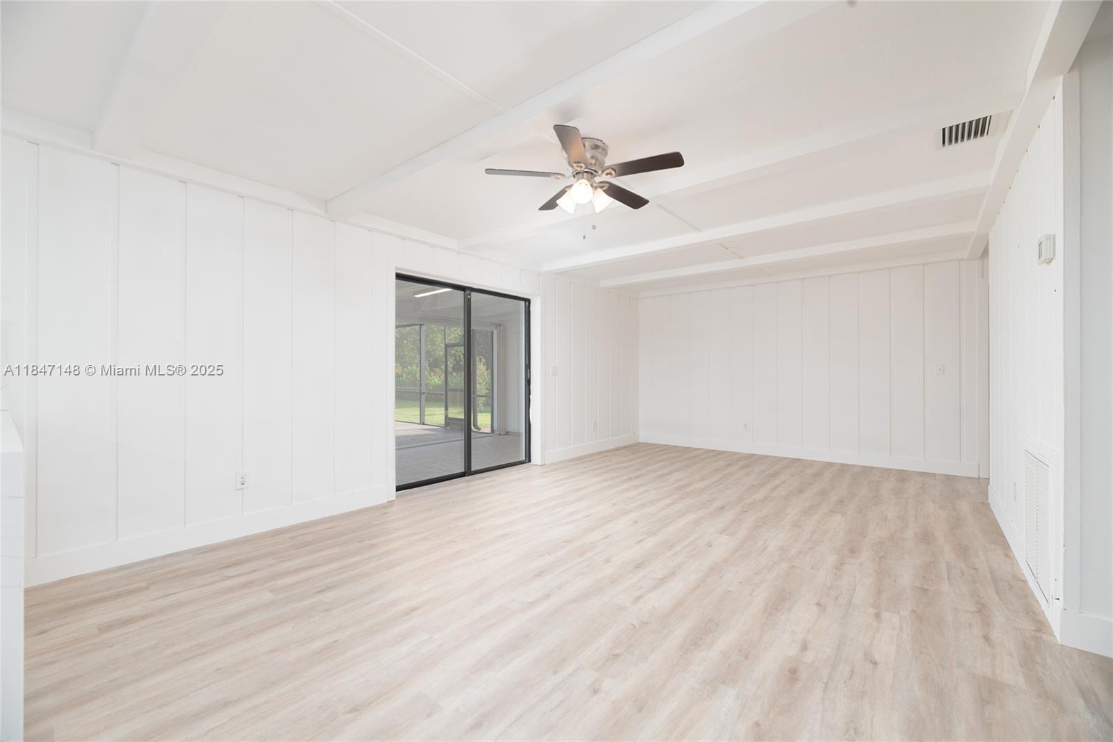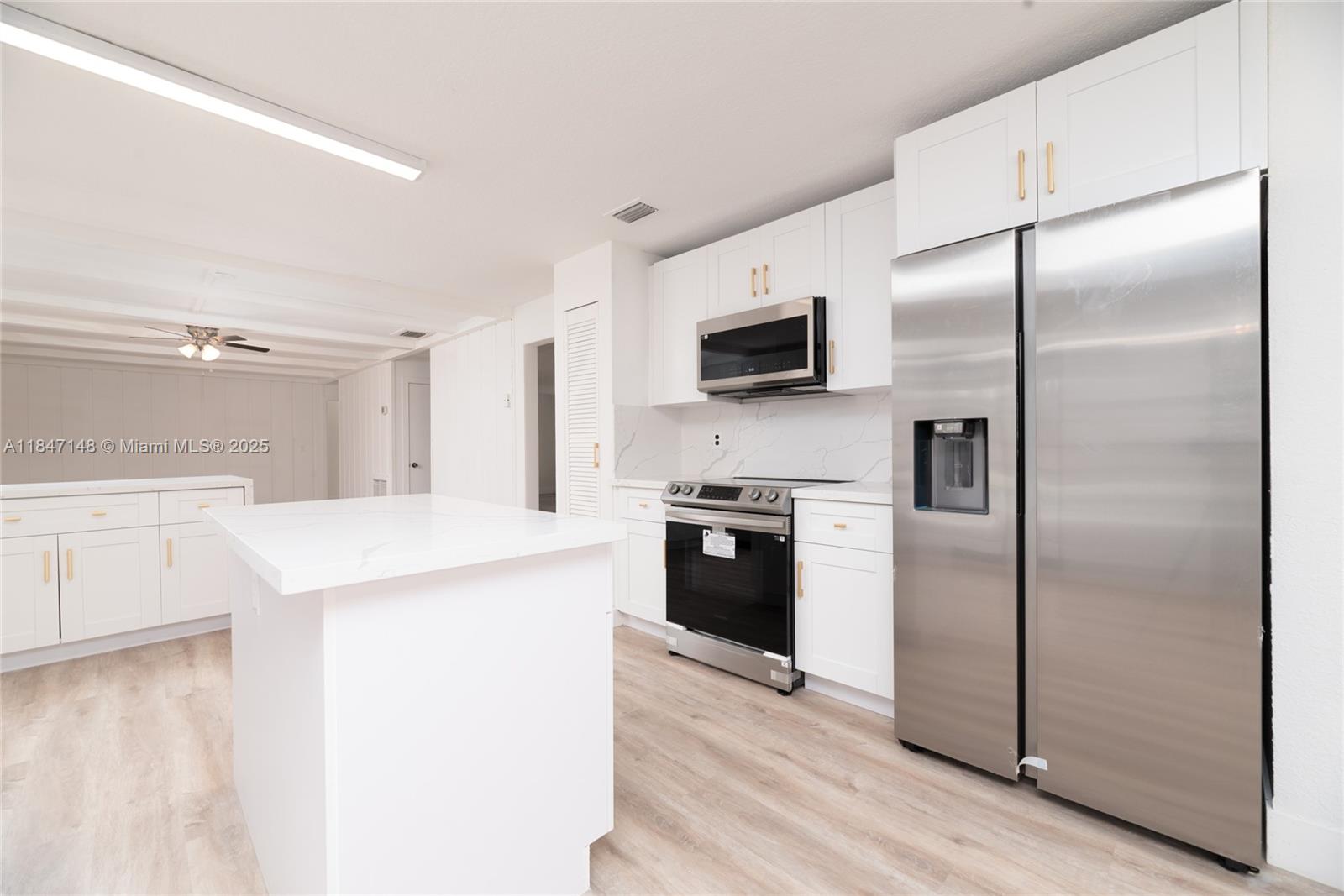 This beautiful 3 Bedroom, 2 Bath ranch-style oasis invites you into bright, open interiors set on lush, expansive grounds. Property is on almost 1 Acre of land. The sunlit living areas feature fresh white walls and luxury vinyl plank, flowing seamlessly into a modern kitchen boasting crisp white cabinetry, quartz countertops, brass finishes, and stainless-steel appliances. Step outside to a screened lanai and sparkling private pool which give you a serene retreat perfect for entertaining or relaxation. A charming outbuilding, ideal as a workshop or anything your imagination can think of, adds incredible potential. With beautifully updated finishes, generous yard space, and indoor-outdoor living that captures a tropical vibe, this home blends comfort and style into one inviting package.
