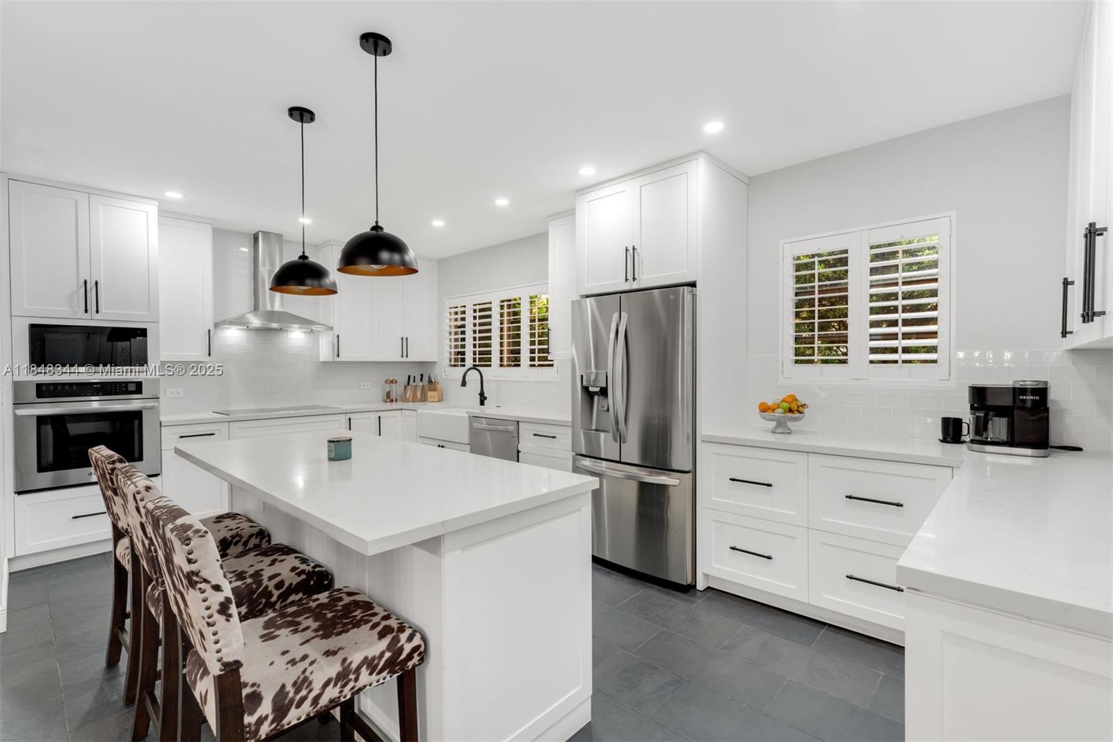 The epitome of Coral Gables charm! Welcome to this fully turnkey 3BD/2BA home centrally located on a quiet, beautiful tree-lined street! This home was renovated from top to bottom in 2021 while tastefully preserving some of its historic features such as the original Dade-County pine floors. The layout was thoughtfully curated to maximize space with its open floorplan featuring over 1,750 interior SF. The show-stopping kitchen features quartz countertops, a large island, wine fridge, wall oven + electric cooktop w/ a range hood, & plenty of cabinet space. Additional updates: PVC plumbing, 2018 AC & water heater, recessed lighting, renovated bathrooms, covered patio w/ bistro lights, & a 1-car garage w/ additional overhead storage. Home is on public sewer! By appointment only.