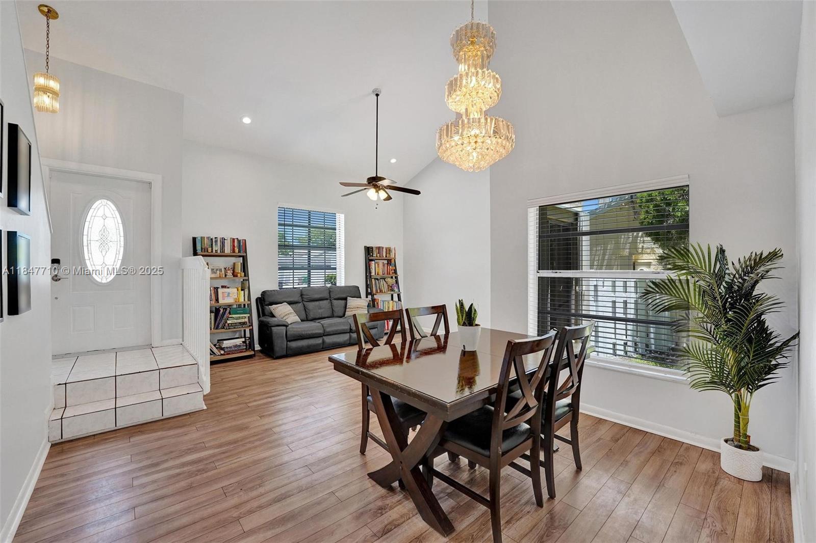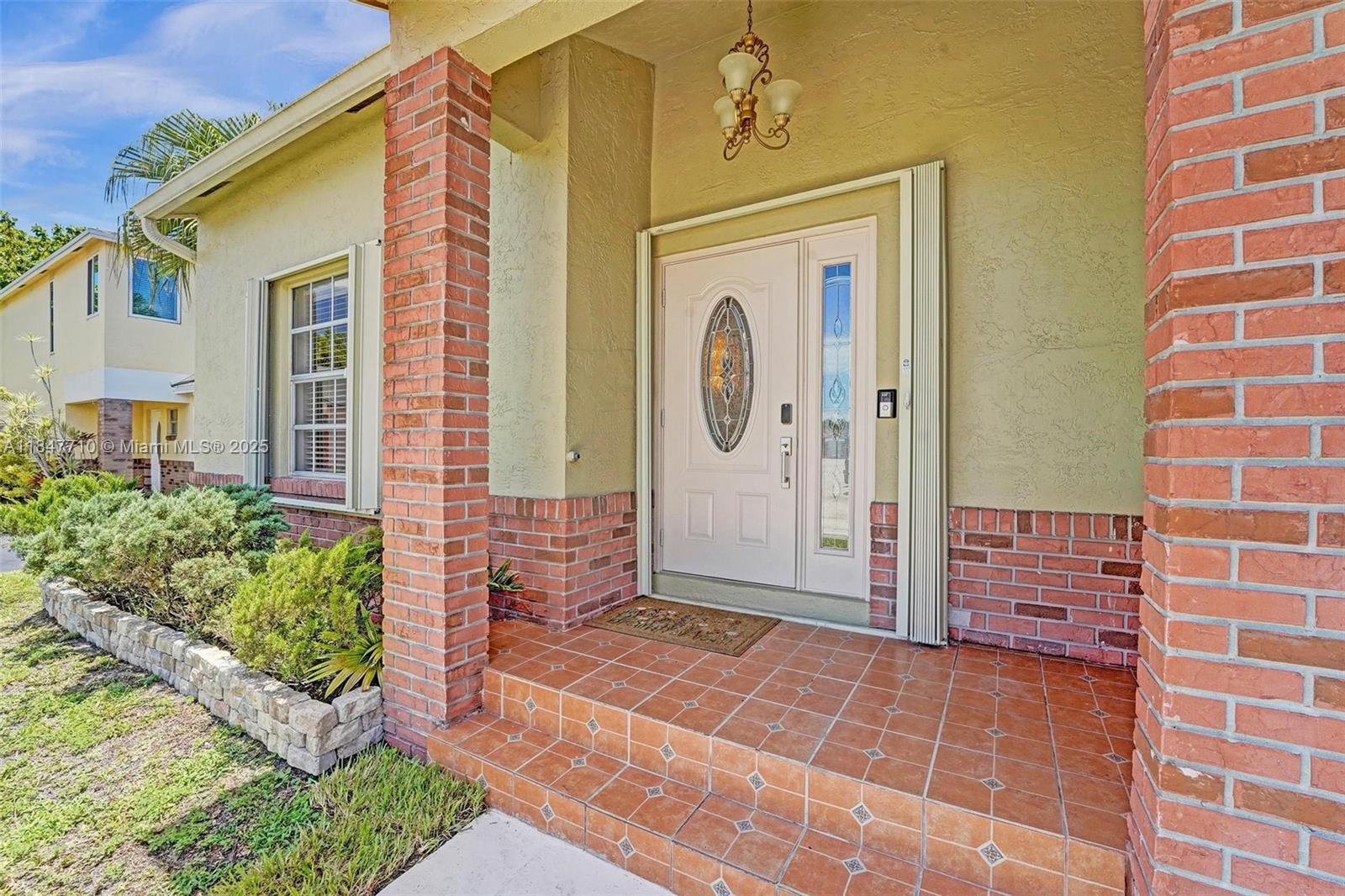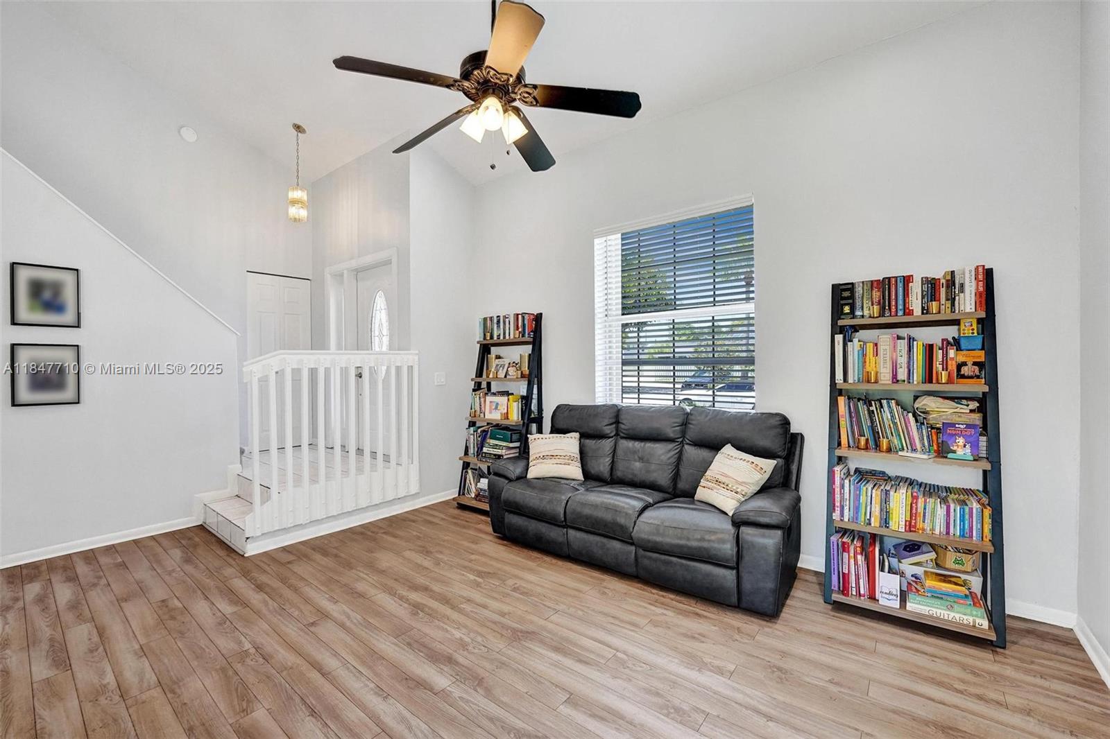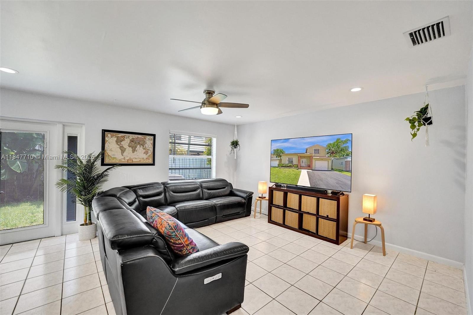This delightful 3-bedroom, 2.5-bath home is tucked away in a peaceful cul-de-sac on a generous lot, offering abundant natural light and vaulted ceilings. The main living areas feature tile and laminate flooring, while the newly updated bathrooms add a fresh touch. Enjoy extra storage or office space, and step outside to a fenced yard with your very own mango & banana fruit-bearing trees! Accordion shutters throughout provide extra peace of mind. Additional perks include fresh paint inside and out, ceiling fans, and custom closet shelving. Located in beautiful Shenandoah, with top-rated schools, easy access to highways, shopping, dining, the airport, and Sawgrass Mills Mall. Low HOA with access to a community pool, parks, trails, tennis, and basketball courts. Come see for yourself!