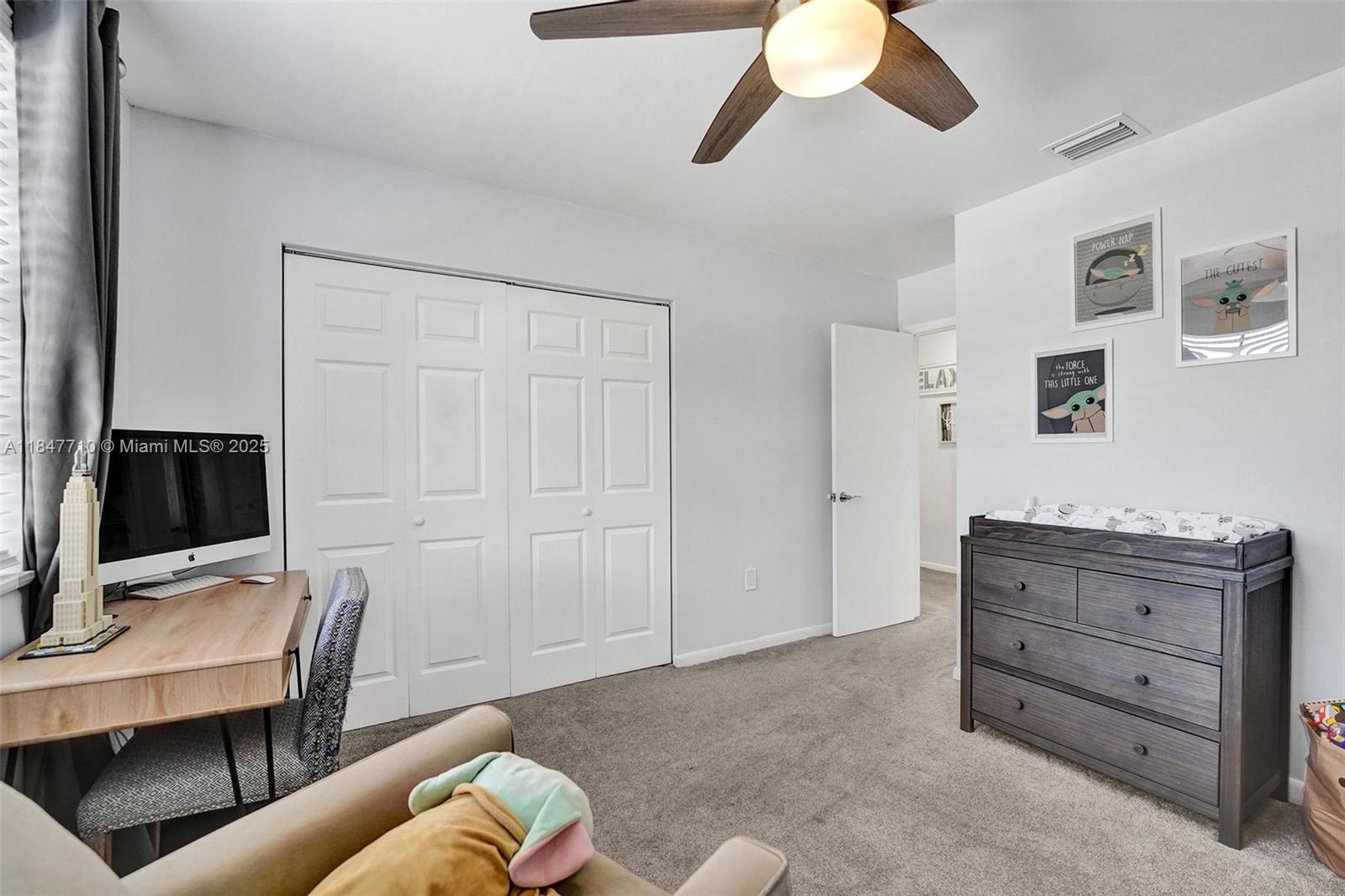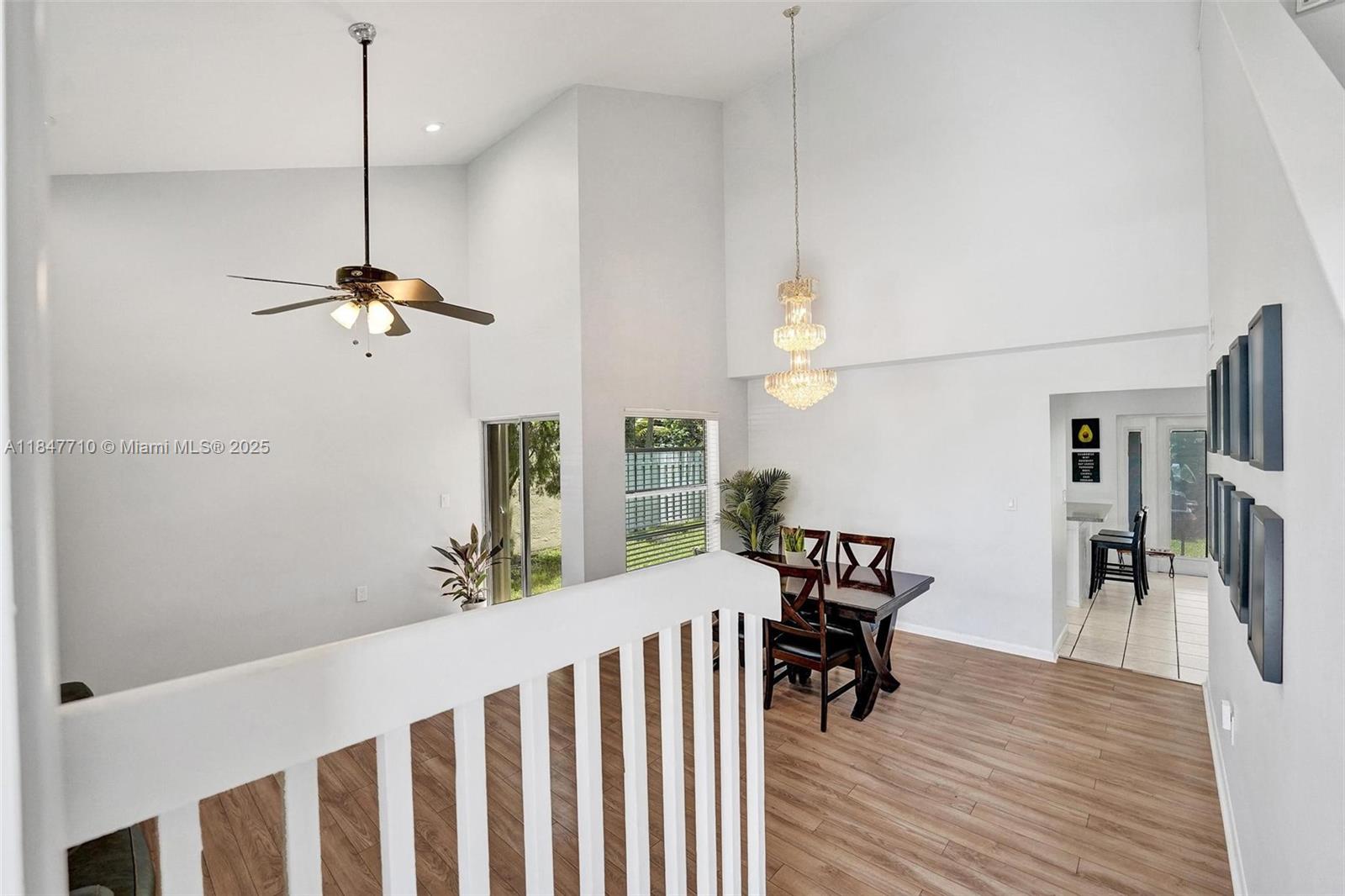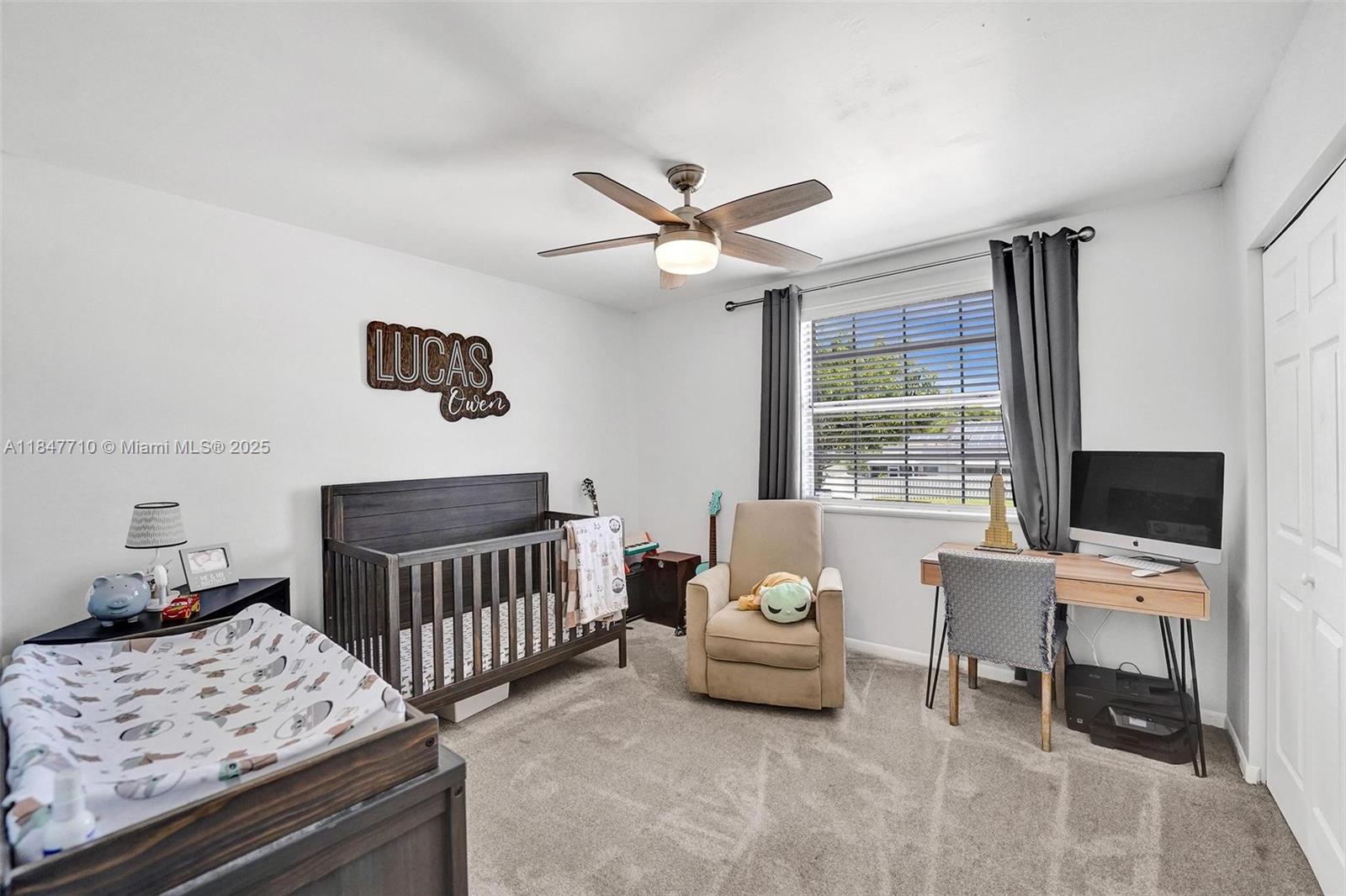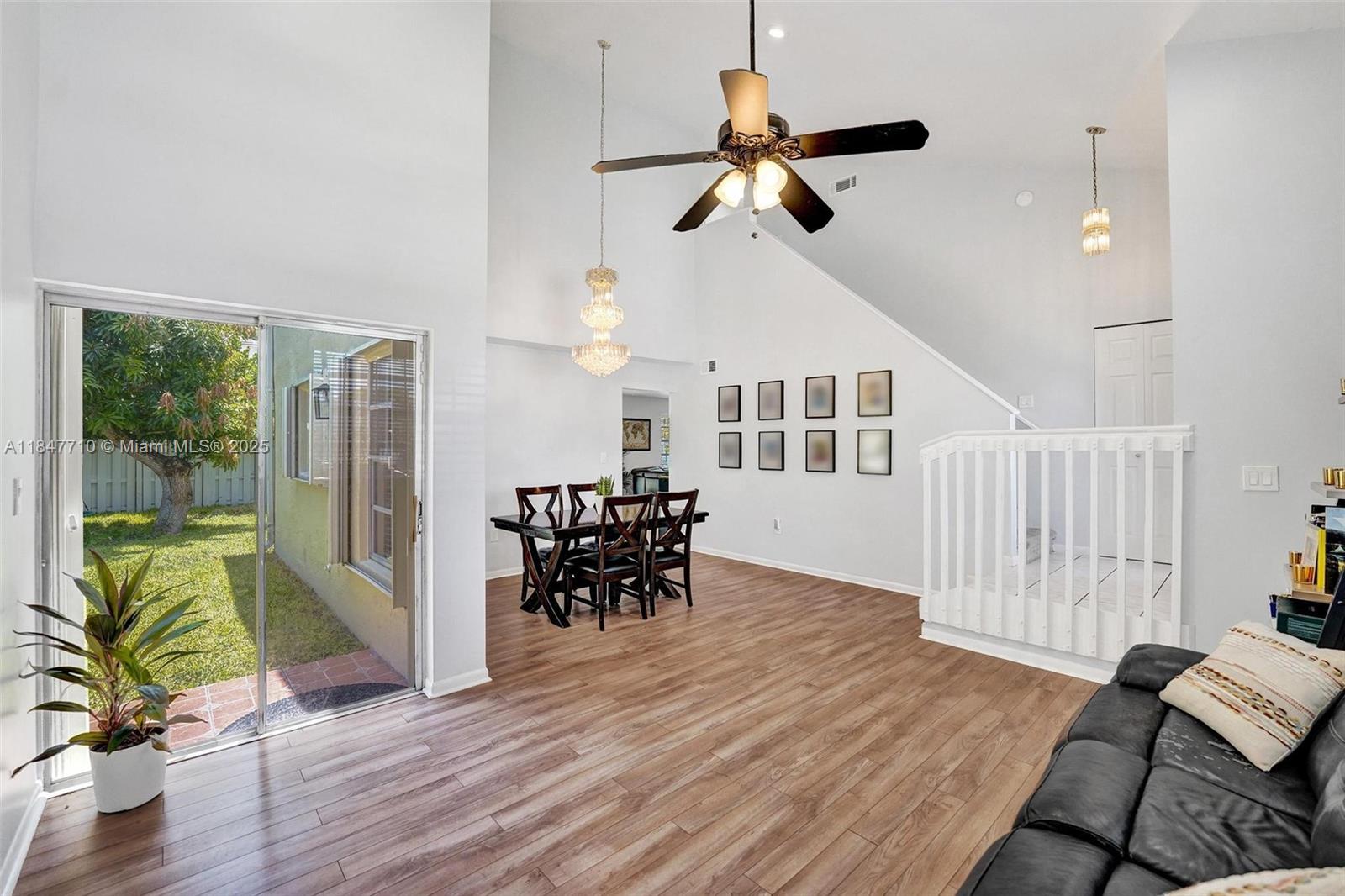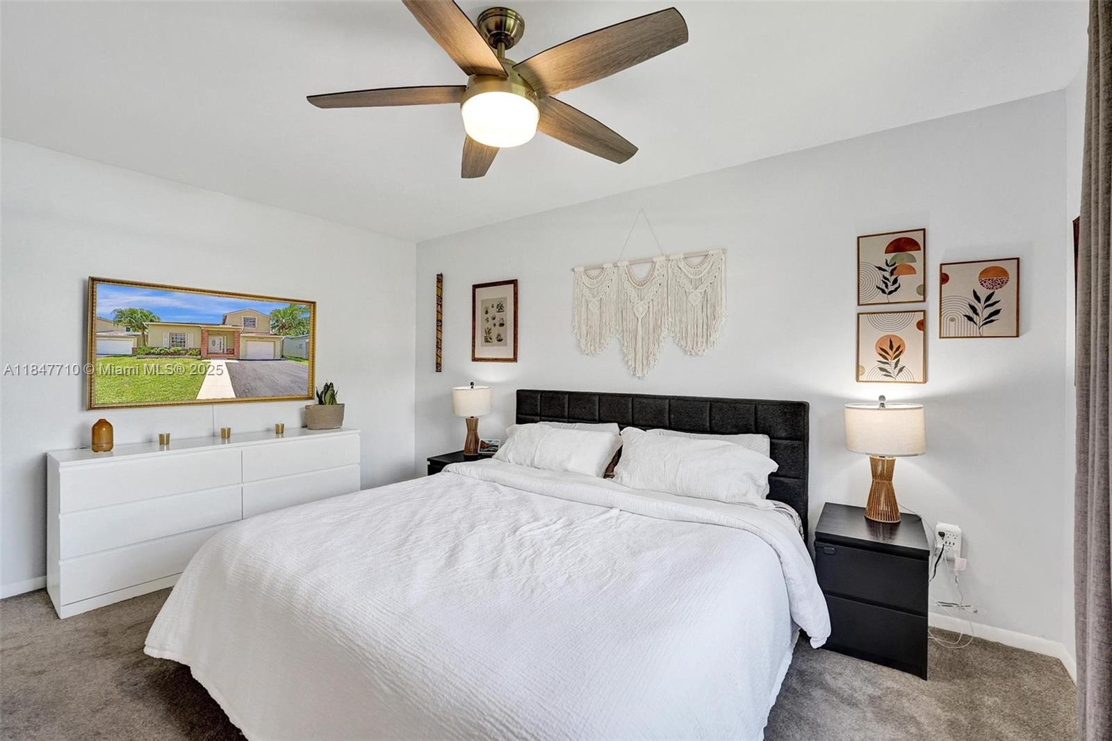 This delightful 3-bedroom, 2.5-bath home is tucked away in a peaceful cul-de-sac on a generous lot, offering abundant natural light and vaulted ceilings. The main living areas feature tile and laminate flooring, while the newly updated bathrooms add a fresh touch. Enjoy extra storage or office space, and step outside to a fenced yard with your very own mango & banana fruit-bearing trees! Accordion shutters throughout provide extra peace of mind. Additional perks include fresh paint inside and out, ceiling fans, and custom closet shelving. Located in beautiful Shenandoah, with top-rated schools, easy access to highways, shopping, dining, the airport, and Sawgrass Mills Mall. Low HOA with access to a community pool, parks, trails, tennis, and basketball courts. Come see for yourself!