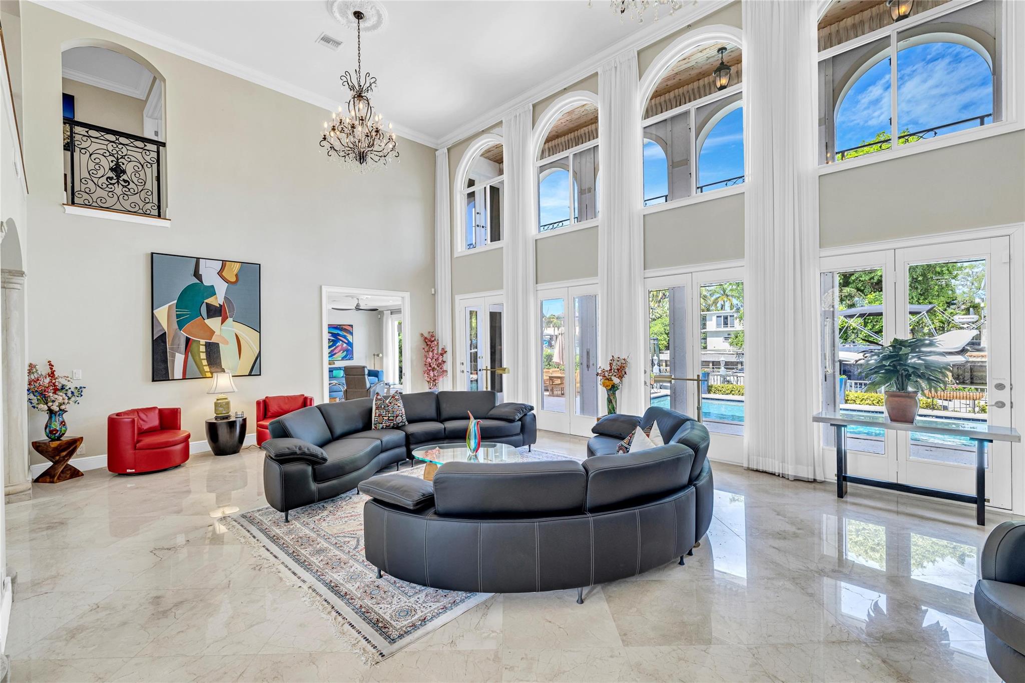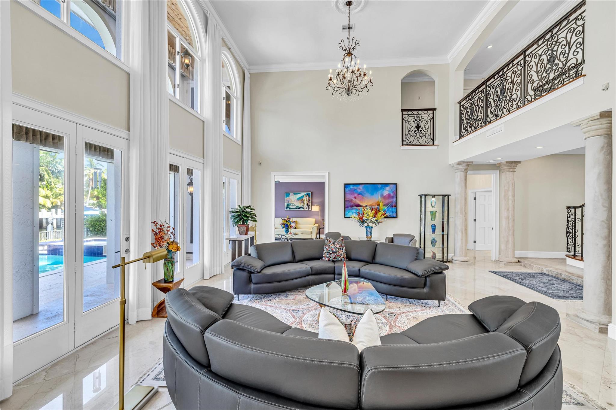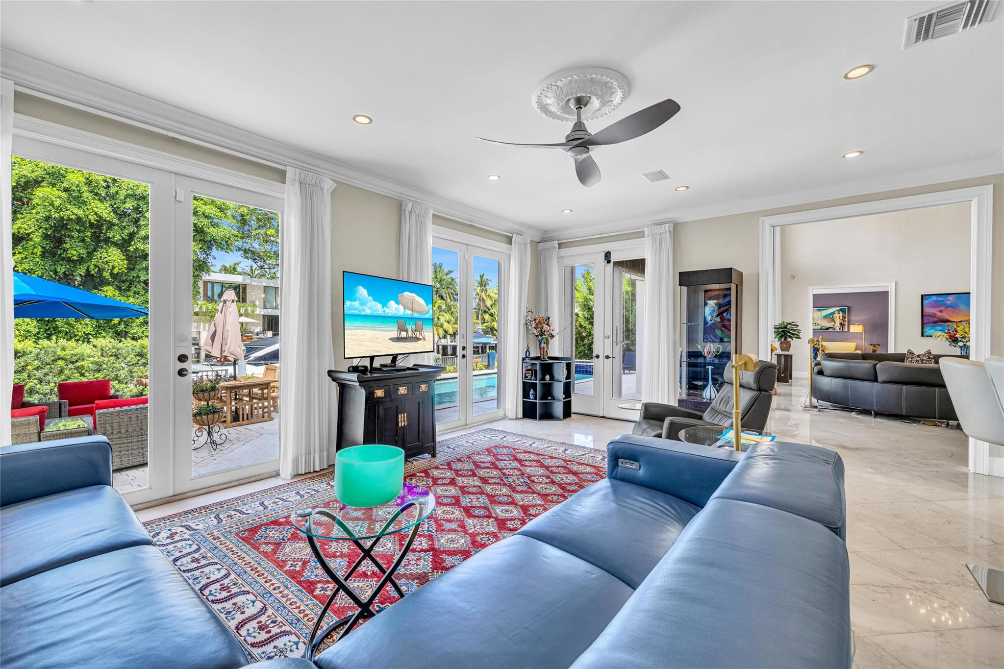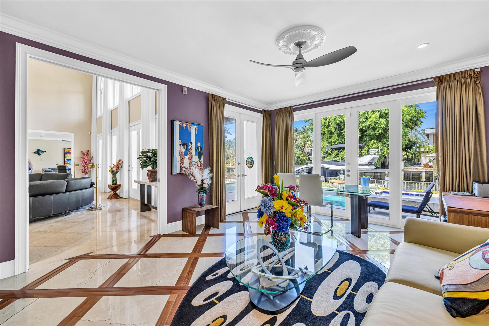 Step into refined elegance at this recently renovated, estate in Las Olas Isles, offering 5,000+ sq ft of timeless design on 85 ft of prime deepwater frontage. Grand marble floors and soaring ceilings lead to a gourmet chef’s kitchen with premium appliances and open-concept living spaces designed for upscale entertaining. The VIP guest suite, media/gym room, and richly appointed office (optional 5th bedroom) offer versatility. The lavish primary suite features hardwood floors, a spa-style bath, and custom walk-in closet. Outdoors, enjoy a Pecky Cypress loggia, resort-style pool, spa, and lush tropical gardens. New roof, 2 A/C units, and pool equipment.