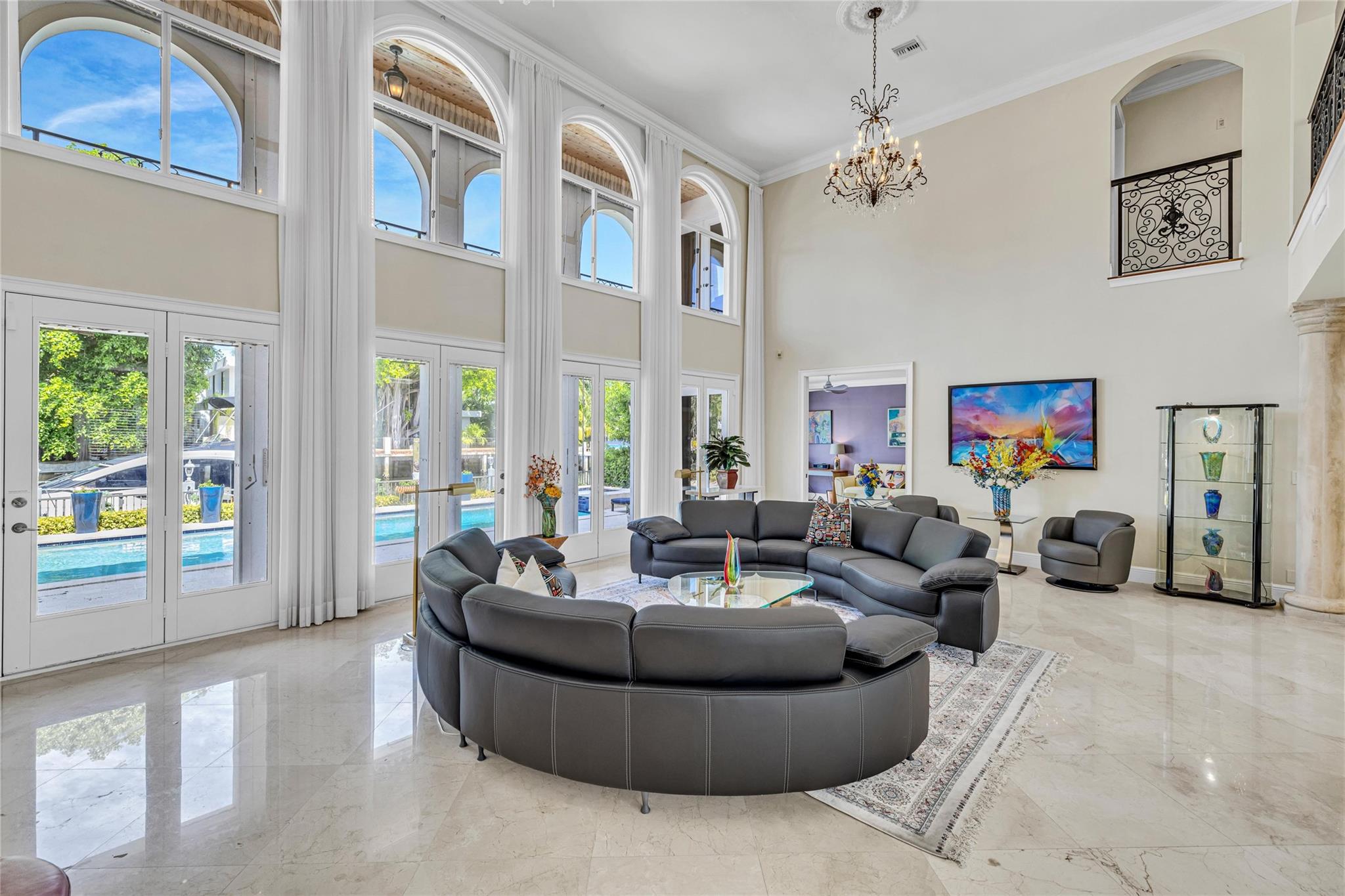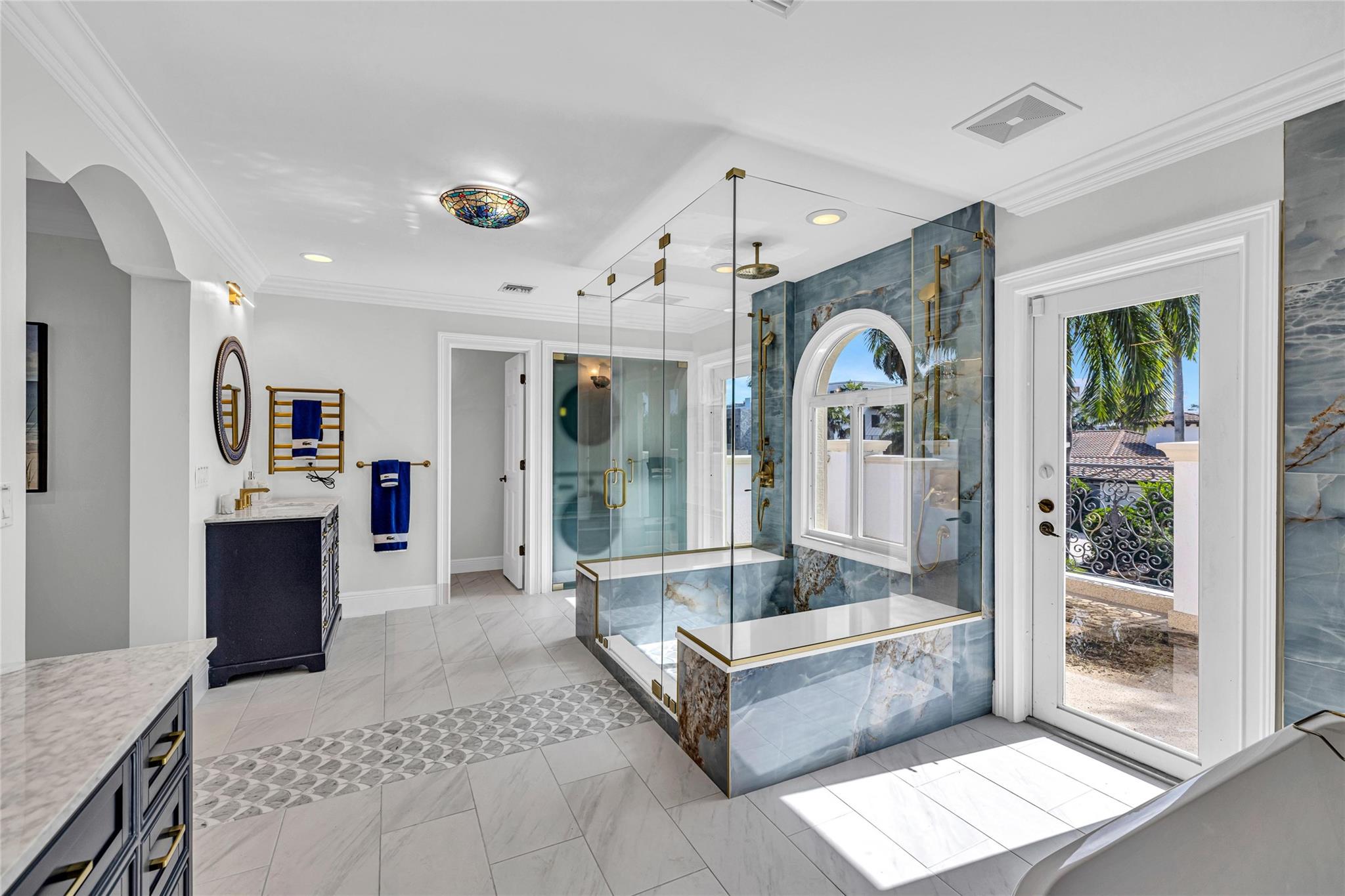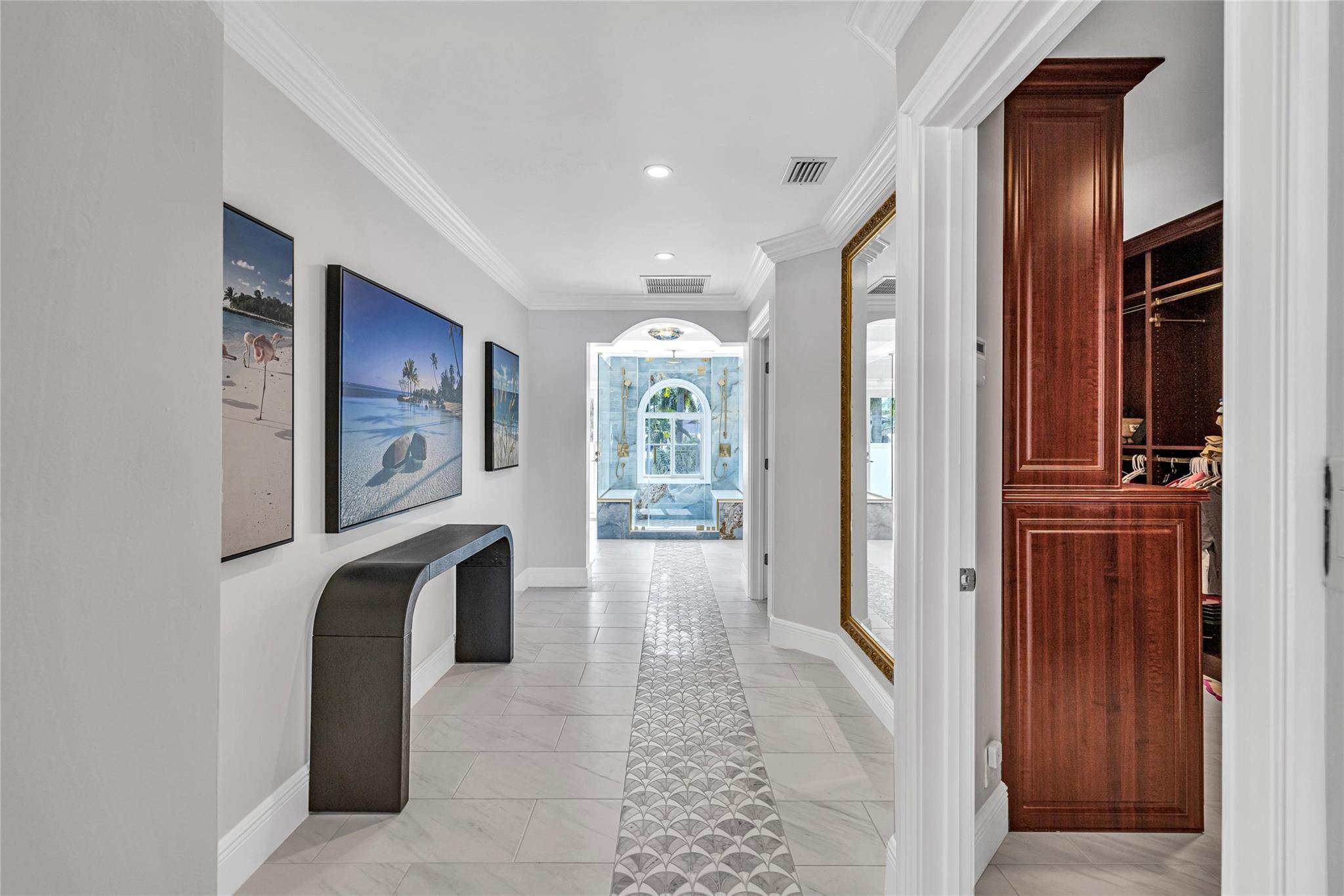 Step into refined elegance at this recently renovated, estate in Las Olas Isles, offering 5,000+ sq ft of timeless design on 85 ft of prime deepwater frontage. Grand marble floors and soaring ceilings lead to a gourmet chef’s kitchen with premium appliances and open-concept living spaces designed for upscale entertaining. The VIP guest suite, media/gym room, and richly appointed office (optional 5th bedroom) offer versatility. The lavish primary suite features hardwood floors, a spa-style bath, and custom walk-in closet. Outdoors, enjoy a Pecky Cypress loggia, resort-style pool, spa, and lush tropical gardens. New roof, 2 A/C units, and pool equipment.