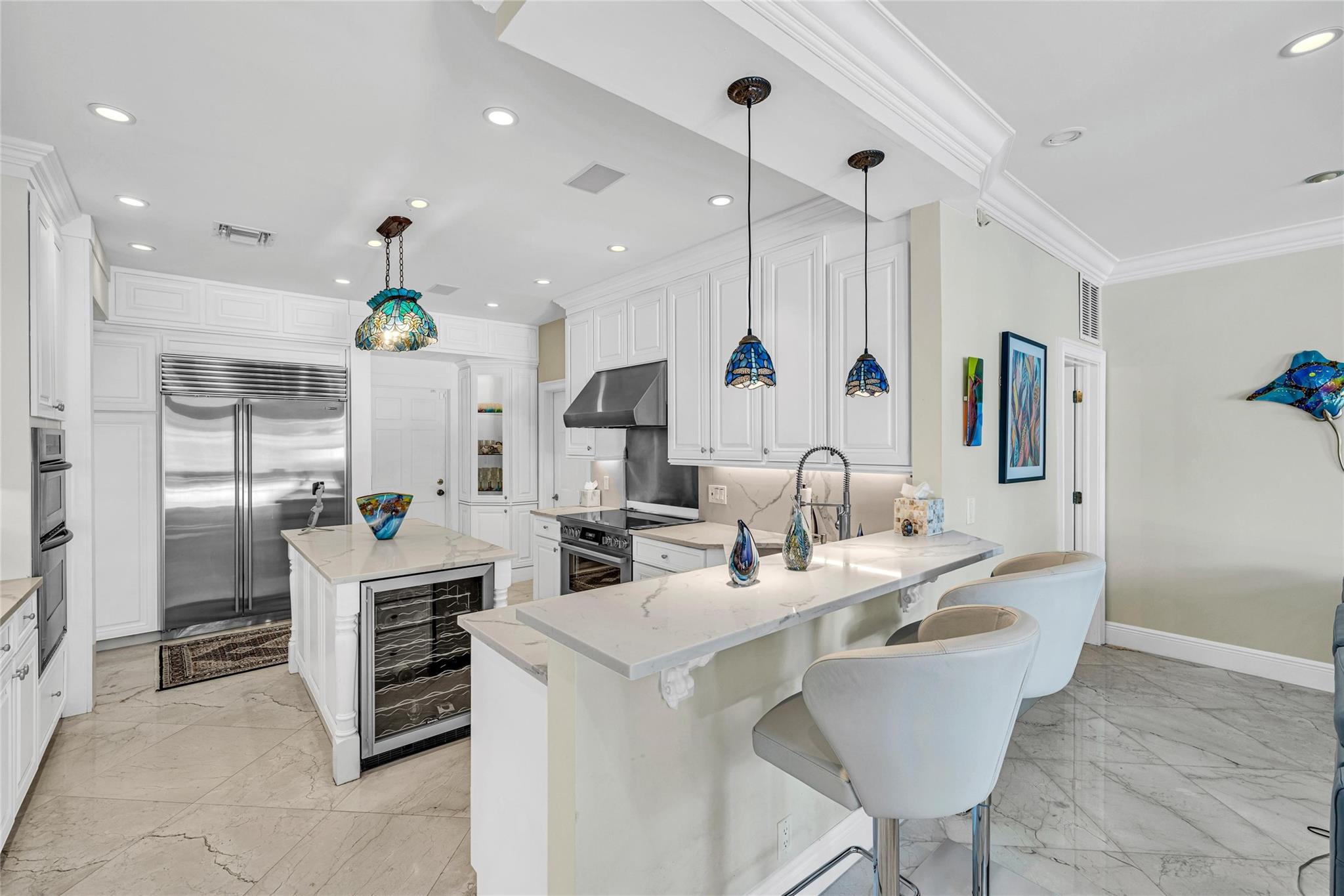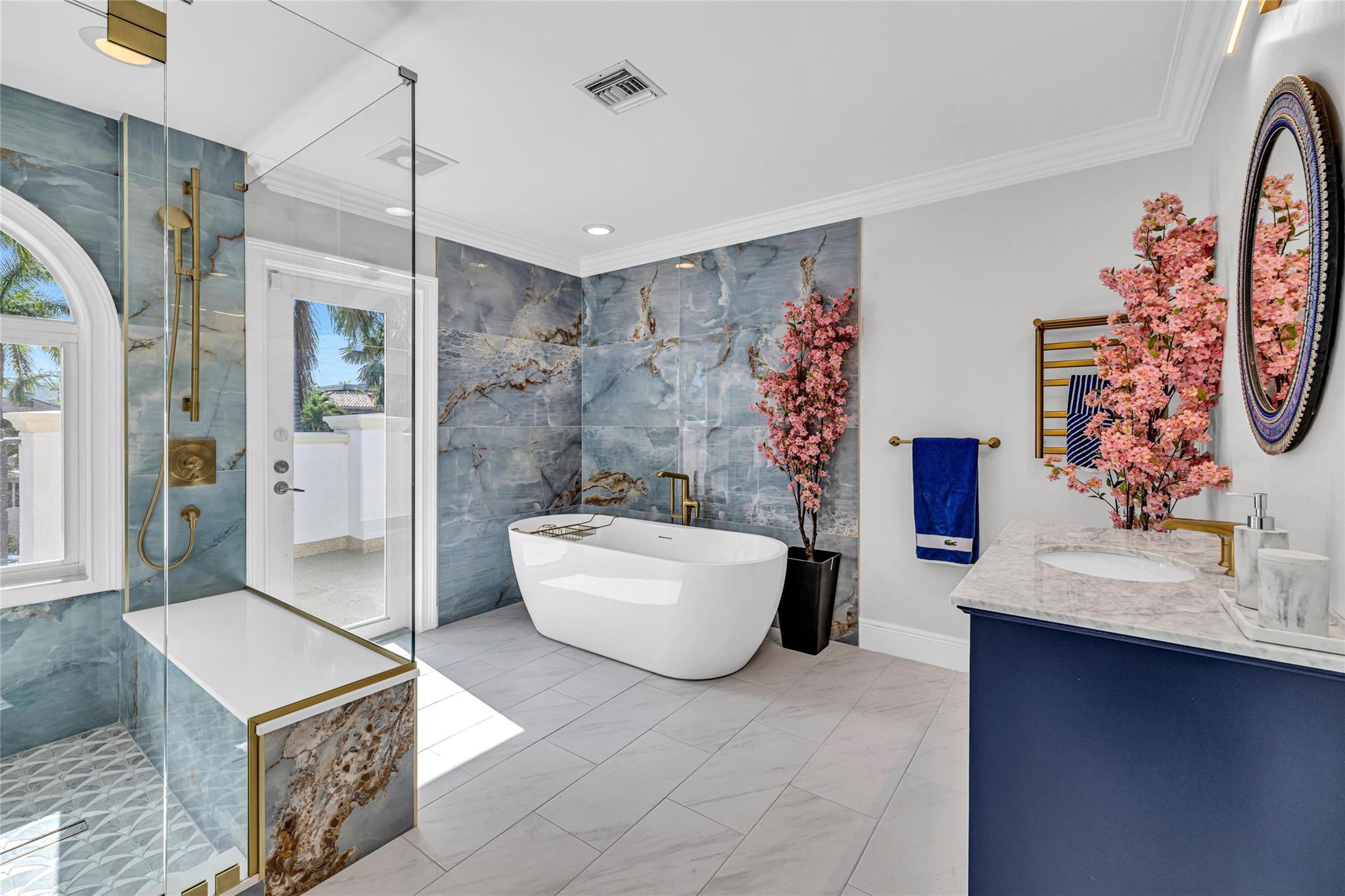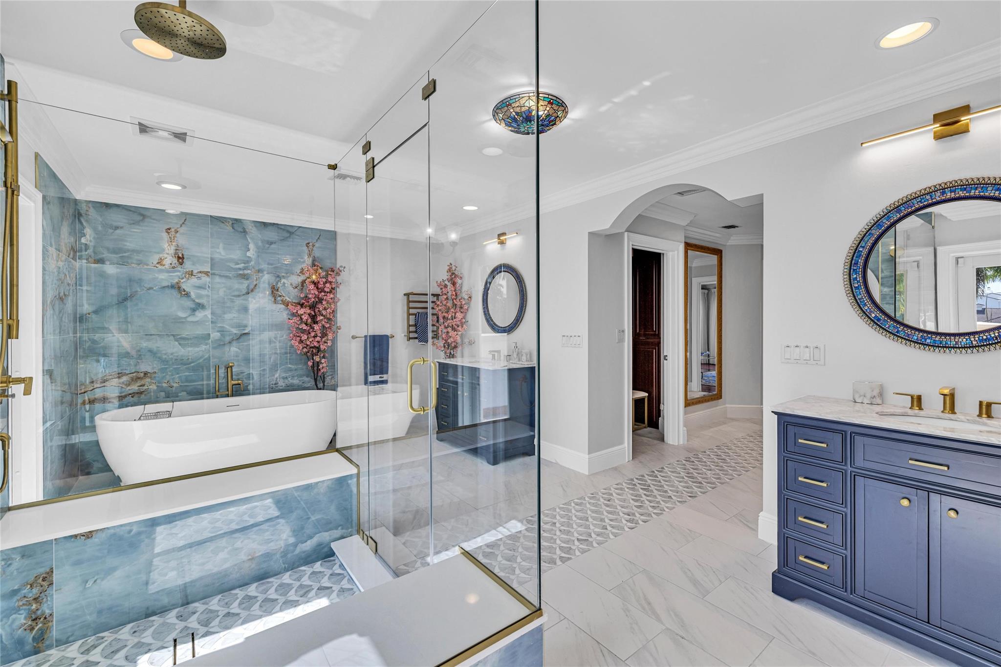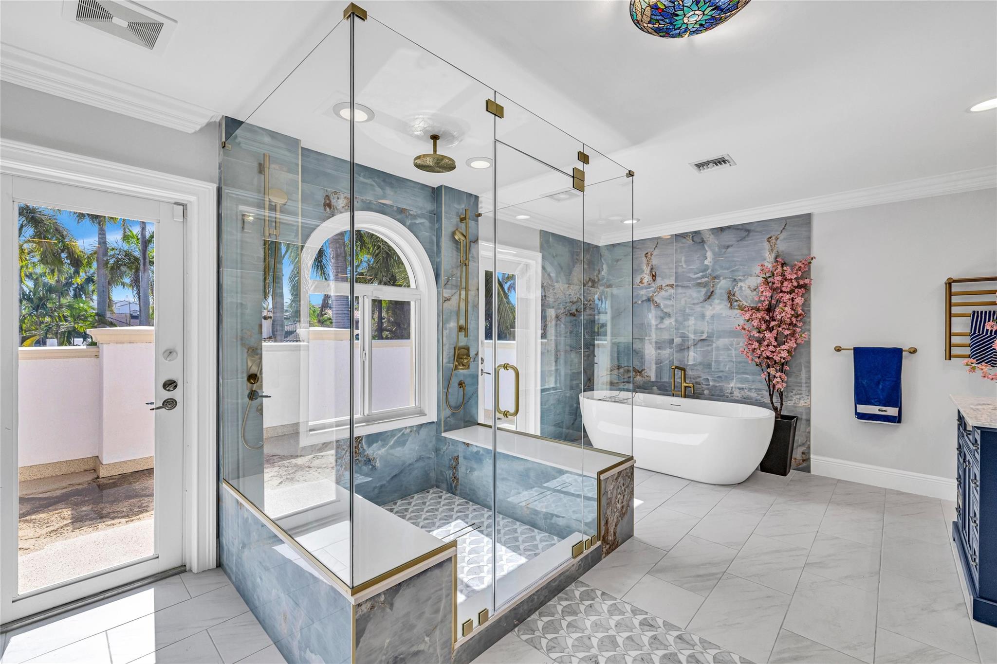Step into refined elegance at this recently renovated, estate in Las Olas Isles, offering 5,000+ sq ft of timeless design on 85 ft of prime deepwater frontage. Grand marble floors and soaring ceilings lead to a gourmet chef’s kitchen with premium appliances and open-concept living spaces designed for upscale entertaining. The VIP guest suite, media/gym room, and richly appointed office (optional 5th bedroom) offer versatility. The lavish primary suite features hardwood floors, a spa-style bath, and custom walk-in closet. Outdoors, enjoy a Pecky Cypress loggia, resort-style pool, spa, and lush tropical gardens. New roof, 2 A/C units, and pool equipment.
