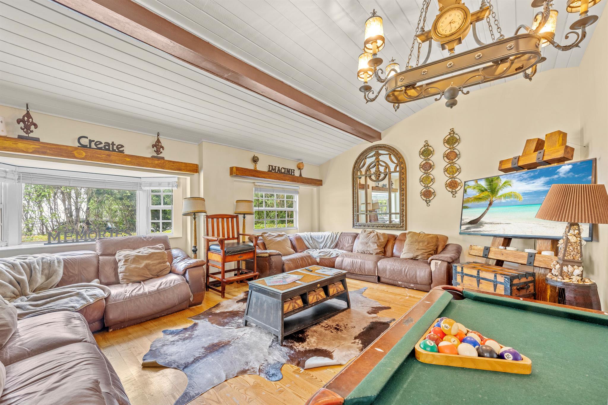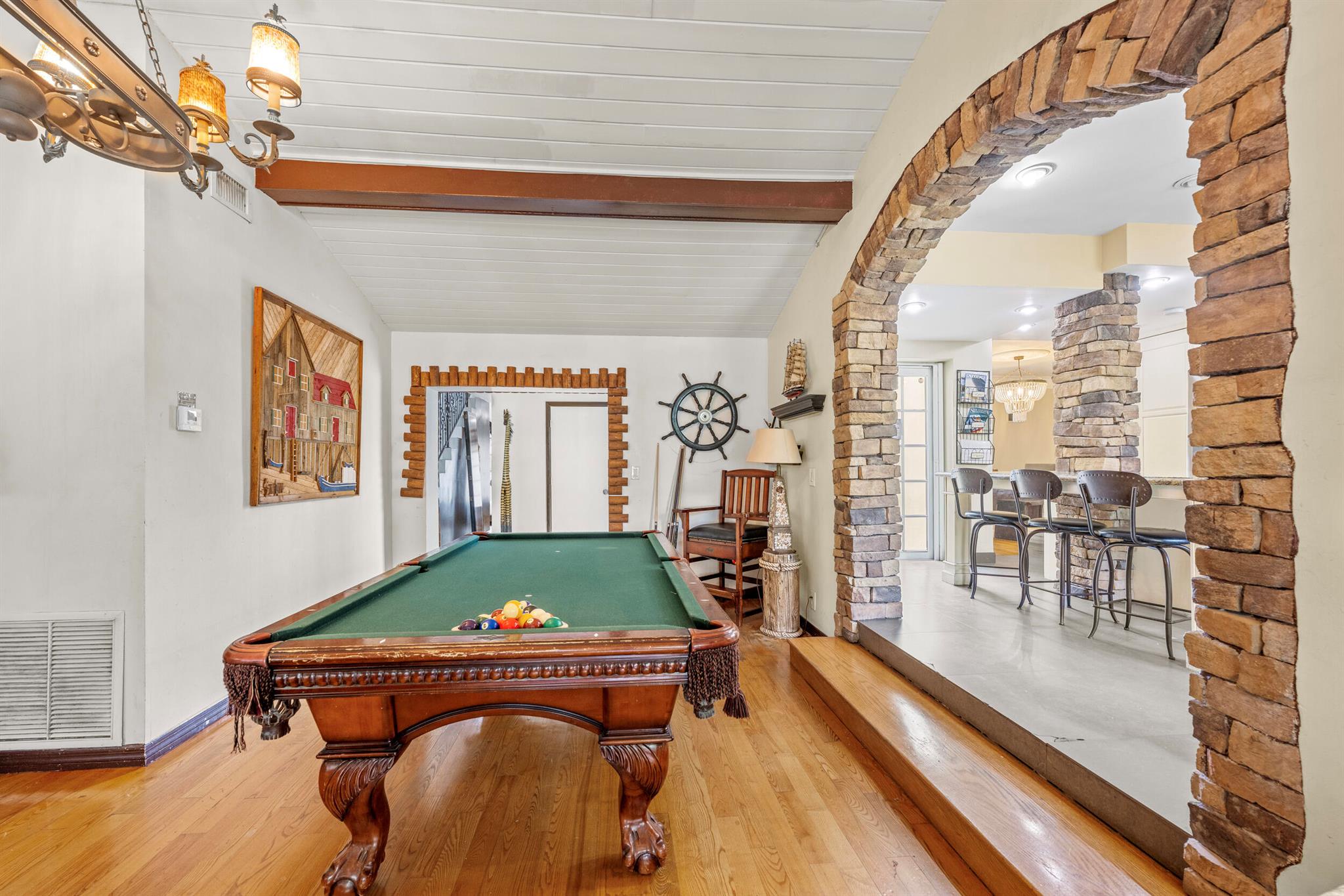 Step into a world of luxury and serenity with this stunning 6-bedroom, 5.5-bath waterfront estate, perfectly situated in the prominent Seven Isles of Fort Lauderdale. This beauty features 5 En suite bathrooms, timeless hardwood floors, perfectly appointed kitchen with an island for gathering, living room with fireplace, custom game room, dining room, hurricane impact windows, French doors, multiple balconies, expansive outdoor patio with heated pool, boat dock for those who love to boat/fish, turf lounge area, putting green & bocce ball court. This property is also a lucrative Airbnb. Only a 6-minute walk to the beach, shops, restaurants, and vibrant nightlife. The airport is only a 12-minute drive. All information believed to be accurate & should be verified by buyer.