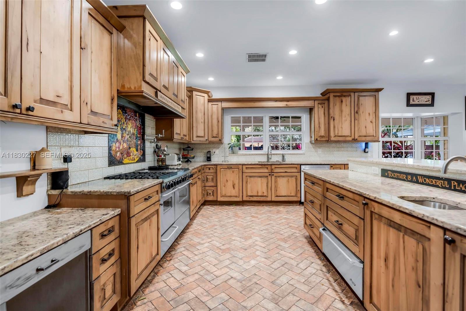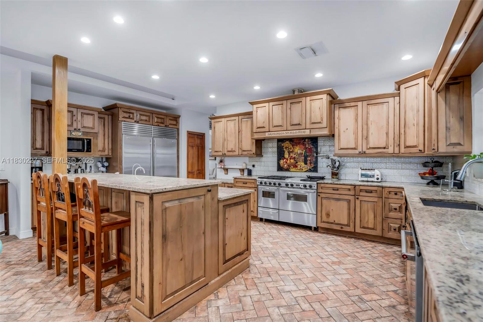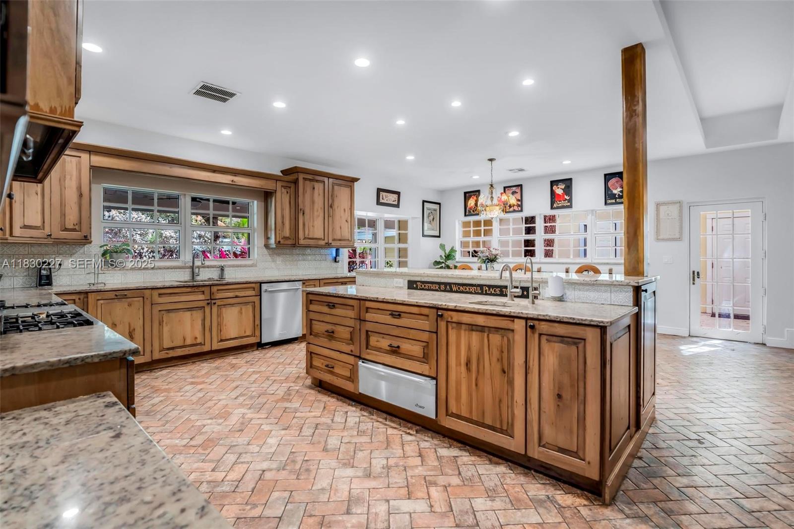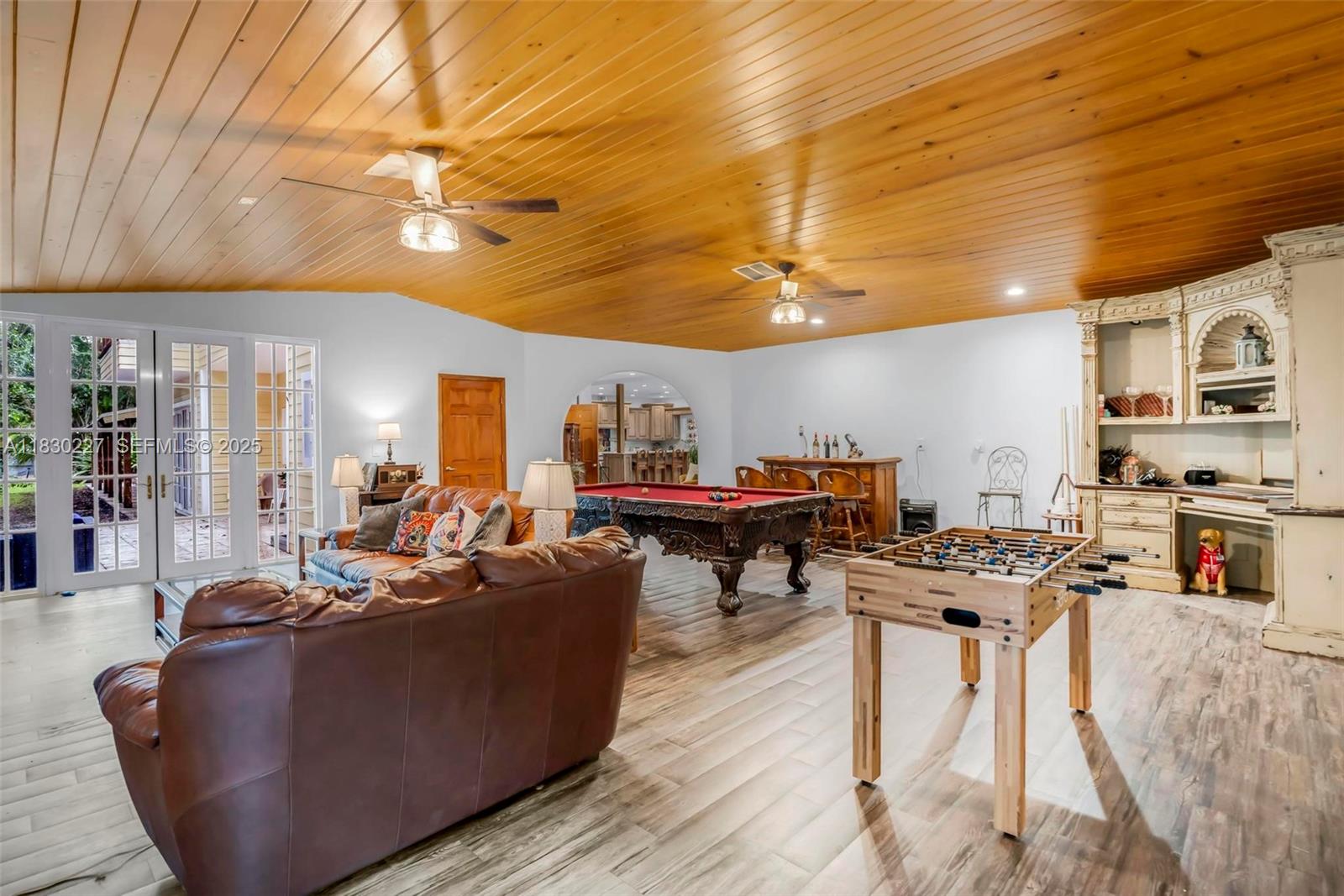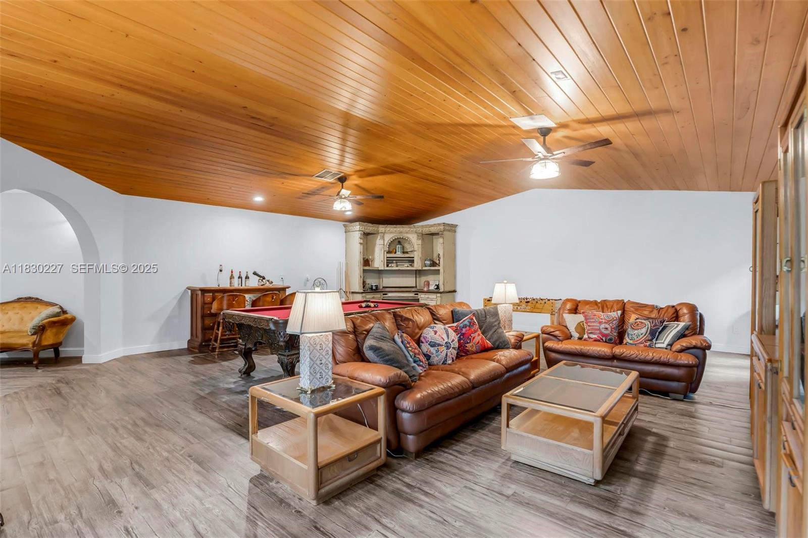 Welcome to your private retreat in the heart of Fort Lauderdale’s River Lands—where country charm meets modern luxury. This beautifully renovated estate sits on a 0.75-acre lot and offers over 6,000 sq ft of versatile living space. With 6 beds, 5 baths, plus a recreation room and separate 1BD/1BA in-law suite, it’s ideal for multi-generational living or income potential. Inside, you’ll find vaulted ceilings, real hardwood finishes, custom floors, and timeless character. The primary suite opens to a screened patio and features walk-in closets and a spa-like bath with an oversized tub and walk-in shower. The chef’s kitchen boasts a Sub-Zero fridge, large pantry, and coffee station. Enjoy outdoor living with a heated pool, summer kitchen, garden patio, sandbox, and space for your boat or RV.