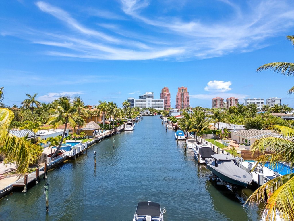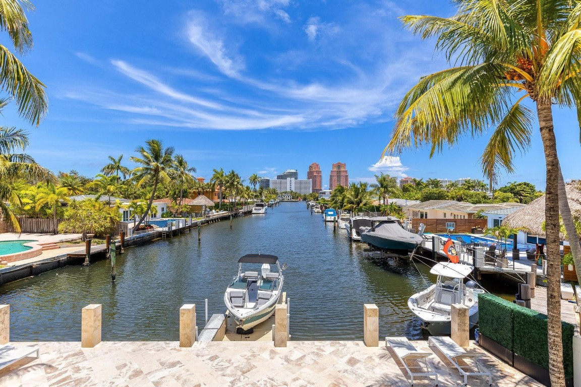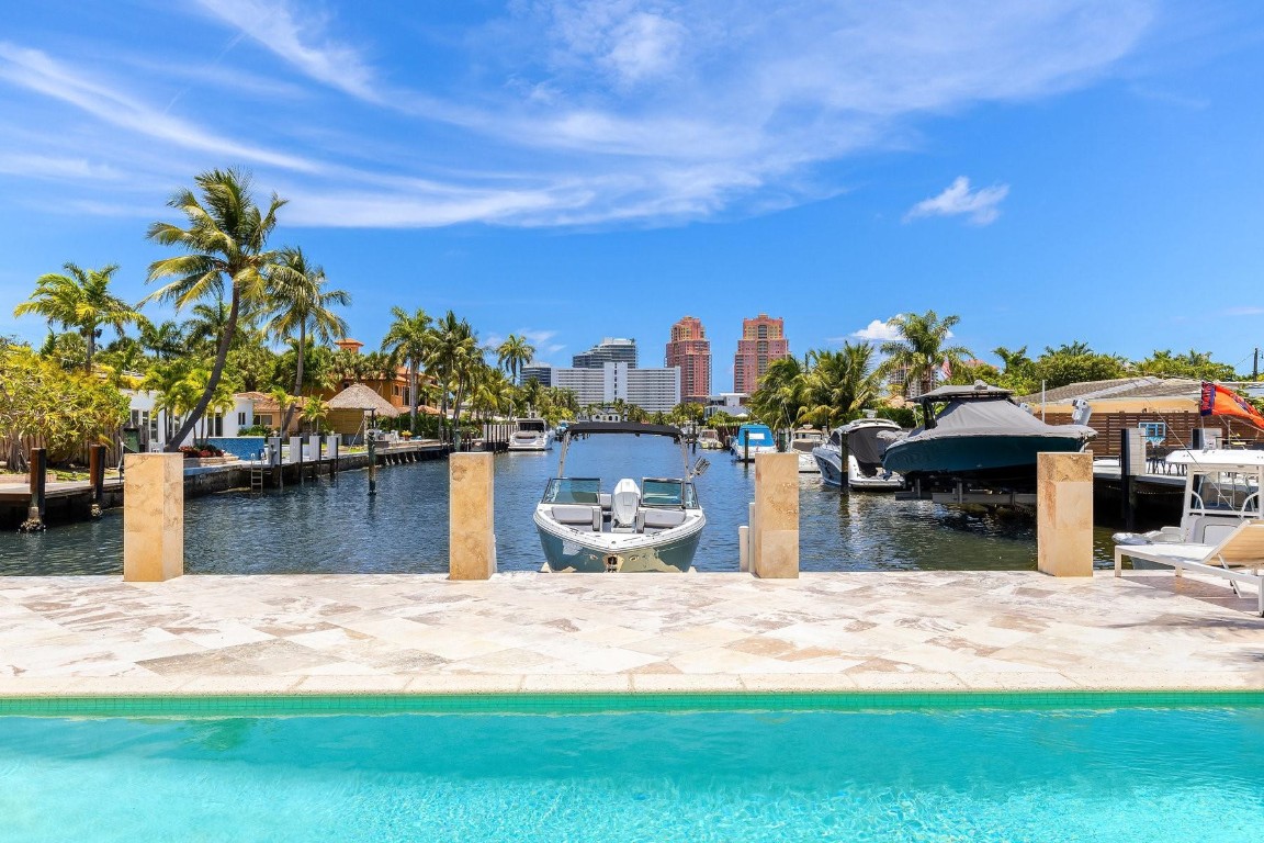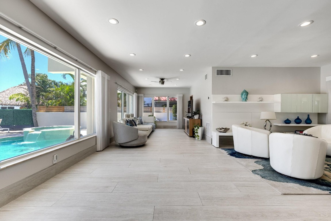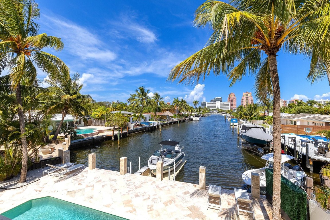Sail into this waterfront gem in Coral Ridge, one of Fort Lauderdale’s most sought-after neighborhoods in the Bayview school district. This 4 bed, 4.5 bath home features a full suite on the main level, open layout, abundant natural light, and impact windows and doors. Updates include modern floating stairs with frameless glass railing, Porcellina floors, stainless steel appliances, and updated kitchen and baths. One bedroom has been converted into a dream walk-in closet and can easily convert back. The outdoor space is perfect for entertaining with a salt water pool, jacuzzi, spacious yard, and private dock. Enjoy ocean access with no fixed bridges. Say hello to your home on the water—just bring your boat, your dock is waiting!