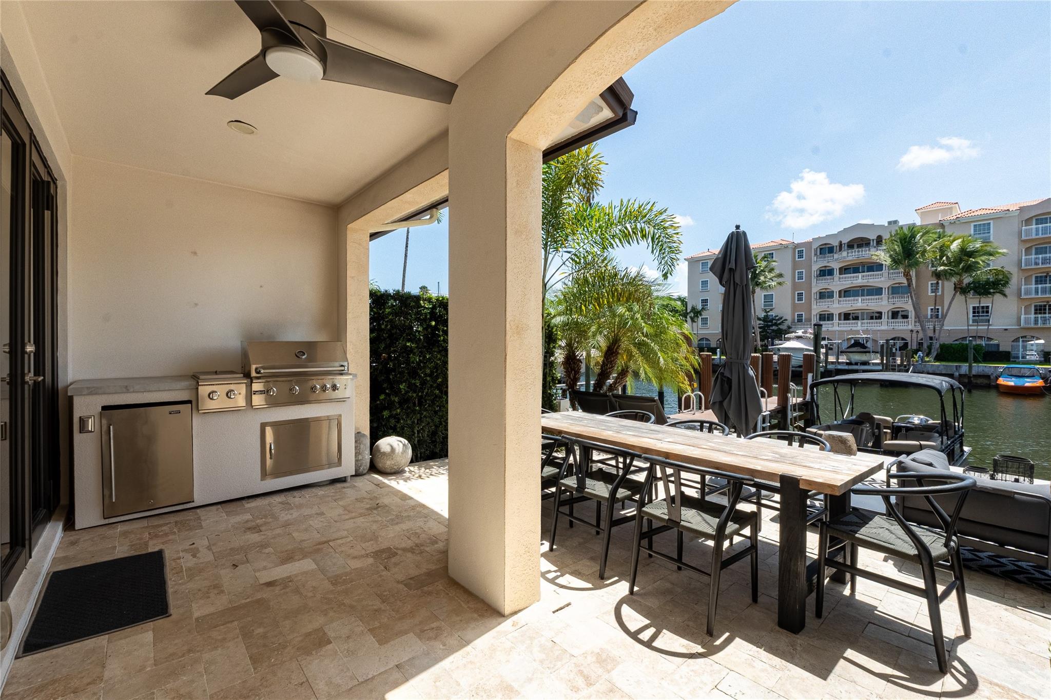 Experience luxury waterfront living in this impeccably maintained, like-new corner townhouse featuring a private boat slip for up to a 50-foot vessel. Soak in breathtaking sunrises & sunsets from every room, each w/ its own private terrace overlooking a wide waterway & the city lights of downtown Ft Lauderdale. This stunning home boasts a private first-floor yard, complete with an outdoor kitchen, lounge area & space to add a pool. Perfect for entertaining or relaxing in your own serene retreat. Located just a short walk to world-renowned Ft Lauderdale Beach, fine dining, boutique shopping & vibrant nightlife. This home offers the ultimate in coastal lifestyle & accessibility. Offered below market value, this rare opportunity combines elegance, convenience, and unbeatable value.