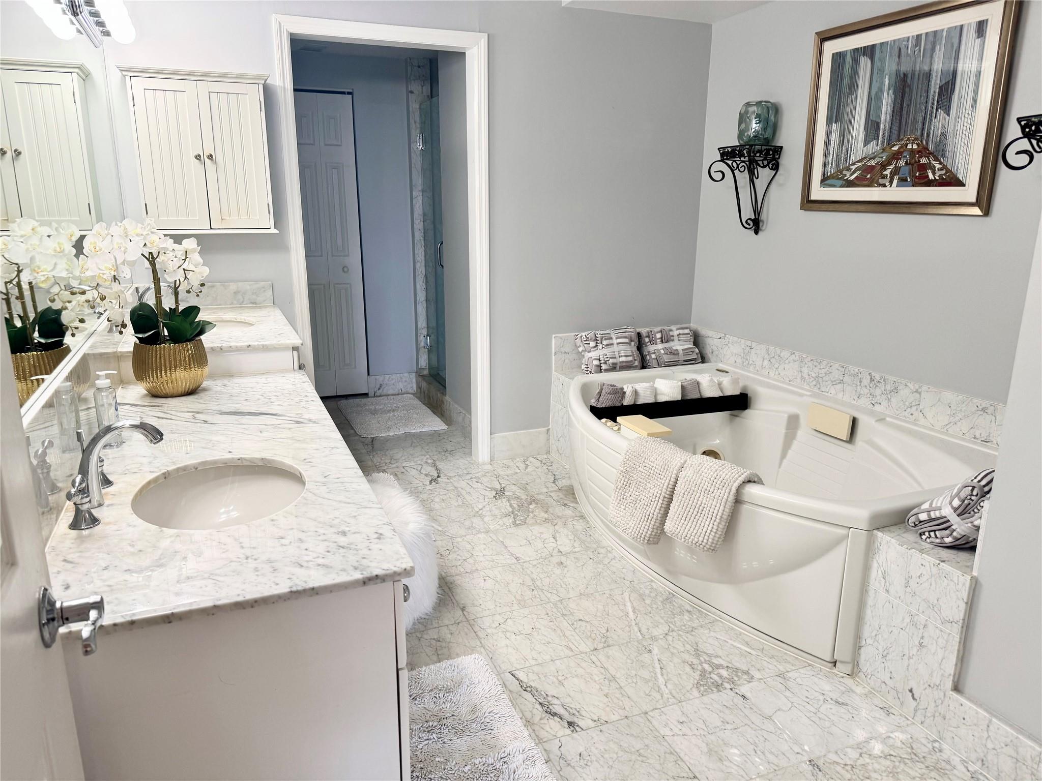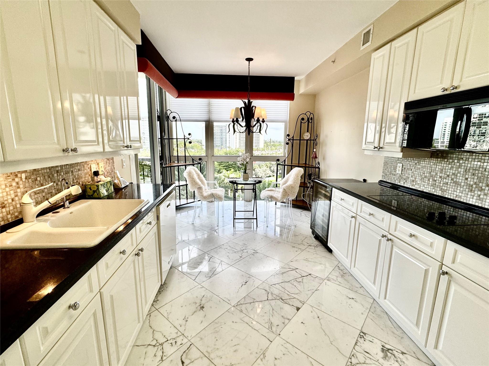 SE EXPOSURE. ALL DAY SUN. 2 Terraces. Private elevator. Marble floors. 3rd bedroom has Murphy style wall bed and built in desk /wall system . EASY TO SEE. Resort-style complex with 2 clay tennis courts, POOLSIDE RESTAURANT, 2 pools, 2 spas, SELF PARKING IN GARAGE plus valet for guests, private beach pavilion with tikis, cabanas, BBQ and beach attendant. 2 PETS,ANY SIZE, OK. L'Hermitage is well funded, great reserves, many completed and funded improvements , such as surface work repair and painting, new lap pool, new roof, funded elevator project . NOTE THAT APPROX. $300 per qtr is a credit to spend in the poolside restaurant . Full bar with happy hour, dine alfresco or delivery.