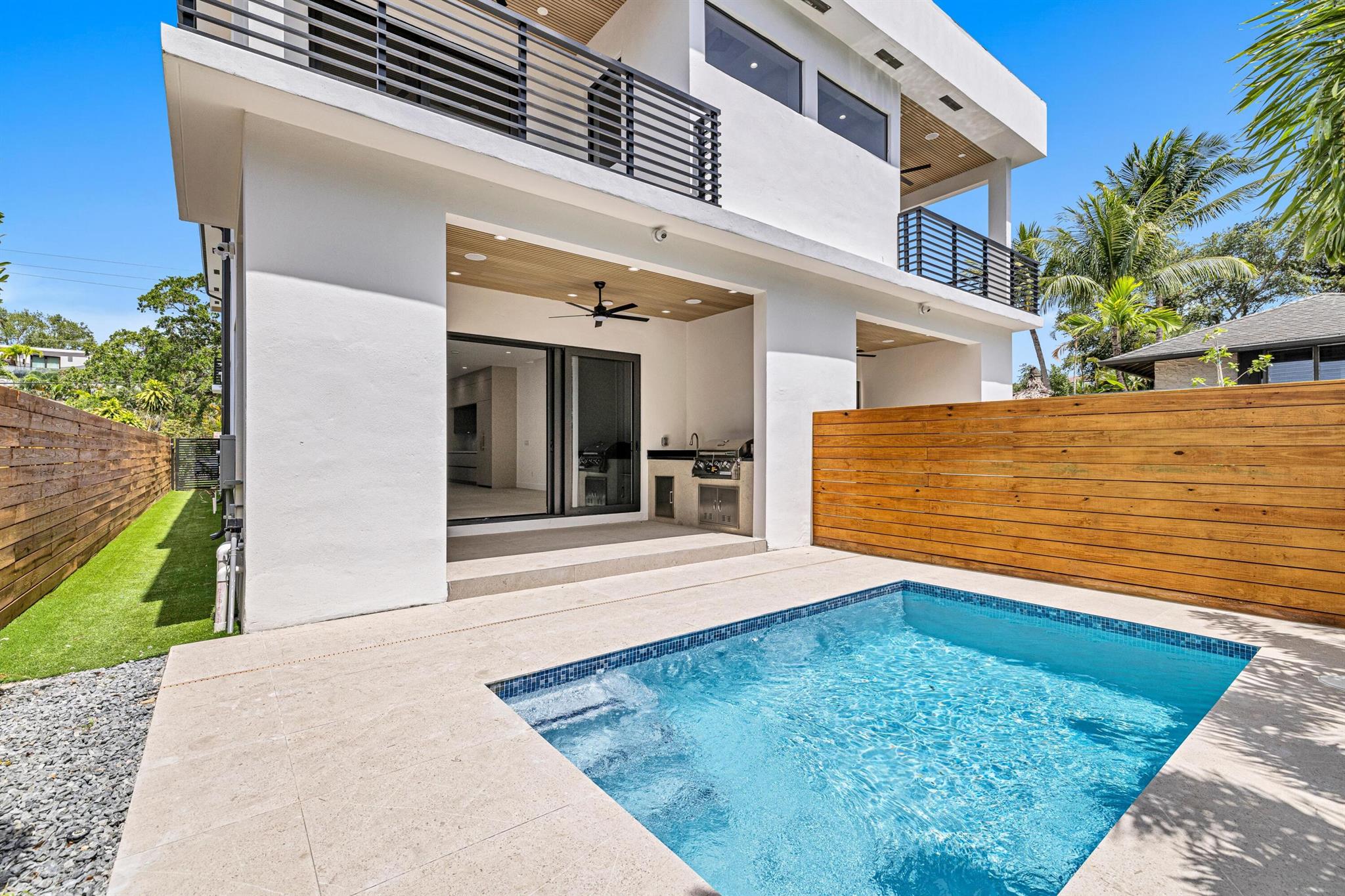 Located in one of the best areas of Fort Lauderdale, just one block from Las Olas Boulevard, this brand-new 2025 modern masterpiece defines luxury living. Featuring 3 bedrooms, 3.5 bathrooms, this home offers an elegant open floor plan with high-end finishes throughout. Enjoy a gourmet kitchen with built-in appliances, spacious custom closets, and smart home features including a full camera system for added security.Step outside to your private pool, complete with a sleek outdoor barbecue area, perfect for entertaining. Every detail has been thoughtfully designed to deliver comfort, style, and functionality--all in a prime neighborhood just minutes from Fort Lauderdale's finest dining, shopping, and beaches