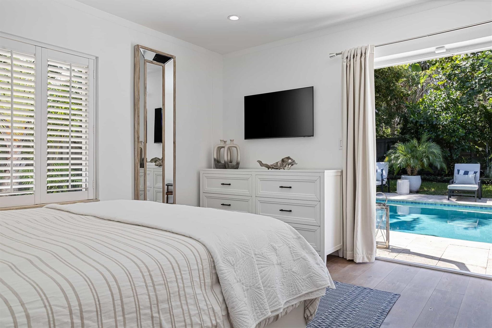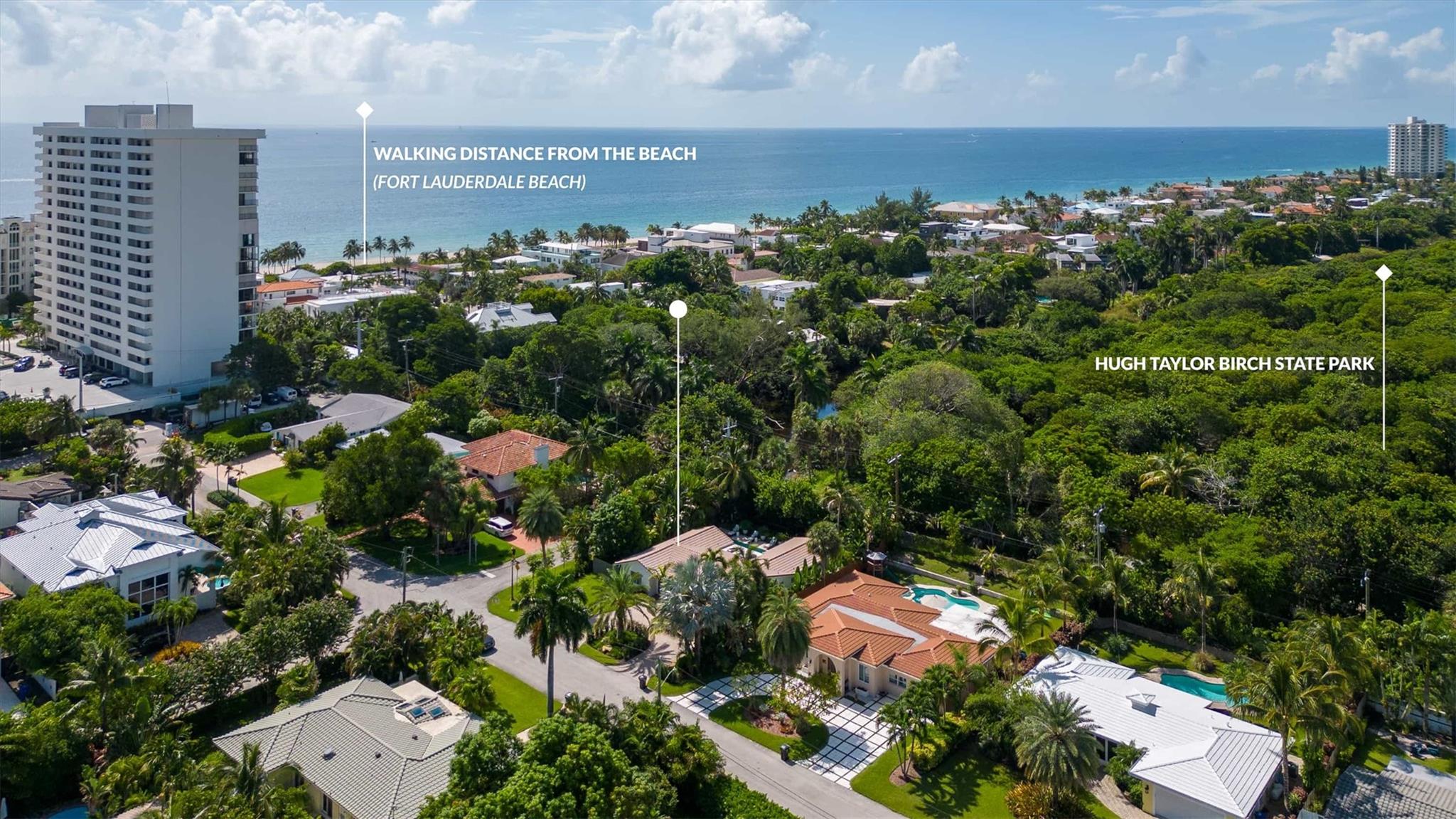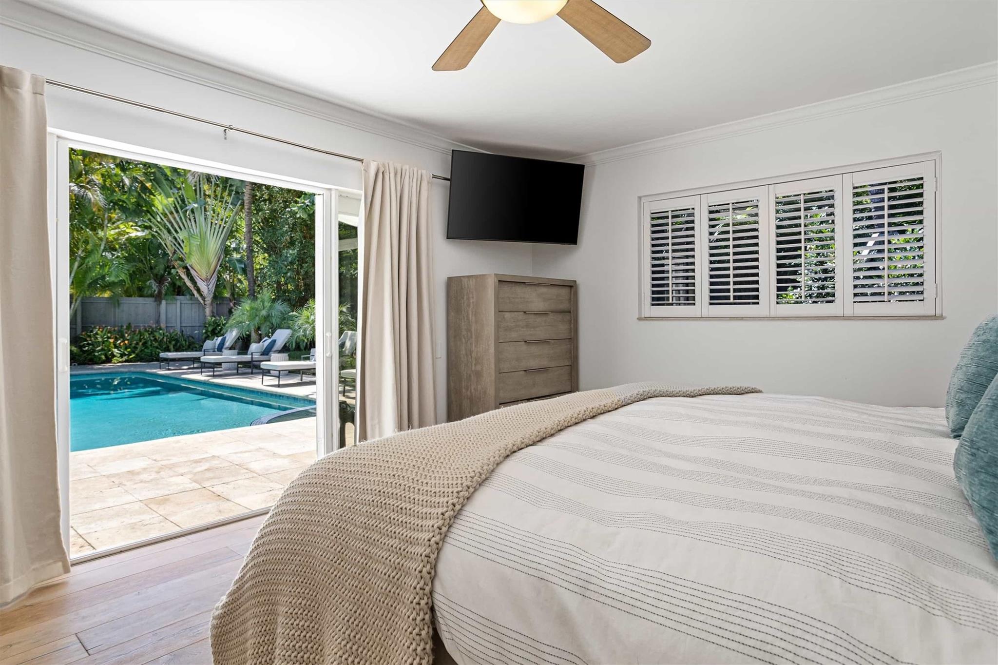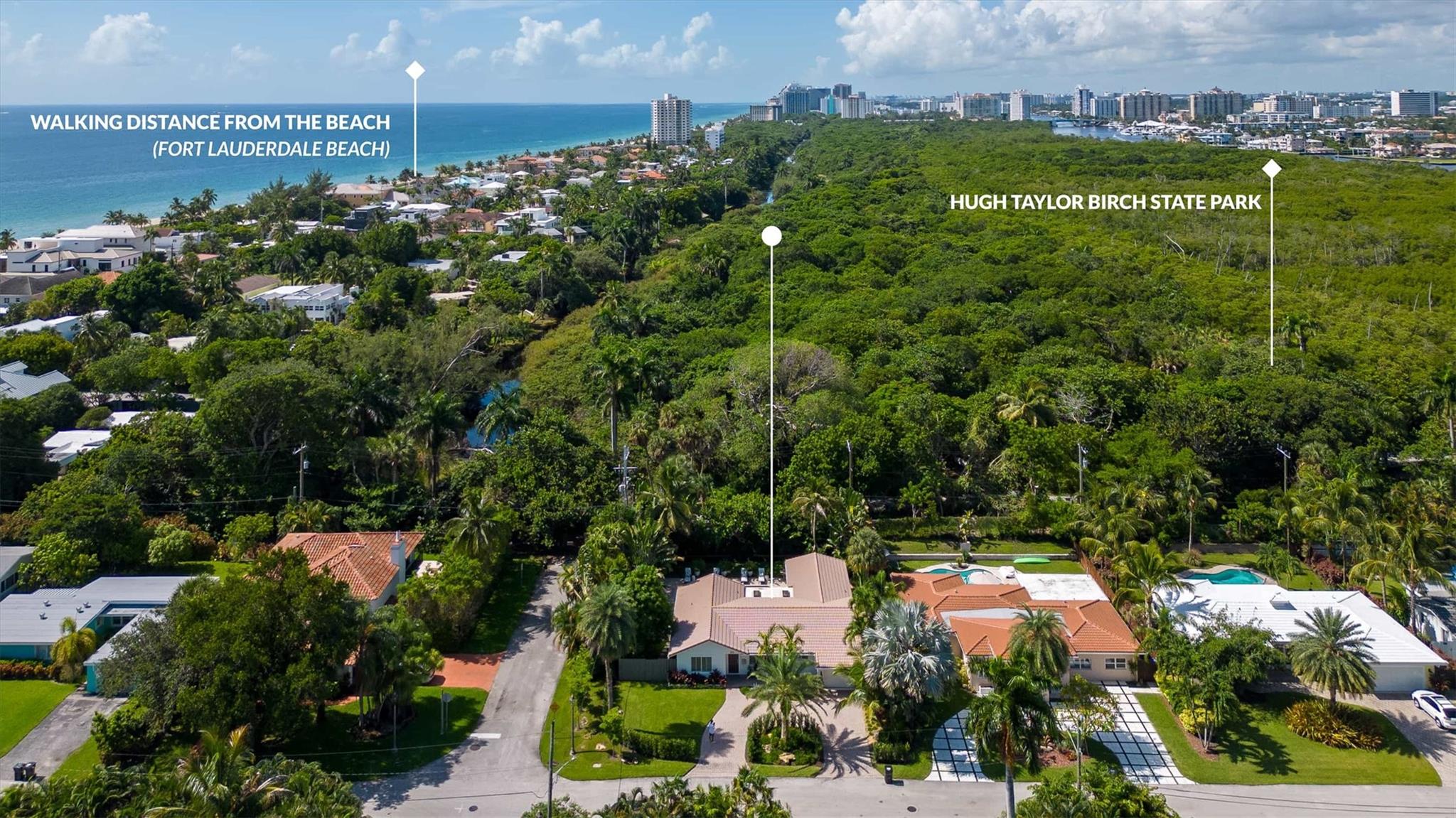 A Private Oasis in Dolphin Isles–Steps from the Ocean & Birch State Park. Thoughtfully designed and well maintained,it offers an open-concept kitchen with quartz countertops, stainless steel appliances, and stylish tile and wood flooring. The smart 3 bedroom, 3-bath layout features dual primary suites with direct access and peaceful views of an expansive, ultra-private garden retreat backing onto Birch State Park. Enjoy indoor-outdoor living on the spacious lanai or relax in the resort-style saltwater pool and spa. Set on a prime corner lot with no neighbors to the east or south, the property includes exclusive gated access to the park just steps away. With impact glass throughout and zoned for the Bayview school district, this home offers the perfect blend of luxury, location, and privacy