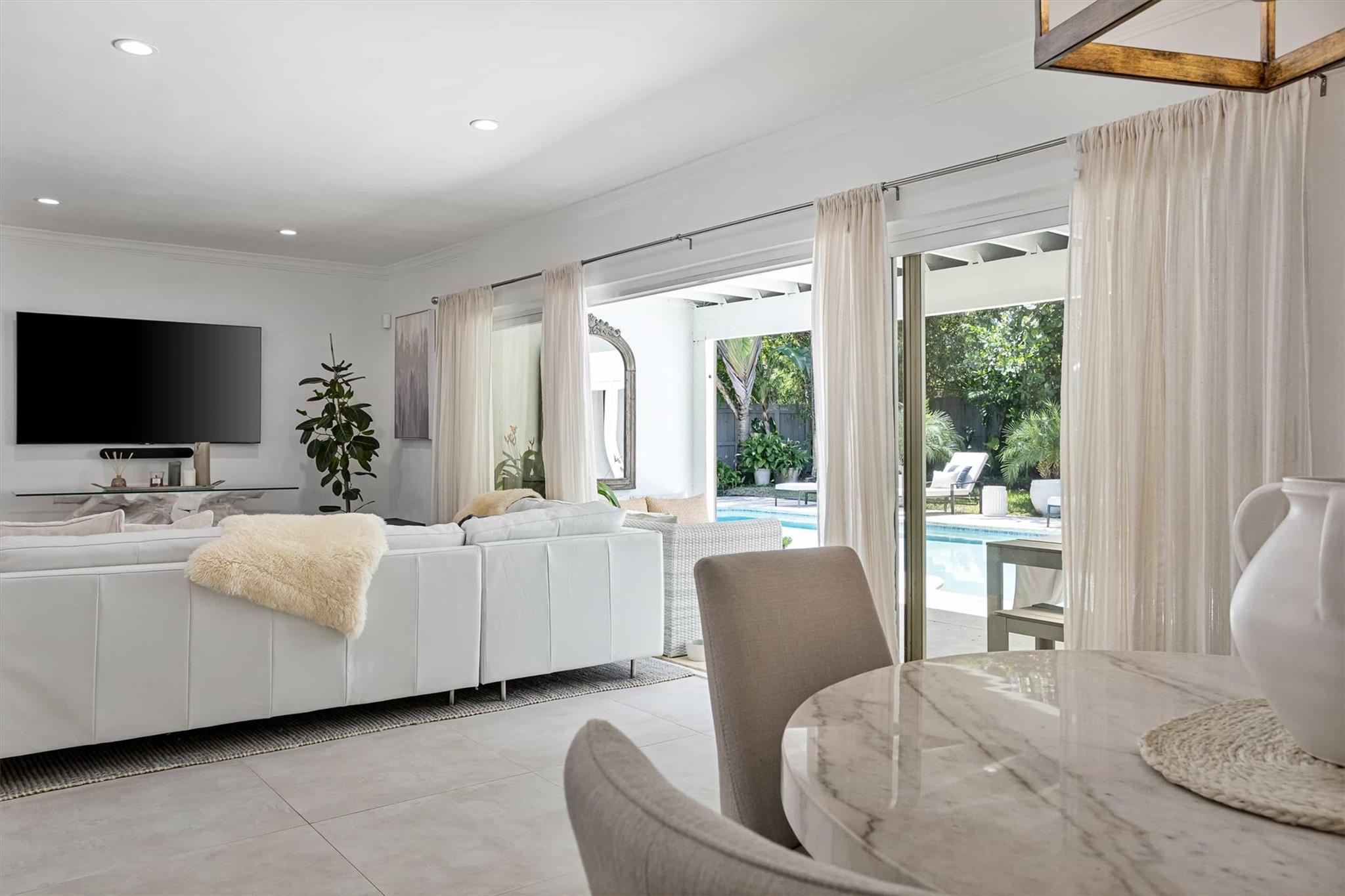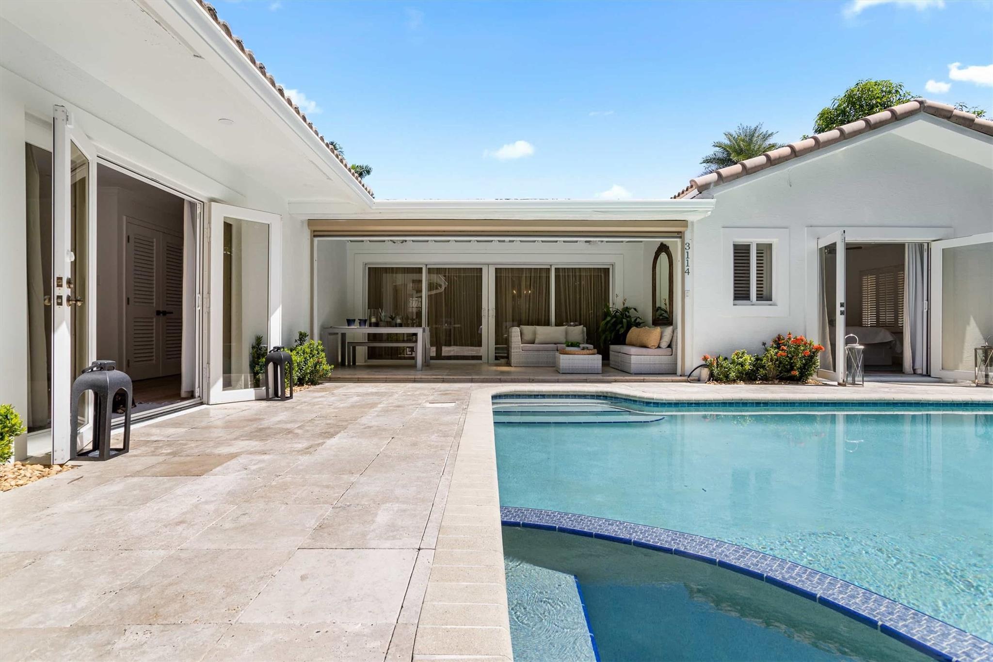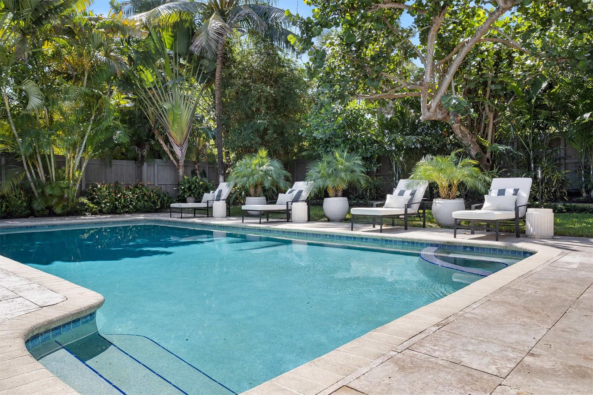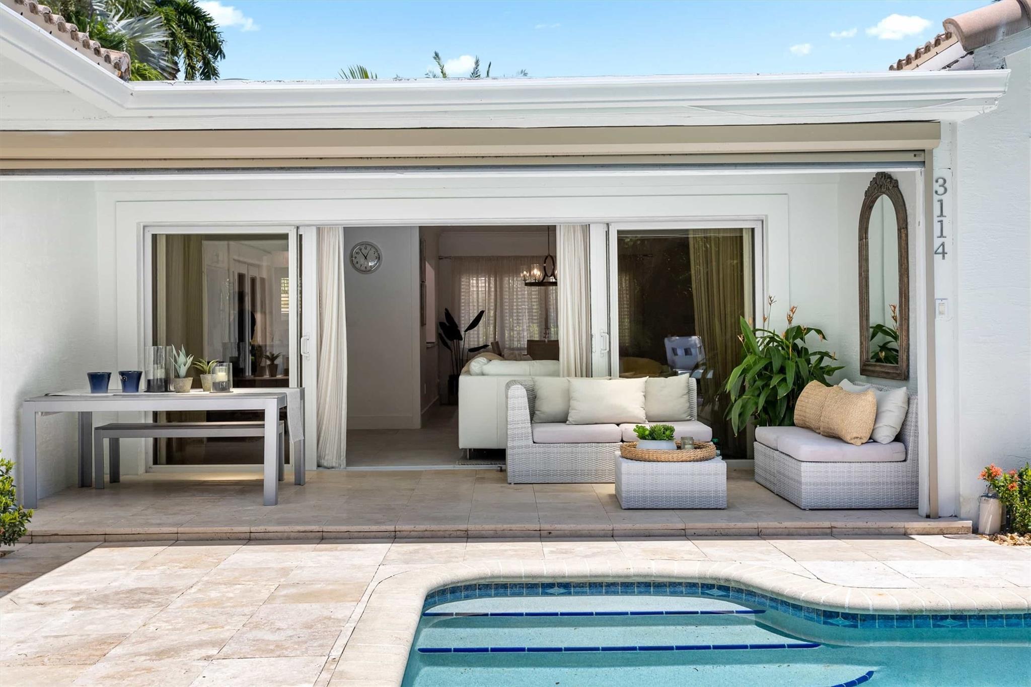 A Private Oasis in Dolphin Isles–Steps from the Ocean & Birch State Park. Thoughtfully designed and well maintained,it offers an open-concept kitchen with quartz countertops, stainless steel appliances, and stylish tile and wood flooring. The smart 3 bedroom, 3-bath layout features dual primary suites with direct access and peaceful views of an expansive, ultra-private garden retreat backing onto Birch State Park. Enjoy indoor-outdoor living on the spacious lanai or relax in the resort-style saltwater pool and spa. Set on a prime corner lot with no neighbors to the east or south, the property includes exclusive gated access to the park just steps away. With impact glass throughout and zoned for the Bayview school district, this home offers the perfect blend of luxury, location, and privacy